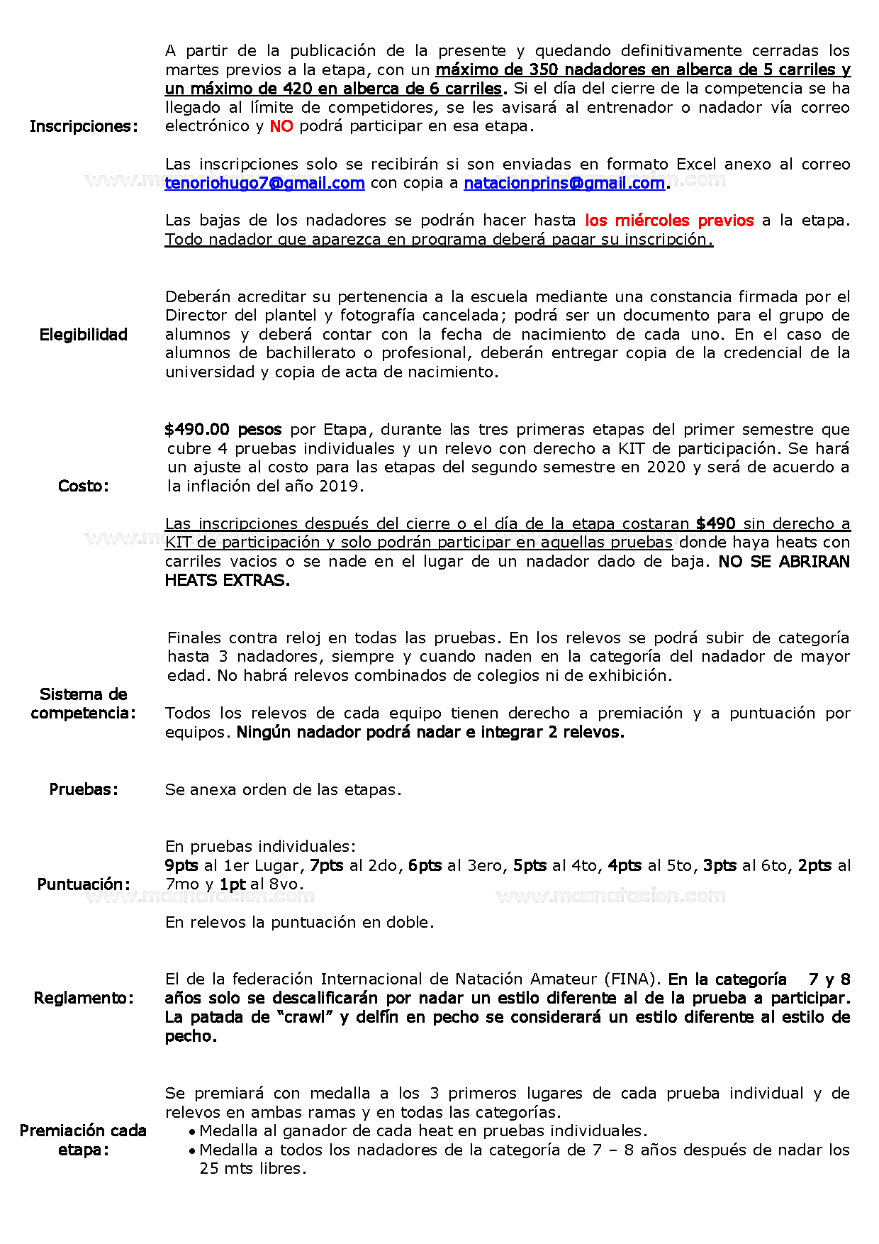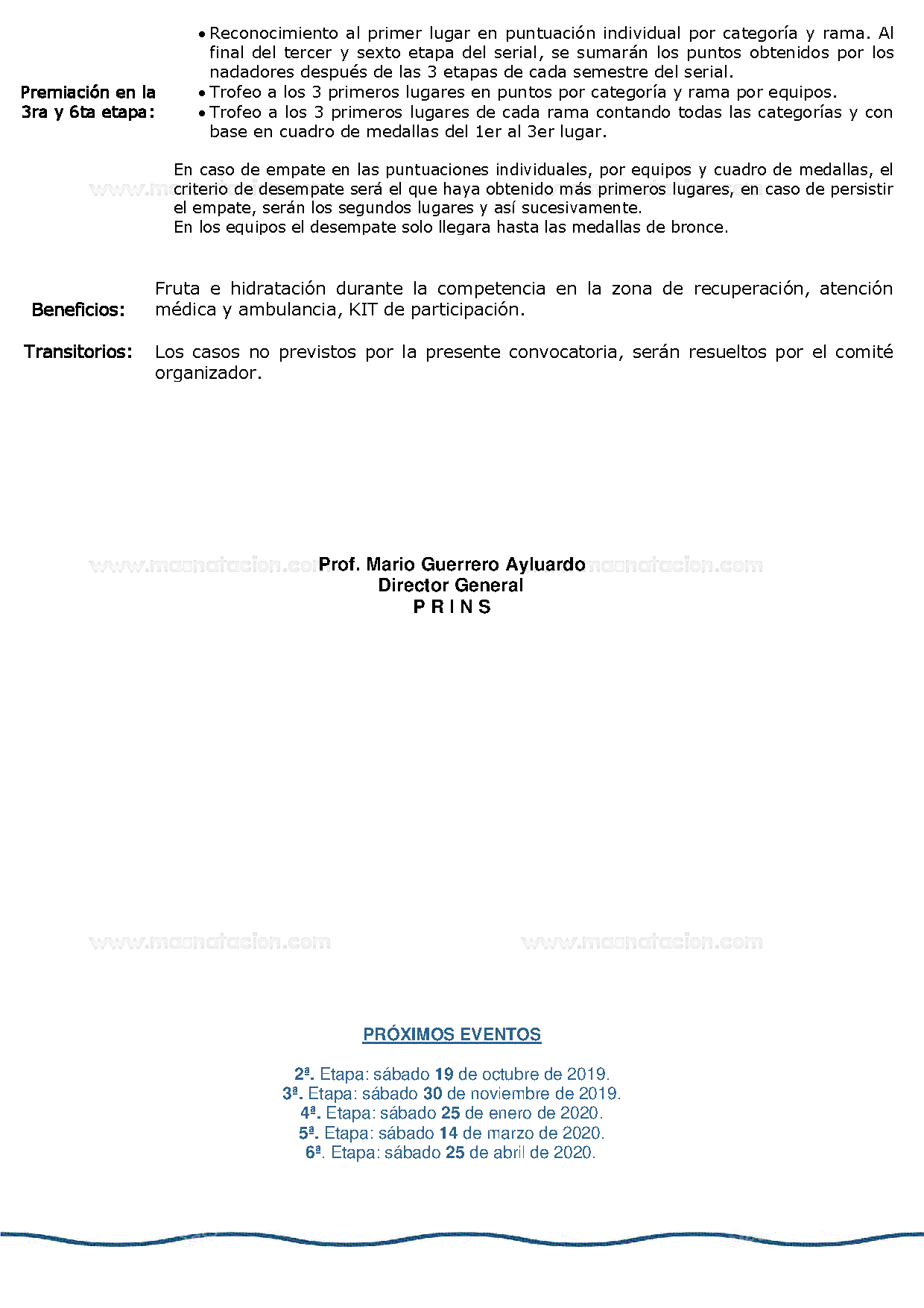 1° Evento del Serial de Natación Ciclo Escolar Prins 2019-2020 Queen Elizabeth School, Ciudad de México, México 28 de septiembre del 2019 Convocatoria Resultados