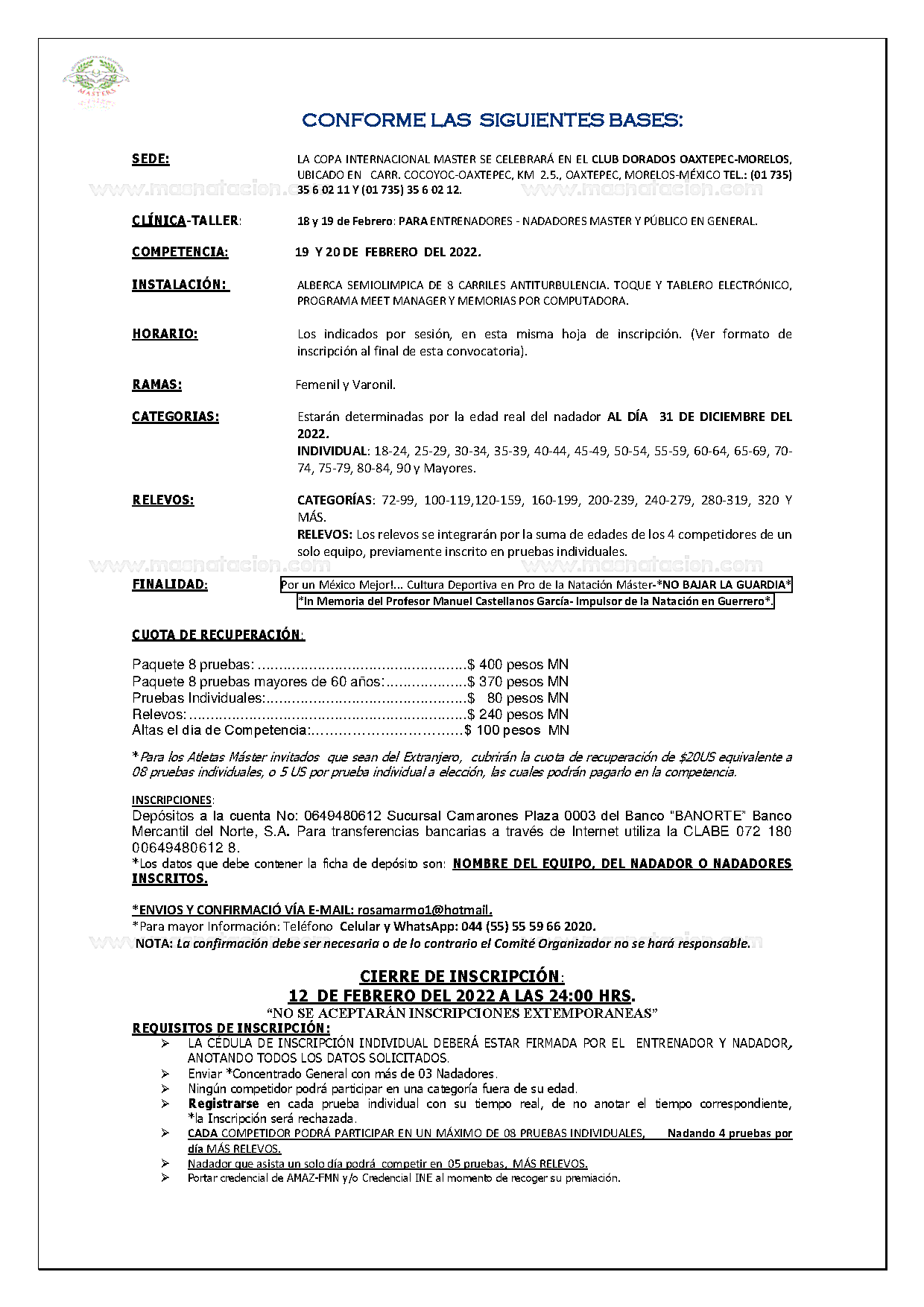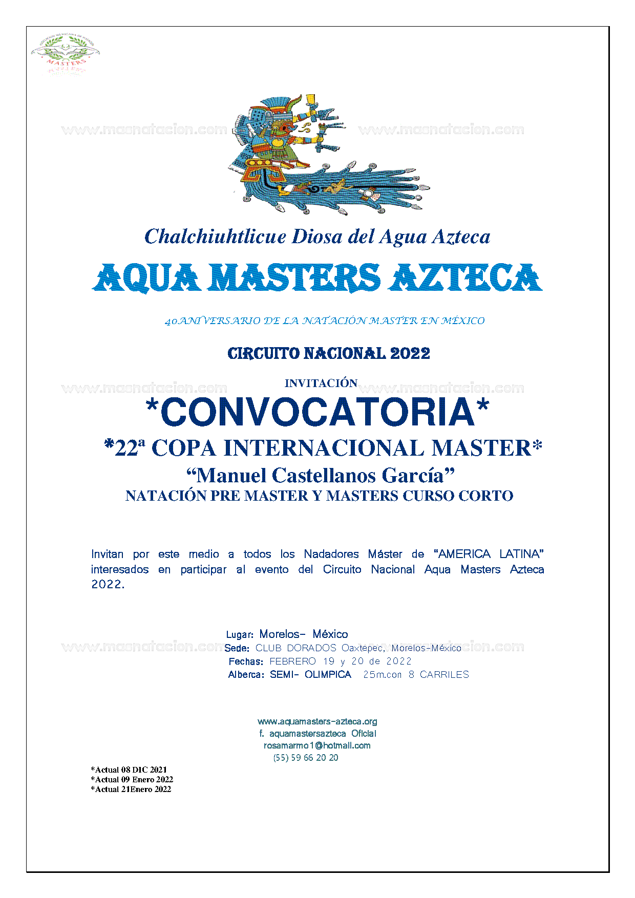 22A Copa Internacional Master Manuel Castellanos García 2022 Club Dorados Oaxtepec, Morelos, México 19 de febrero del 2022 Convocatoria Resultados