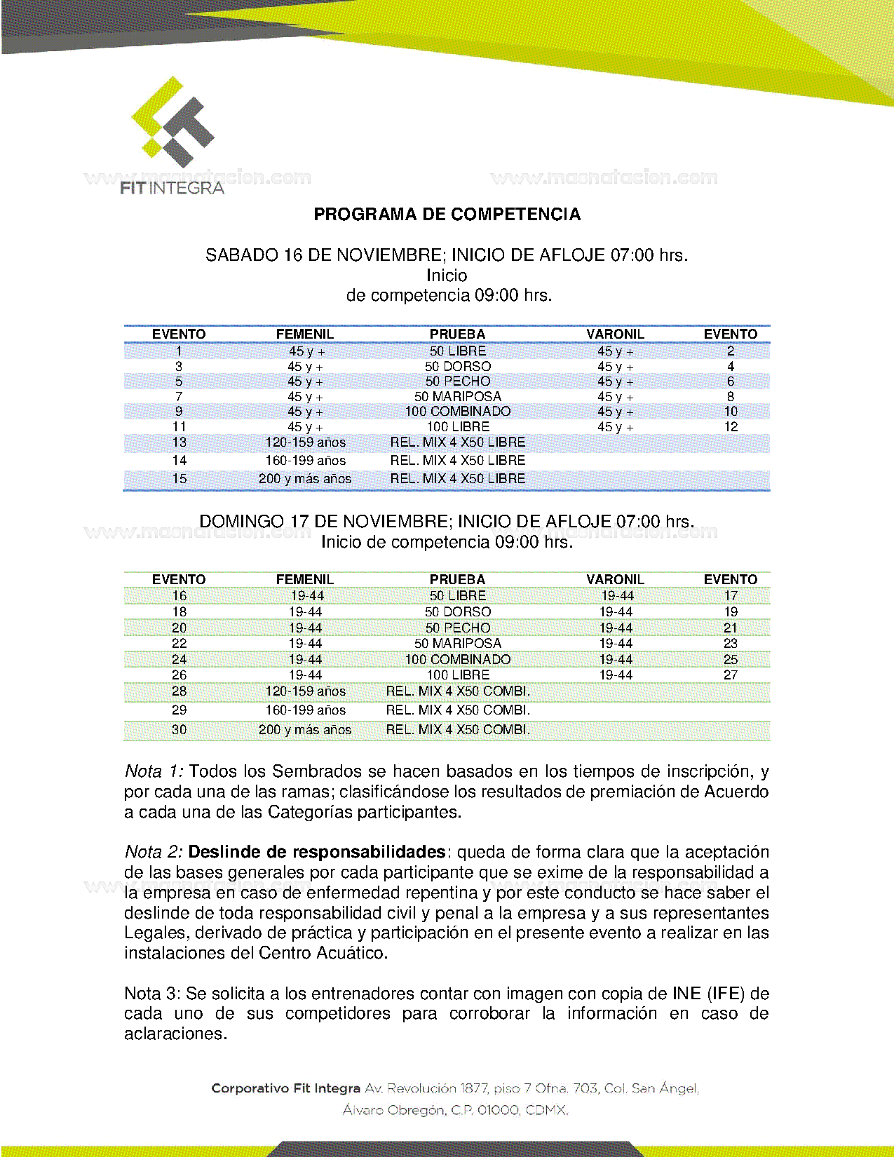 2Da Copa Masters Fit Integra 2019 Fit Integra Izcalli Zona Norte, Estado de México, México 16 de noviembre del 2019 Convocatoria Resultados