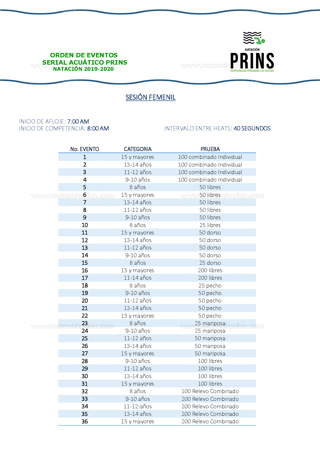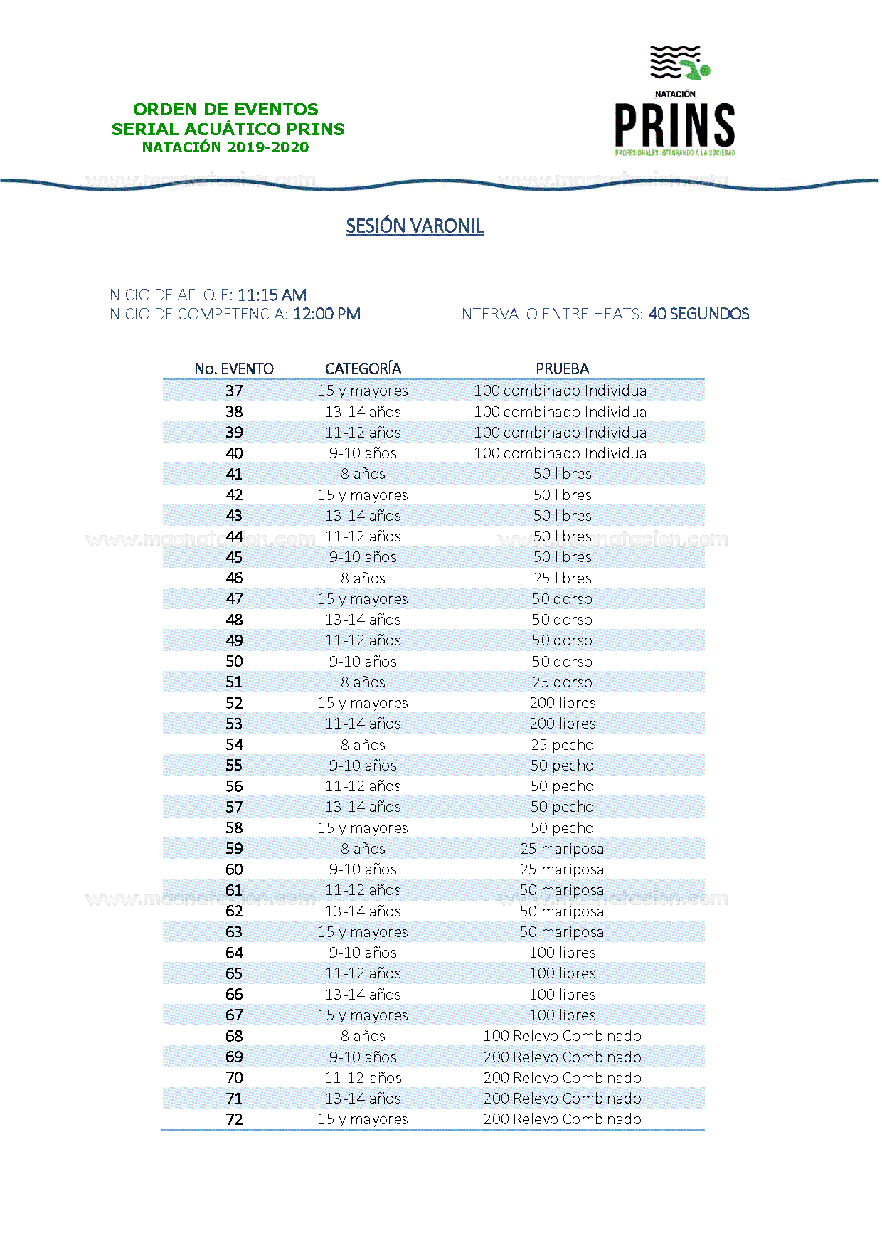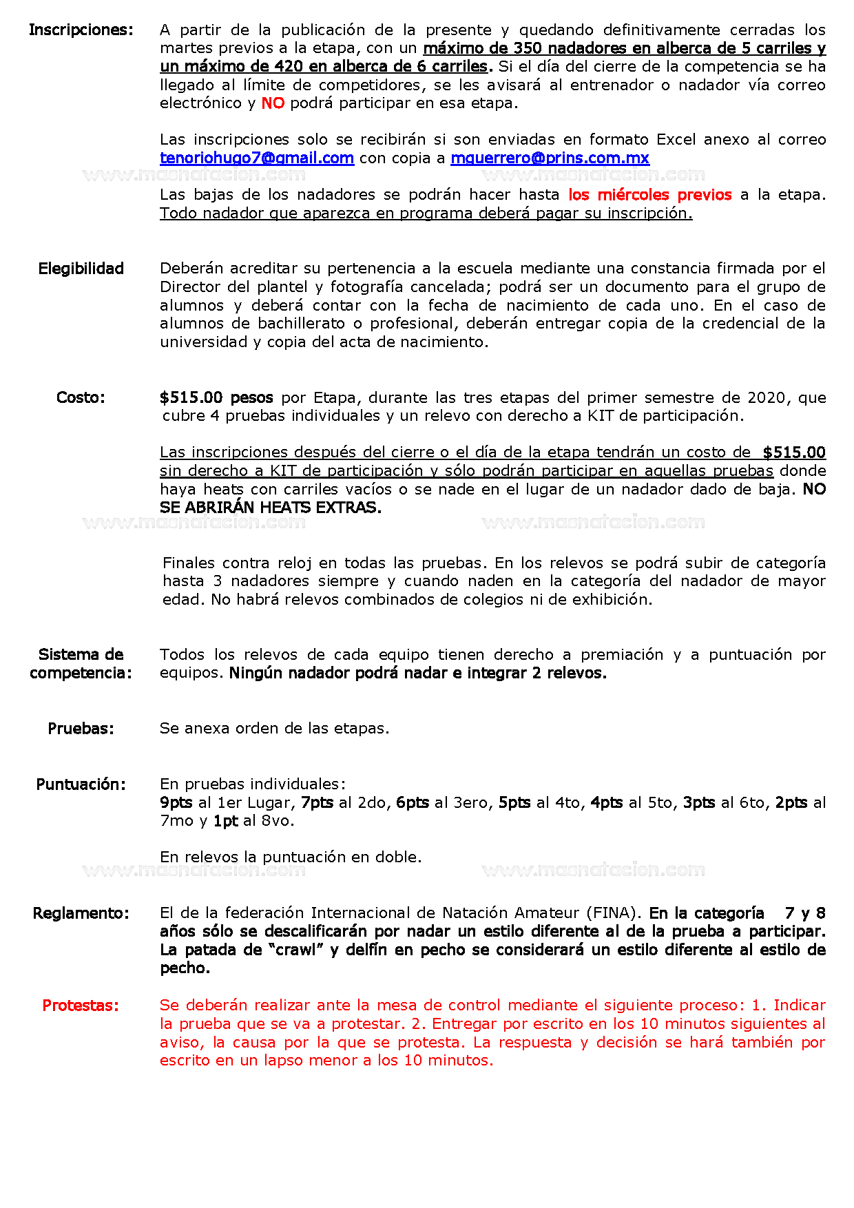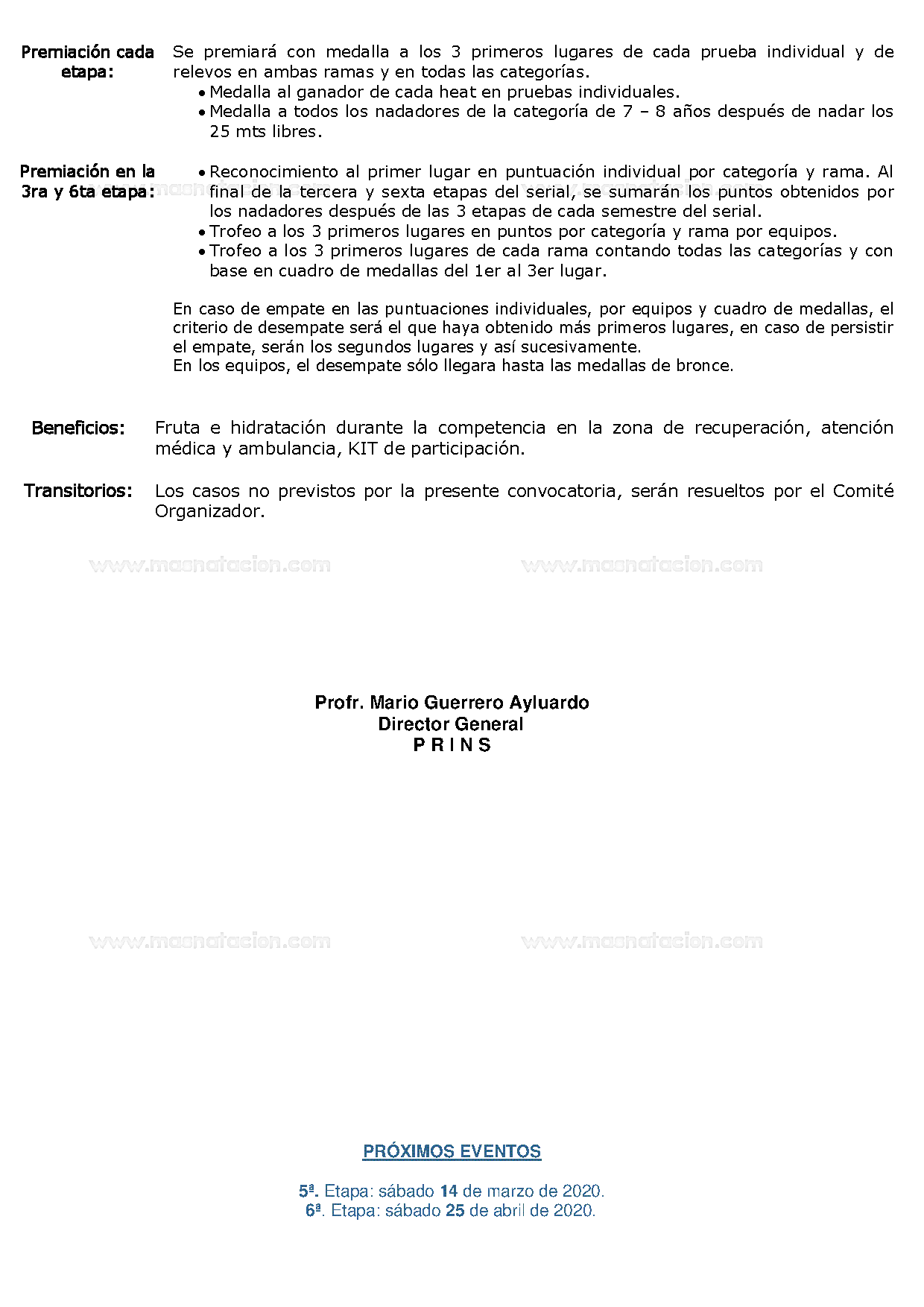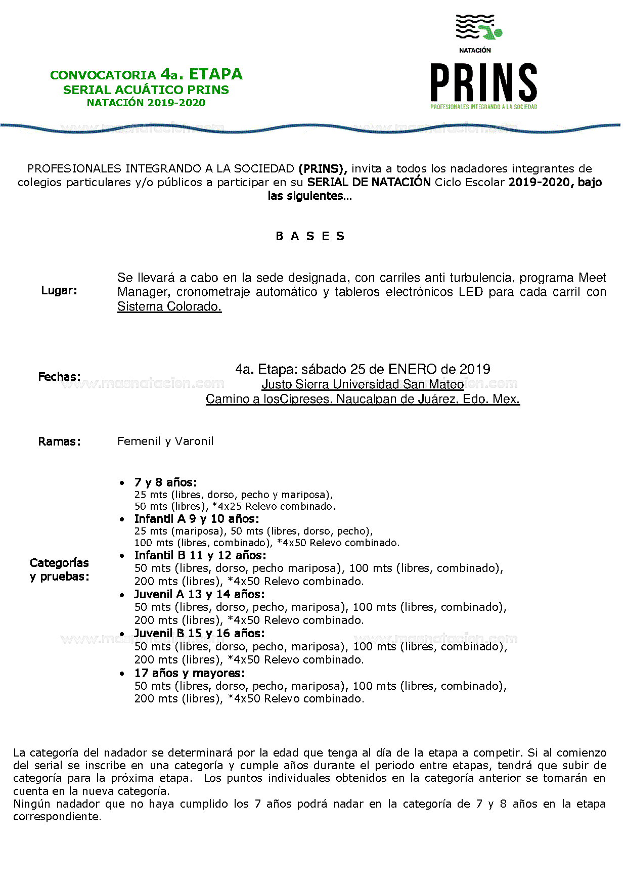 4A. Etapa Serial Acuático Prins 2020 Justo Sierra Universidad San Mateo, Estado de México, México 25 de enero del 2020 Convocatoria Resultados