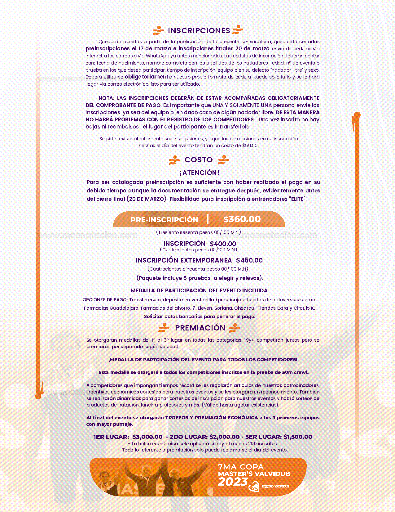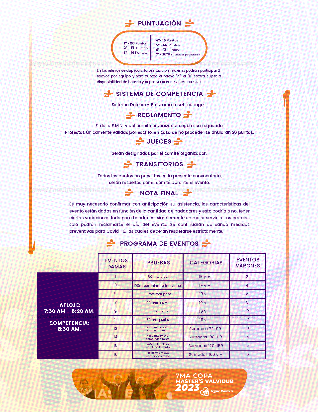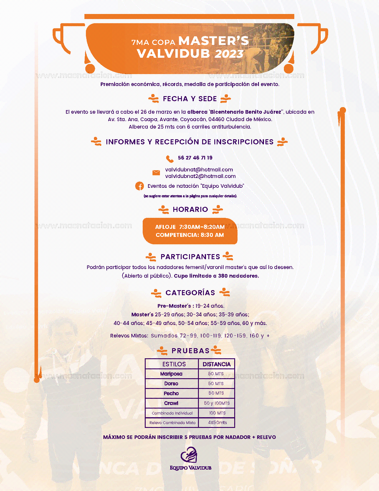 7Ma Copa Masters Valvidub 2023 Bicentenario Benito Juárez, Ciudad de México, México 26 de marzo del 2023 Convocatoria Resultados
