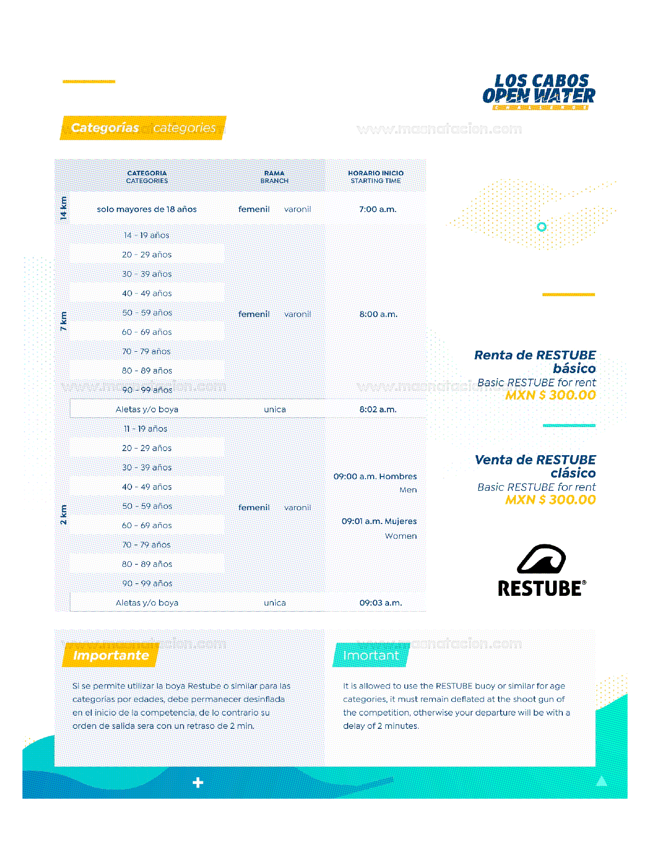 | 7K Aletas / Boya | Libre | Femenil, Varonil |