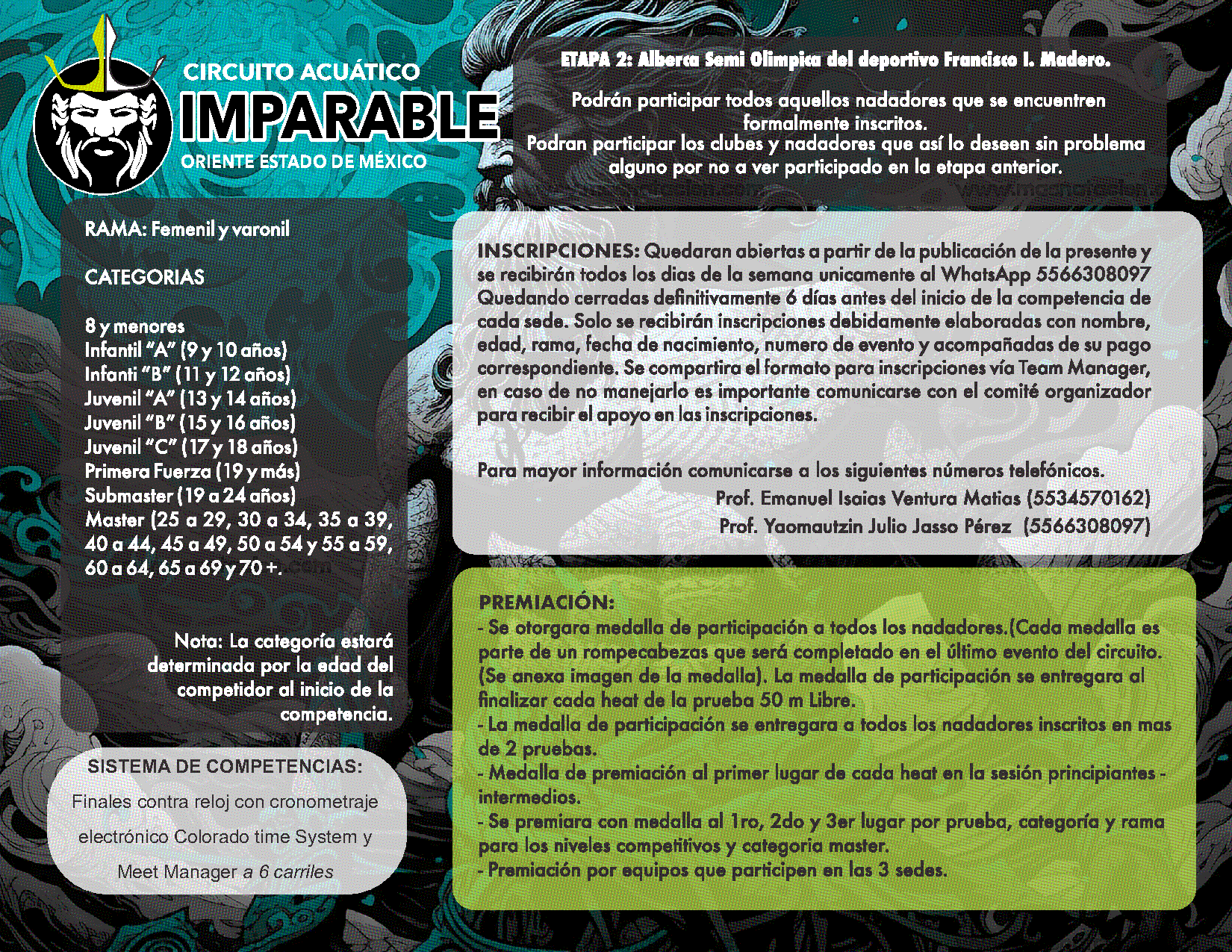 Circuito Acuático Imparable Alberca del Deportivo Francisco I. Madero., Ciudad de México, México 5 de julio del 2025 Convocatoria Resultados