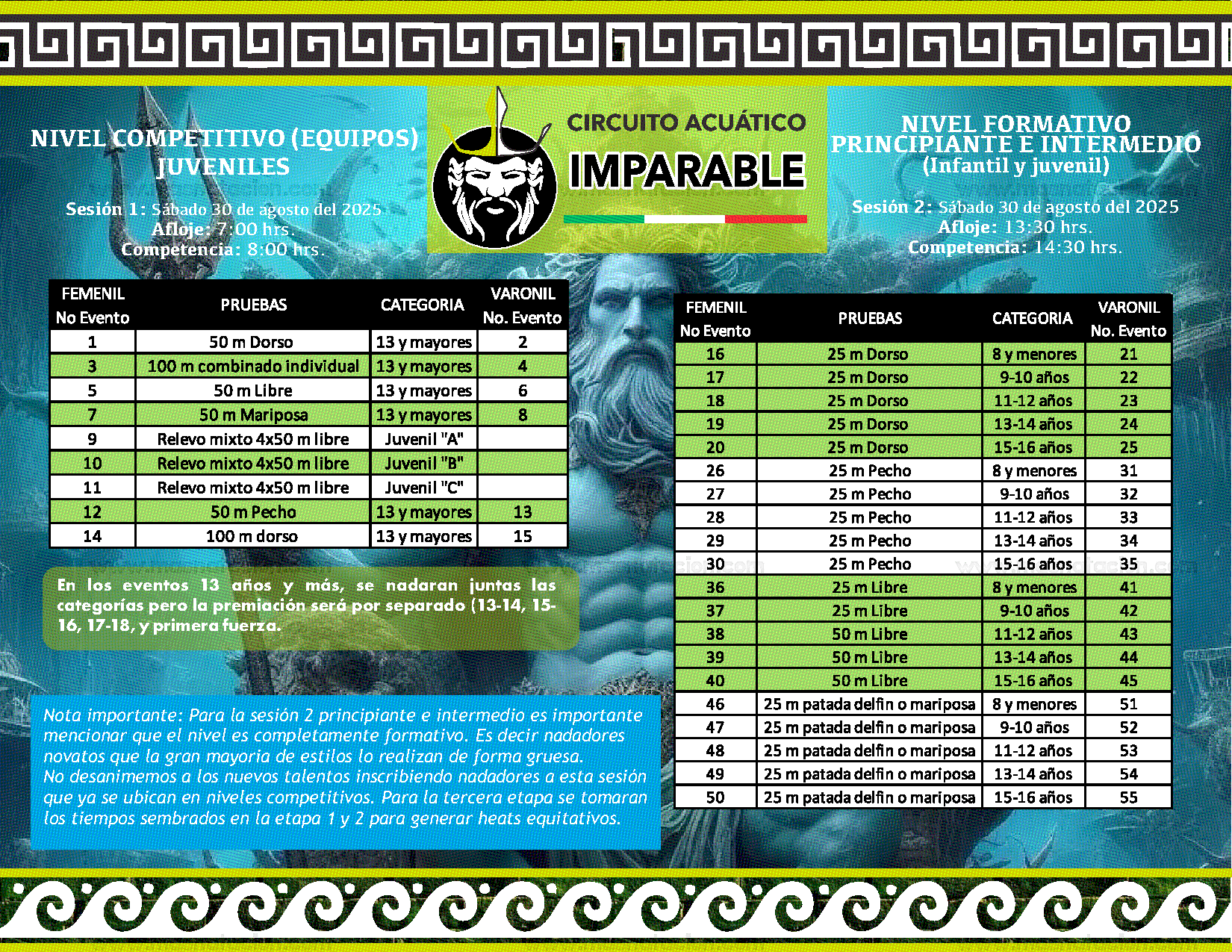 Circuito Acuático Imparable - Etapa 3 Alberca Olímpica Noé Hernández, Estado de México, México 30 de agosto del 2025 Convocatoria Resultados