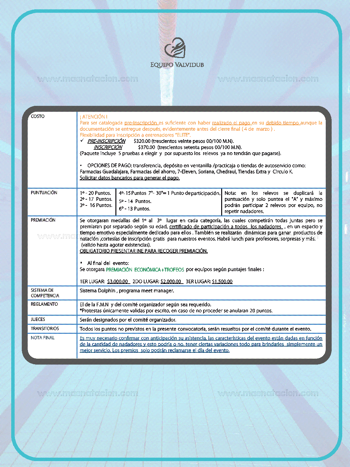 Copa Masters Valvidub 2020 Alberca Huayamilpas, Ciudad de México, México 8 de marzo del 2020 Convocatoria
