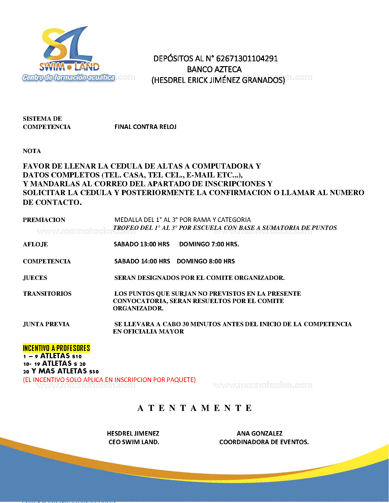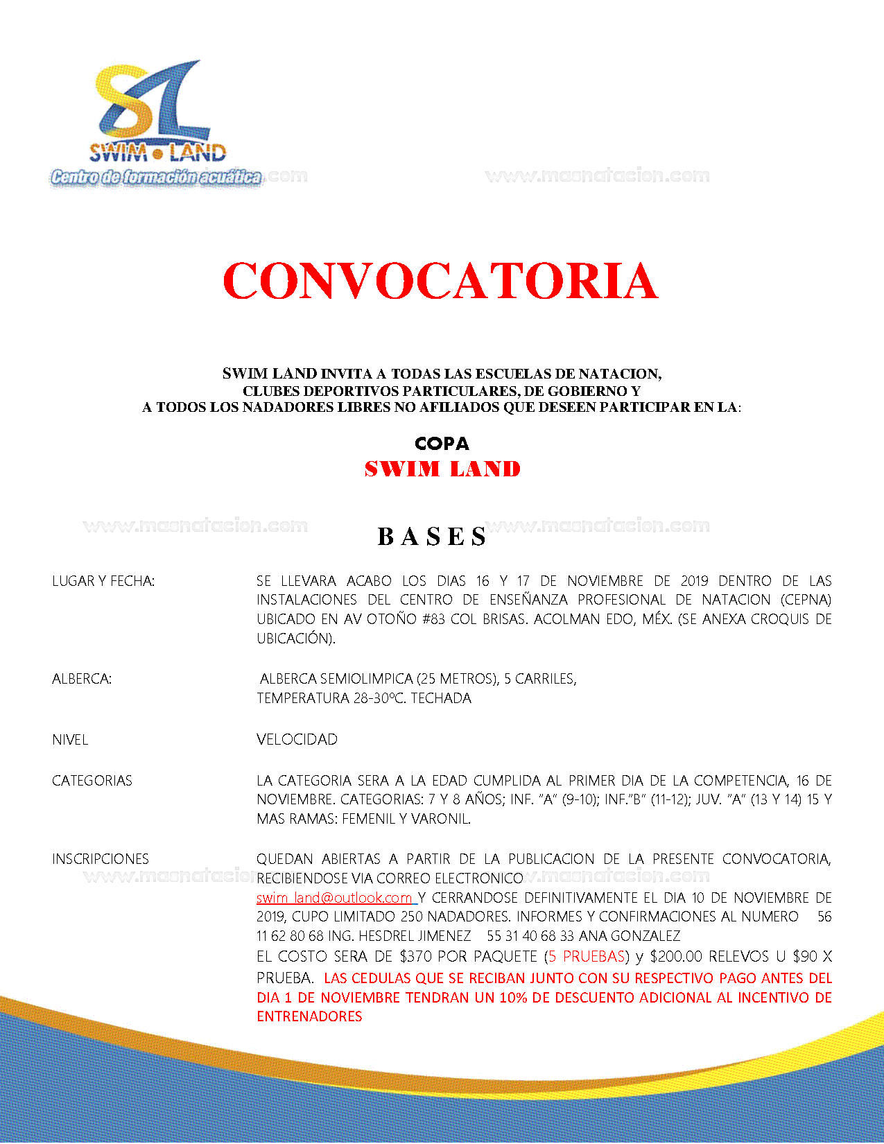 Copa Swim Land 2019 Cepna Centro de Enseñanza Profesional de Natación, Estado de México, México 16 de noviembre del 2019 Convocatoria