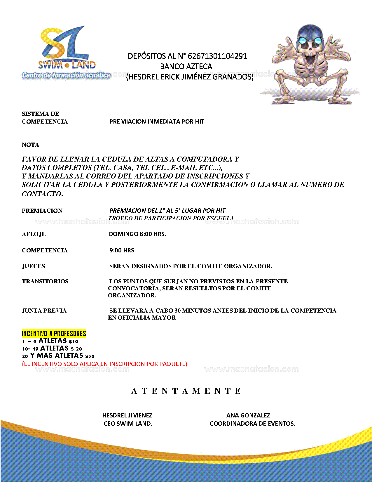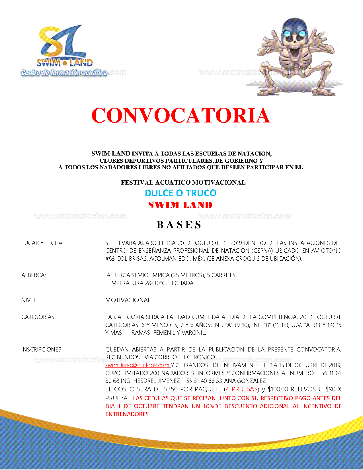 Festival Acuatico Motivacional Dulce O Truco Swim Land 2019 Cepna Centro de Enseñanza Profesional, Estado de México, México 20 de octubre del 2019 Convocatoria