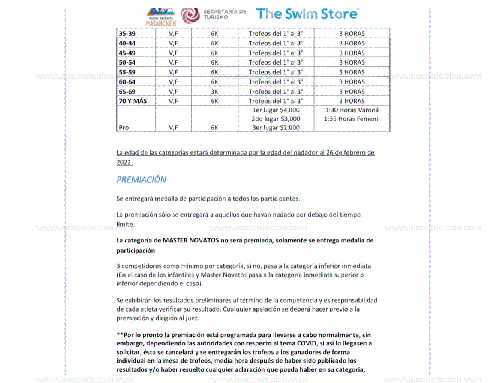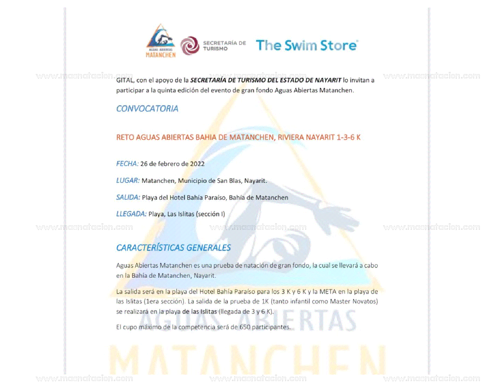 Reto Aguas Abiertas Bahia de Matanchen Riviera Nayarit 2022 Matanchen, Nayarit, México 26 de febrero del 2022 Convocatoria Resultados