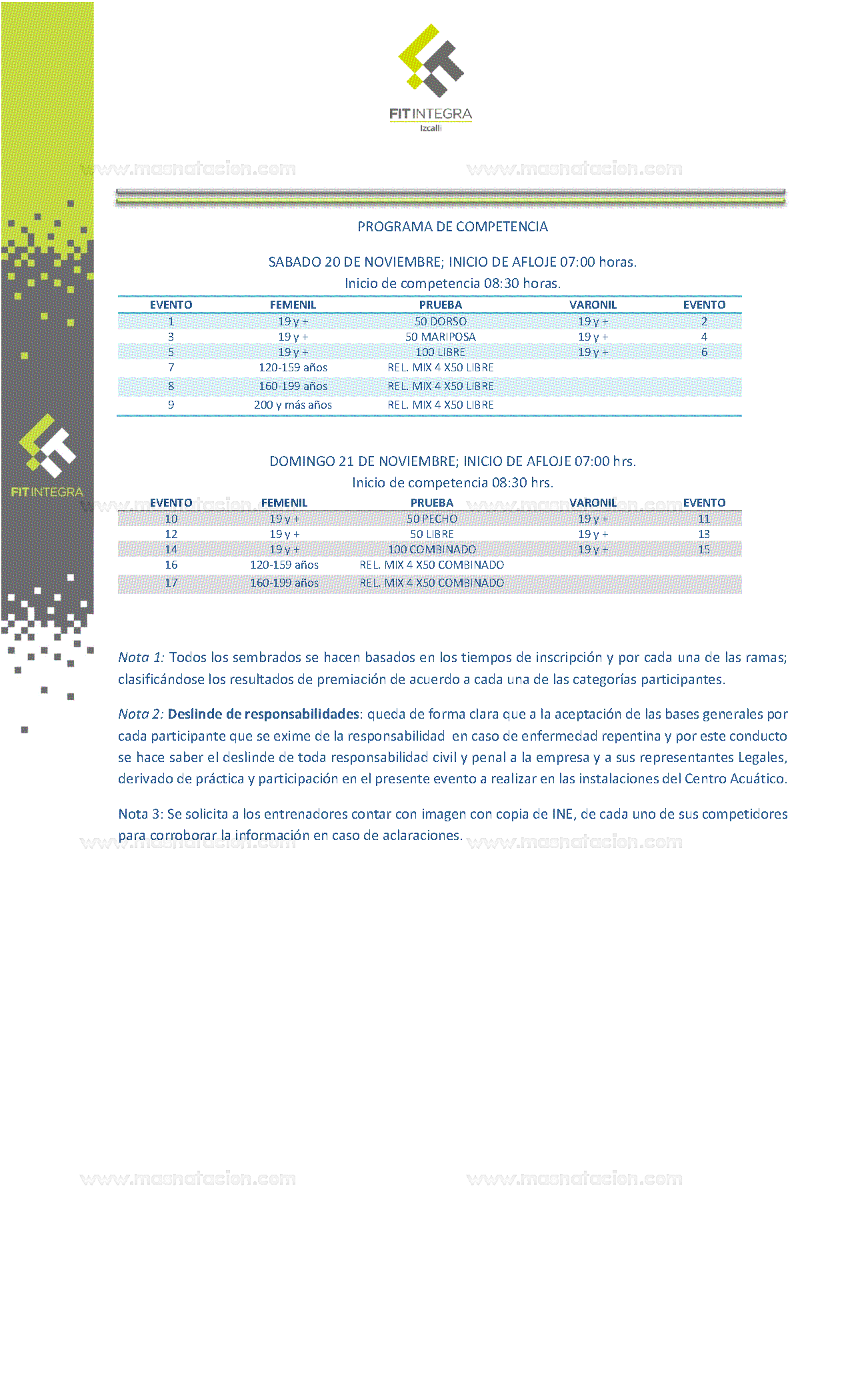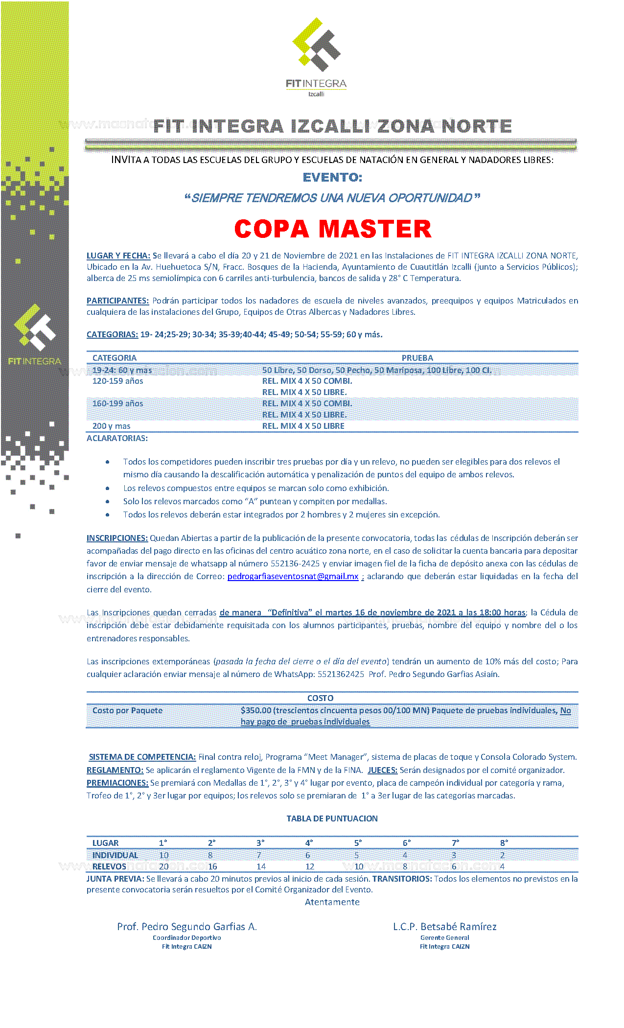 Torneo de Copa Master Noviembre 2021 Fit Integra Izcalli Zona Norte, Estado de México, México 20 de noviembre del 2021 Convocatoria Resultados