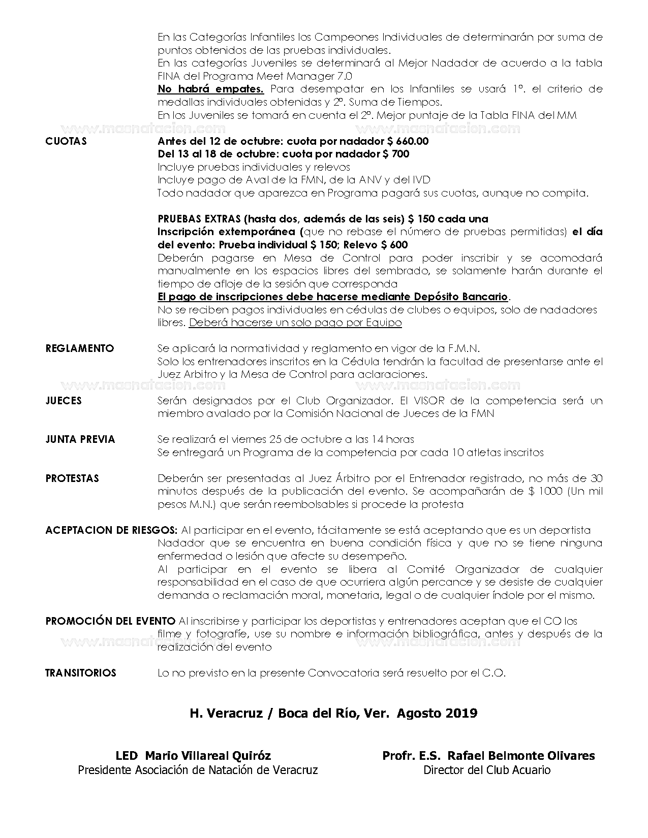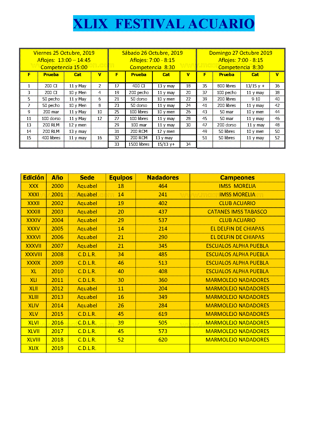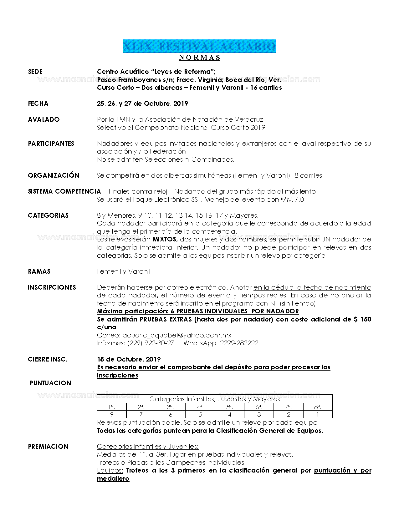 XLIX Festival Acuario 2019 Centro Acuático Leyes de Reforma, Veracruz, México 25 de octubre del 2019 Convocatoria Resultados