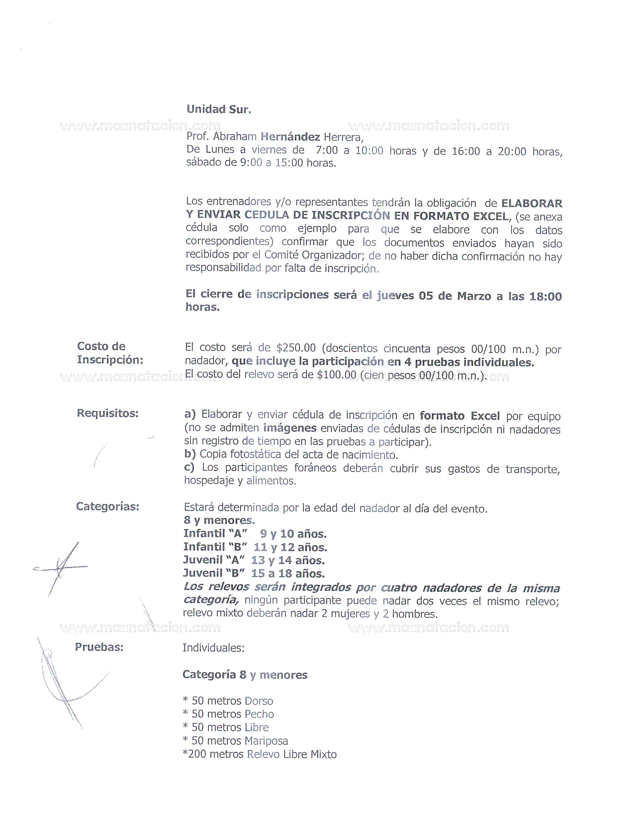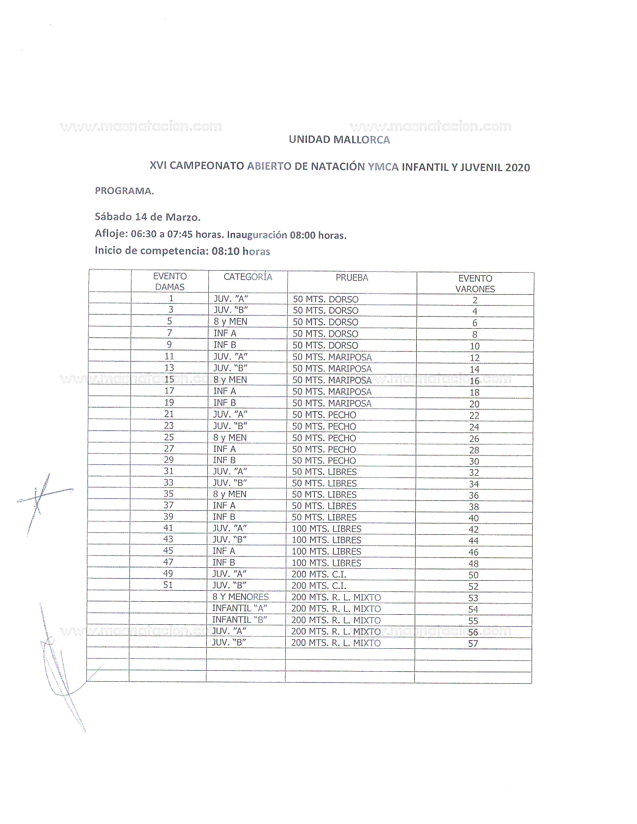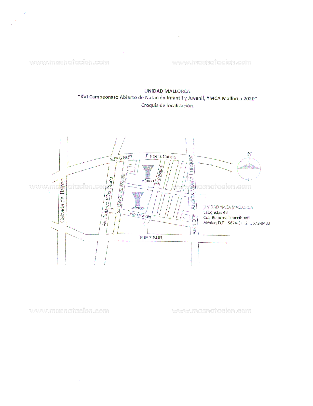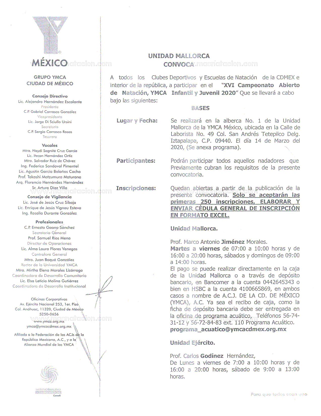 XVI Campeonato Abierto de Natación Ymca Infantil y Juvenil 2020 Ymca Mallorca, Ciudad de México, México 14 de marzo del 2020 Convocatoria