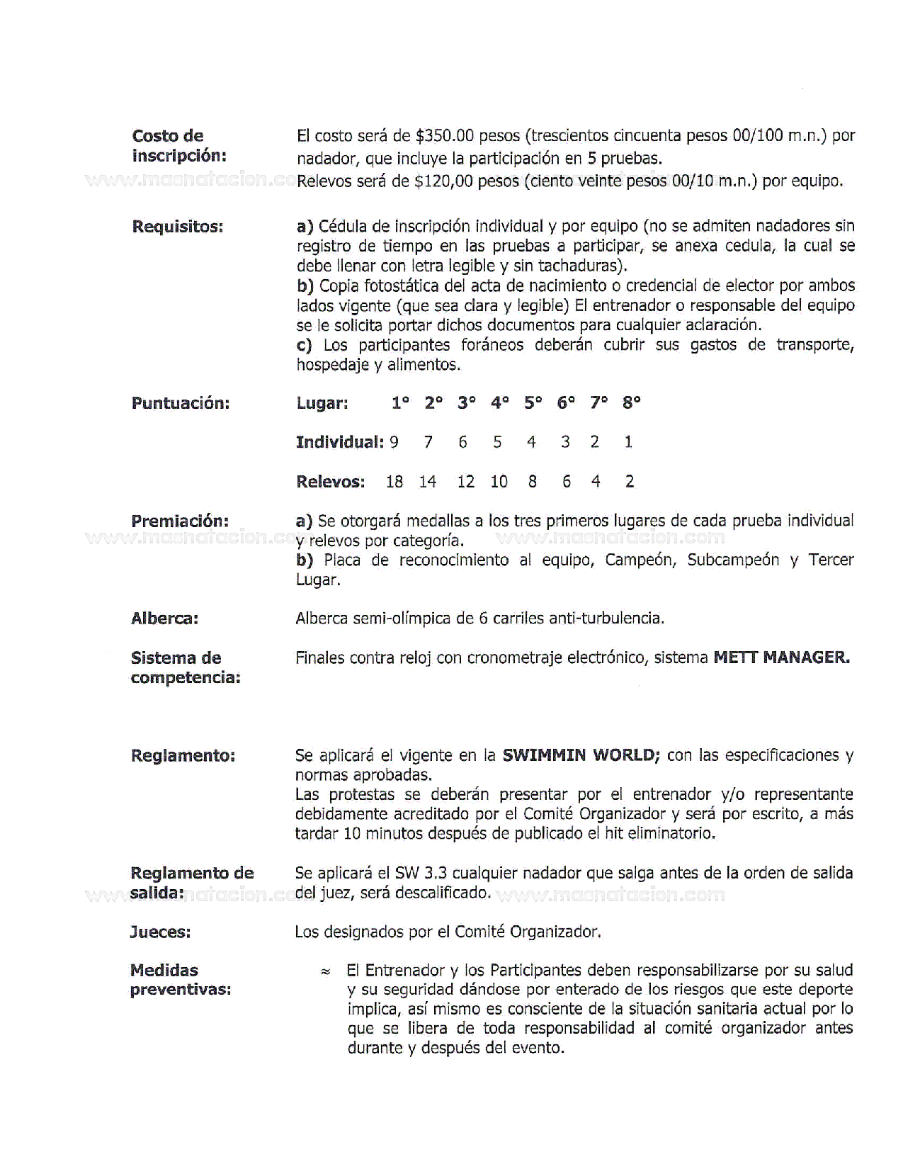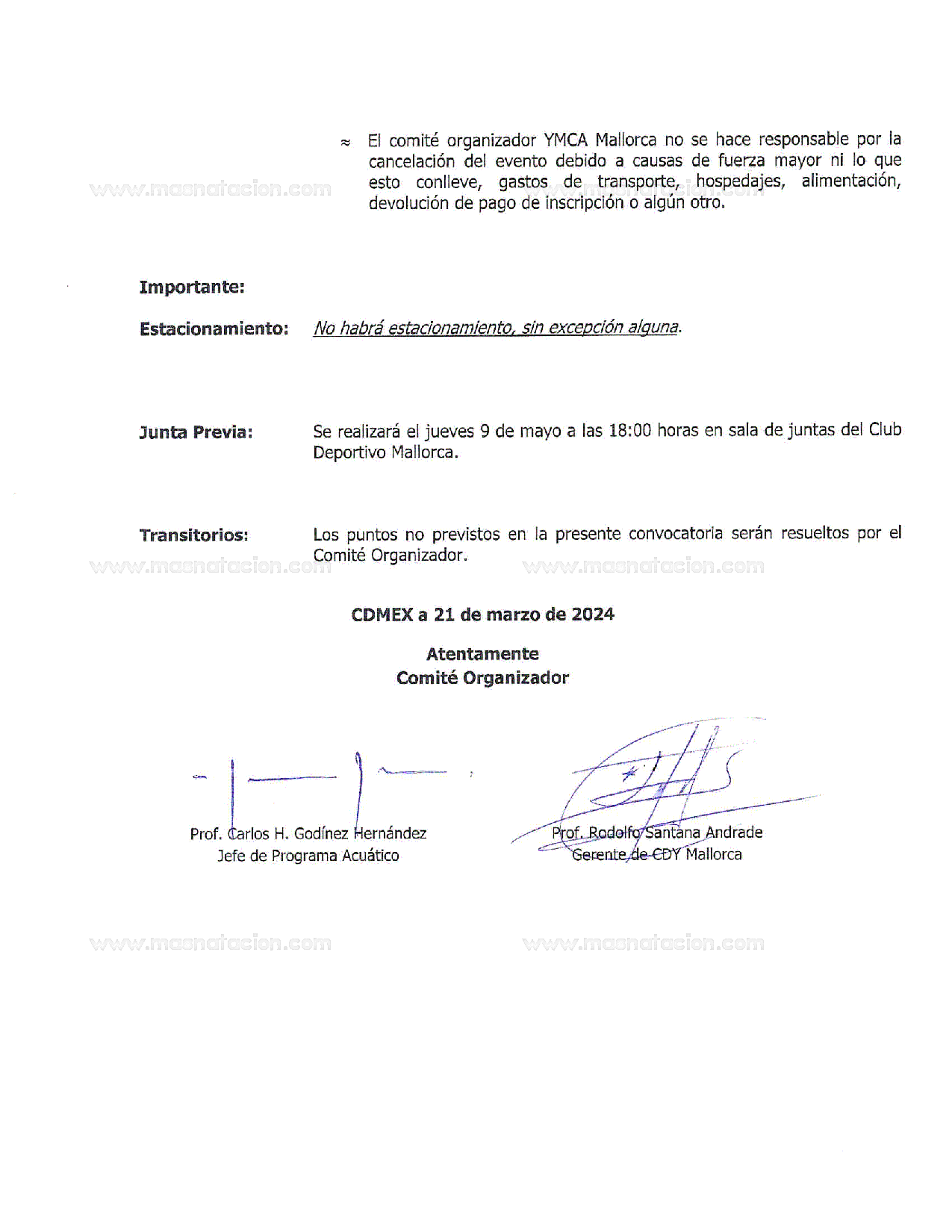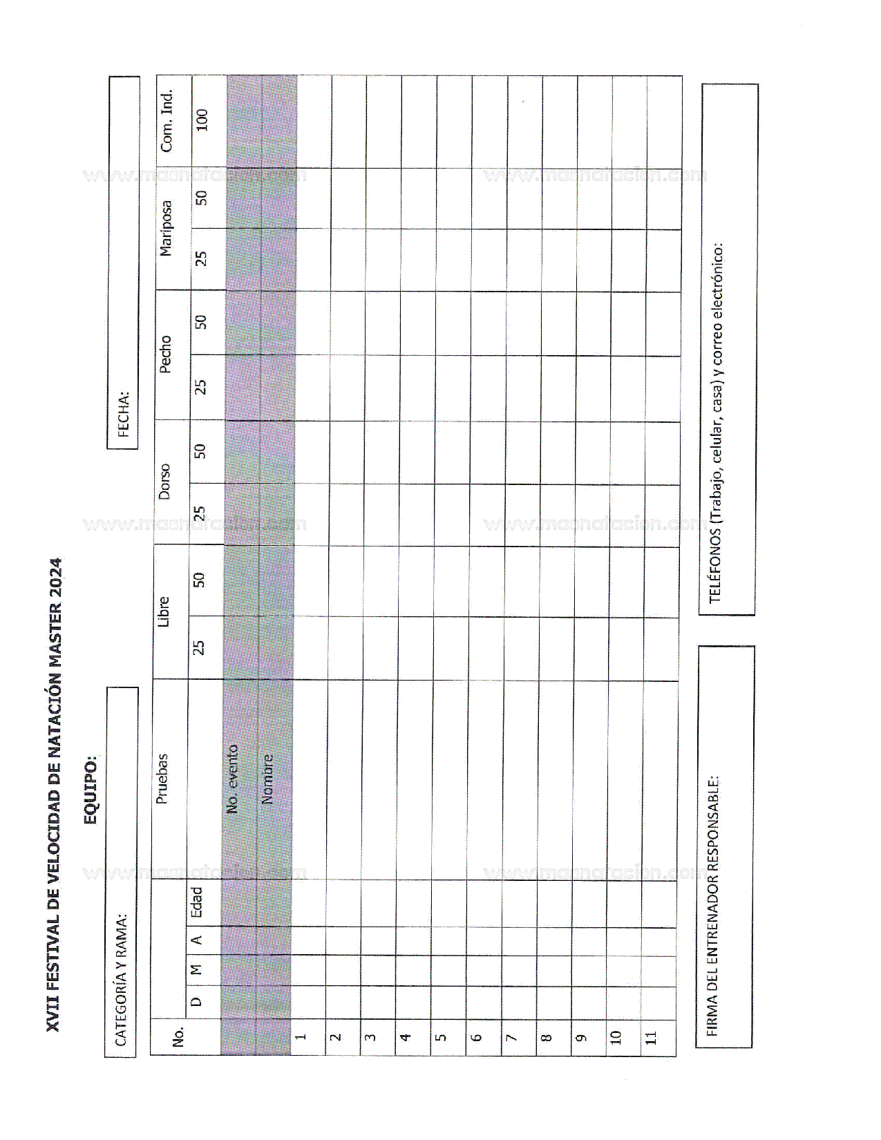 XVII Festival de Velocidad de Natacion Master Ymca 2024 Ymca Mallorca, Ciudad de México, México 18 de mayo del 2024 Convocatoria Resultados