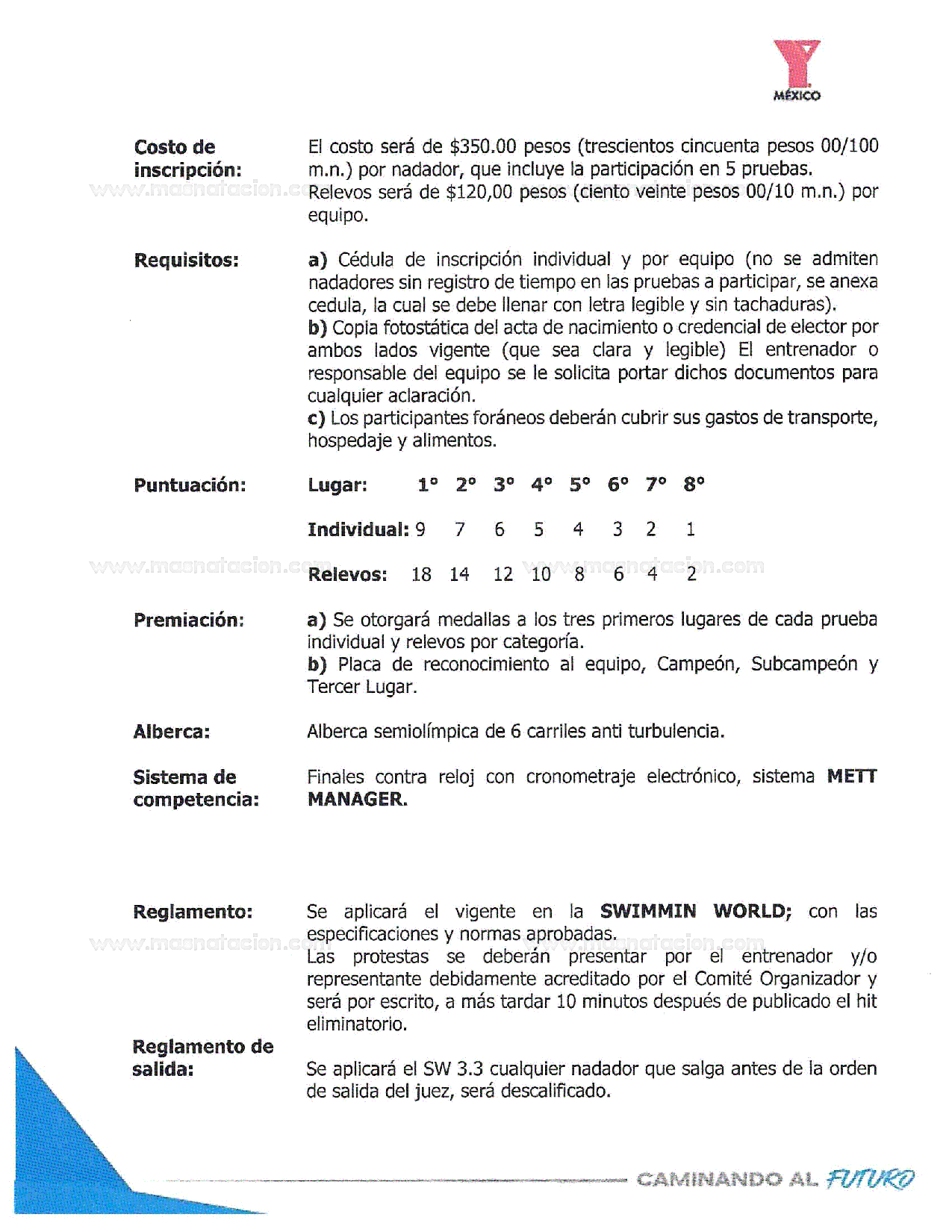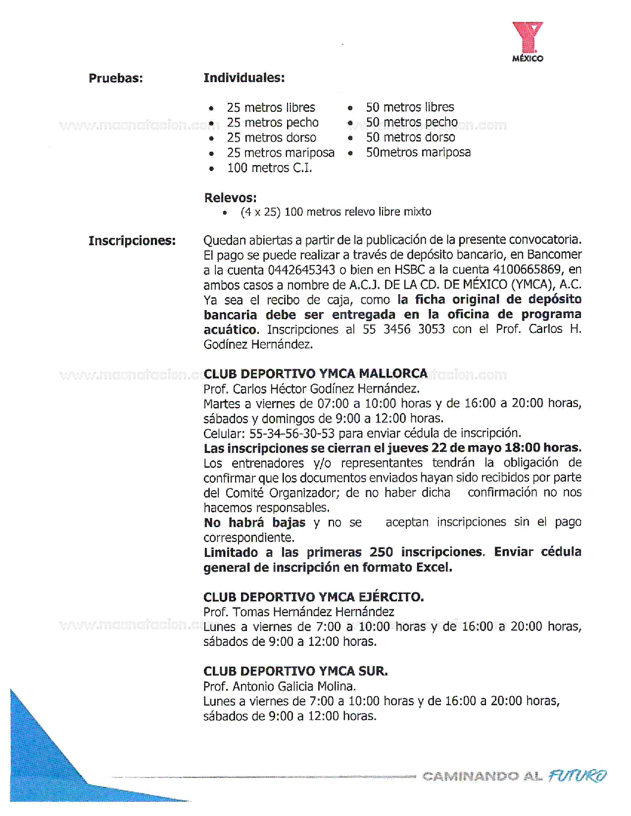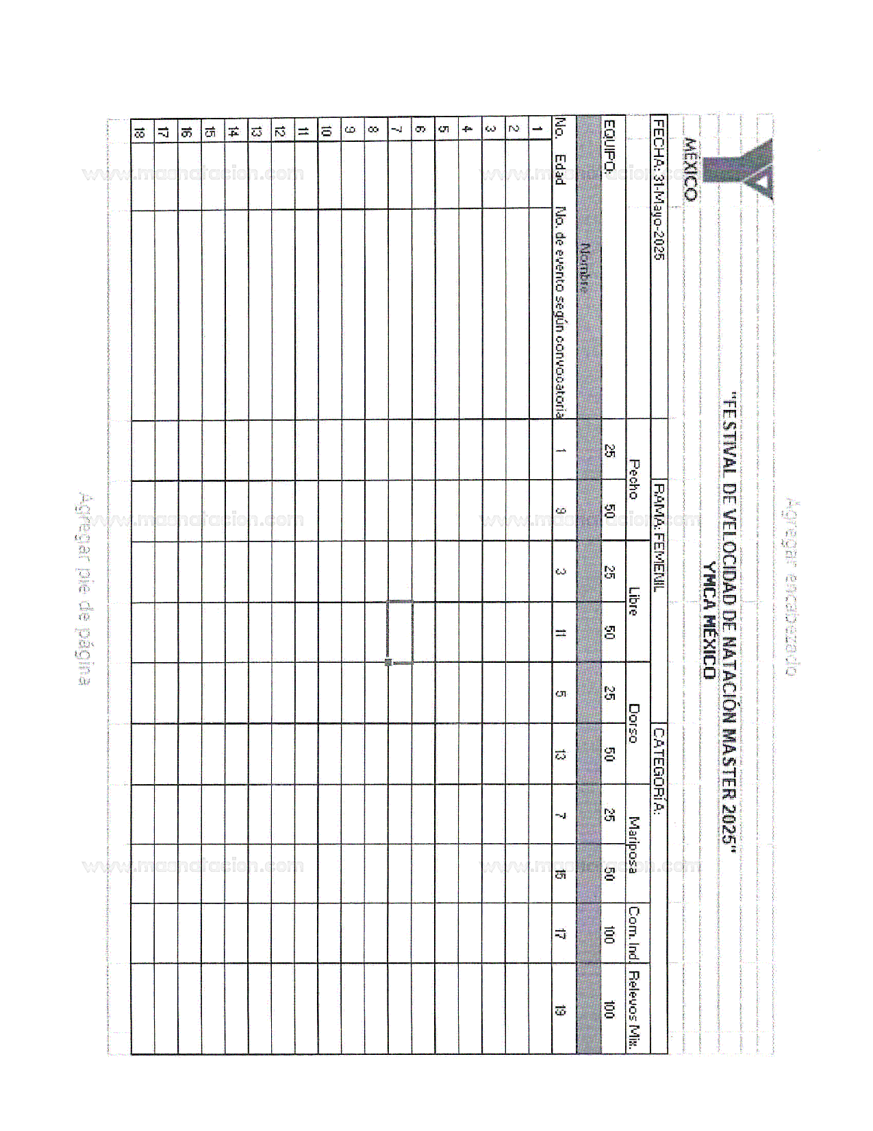 XVIII Festival de Velocidad de Natacion Master 2025 Club Deportivo Mallorca Ymca, Ciudad de México, México 31 de mayo del 2025 Convocatoria Resultados
