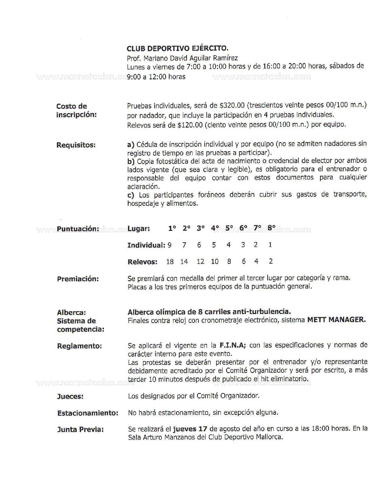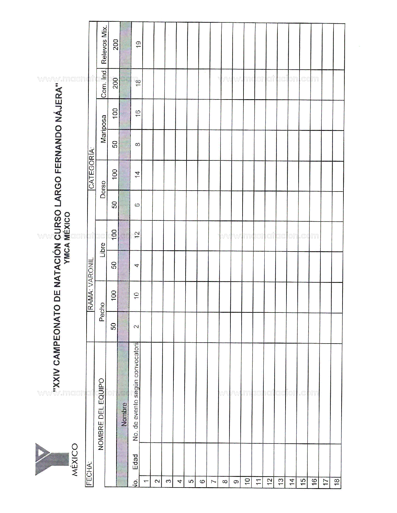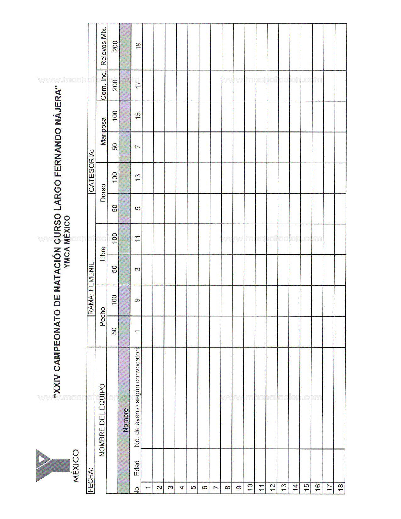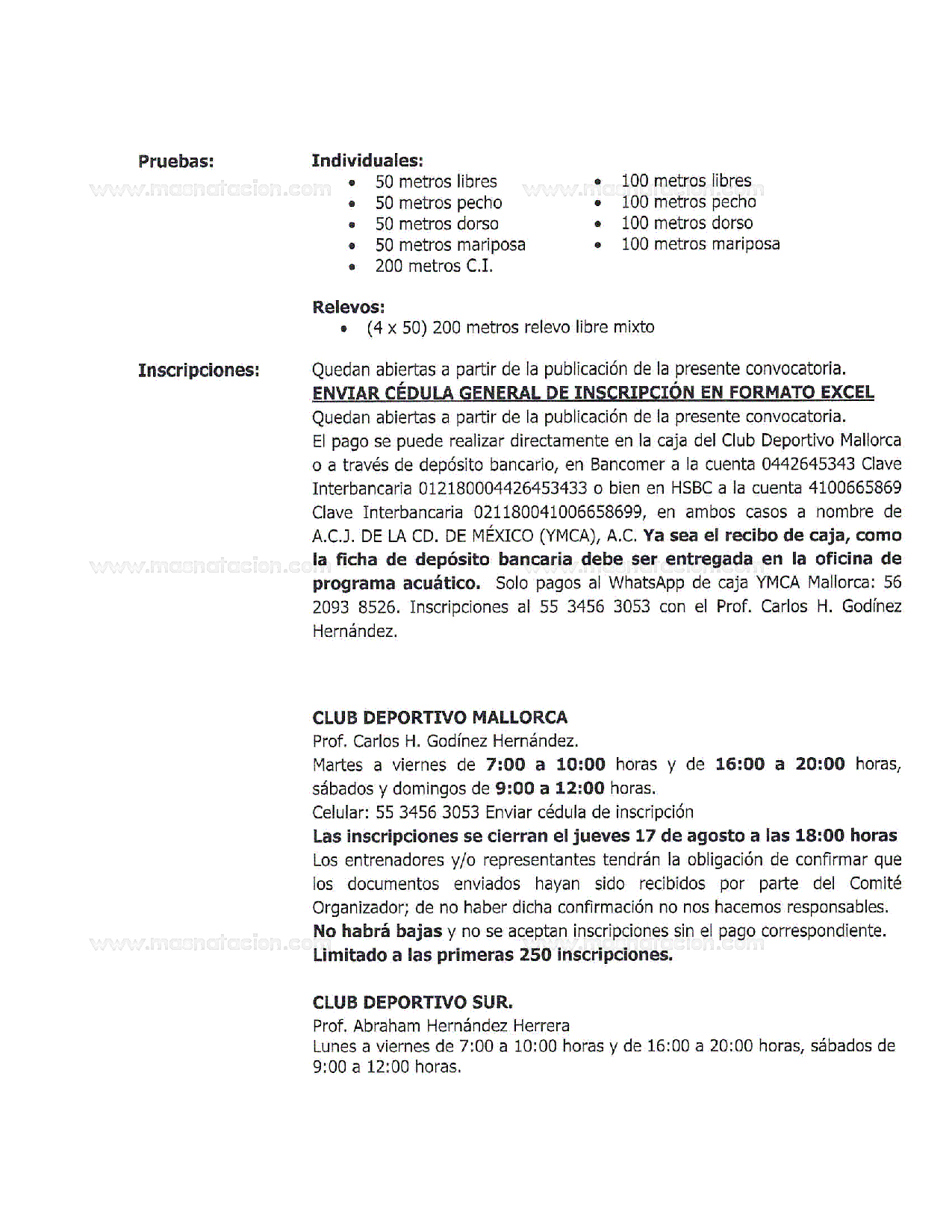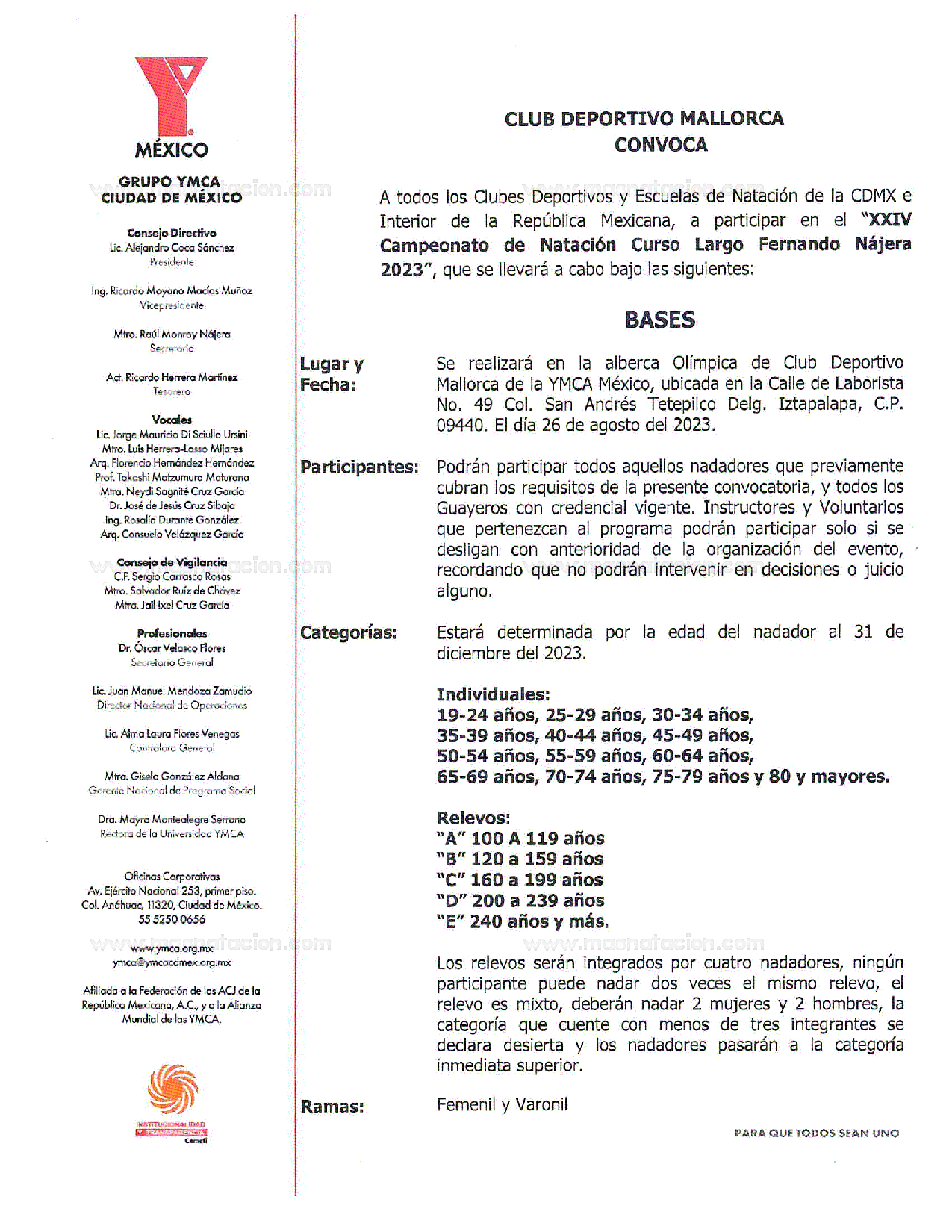 XXIV Campeonato de Natacion Curso Largo Fernando Najera 2023 Ymca Mallorca, Ciudad de México, México 26 de agosto del 2023 Convocatoria Resultados