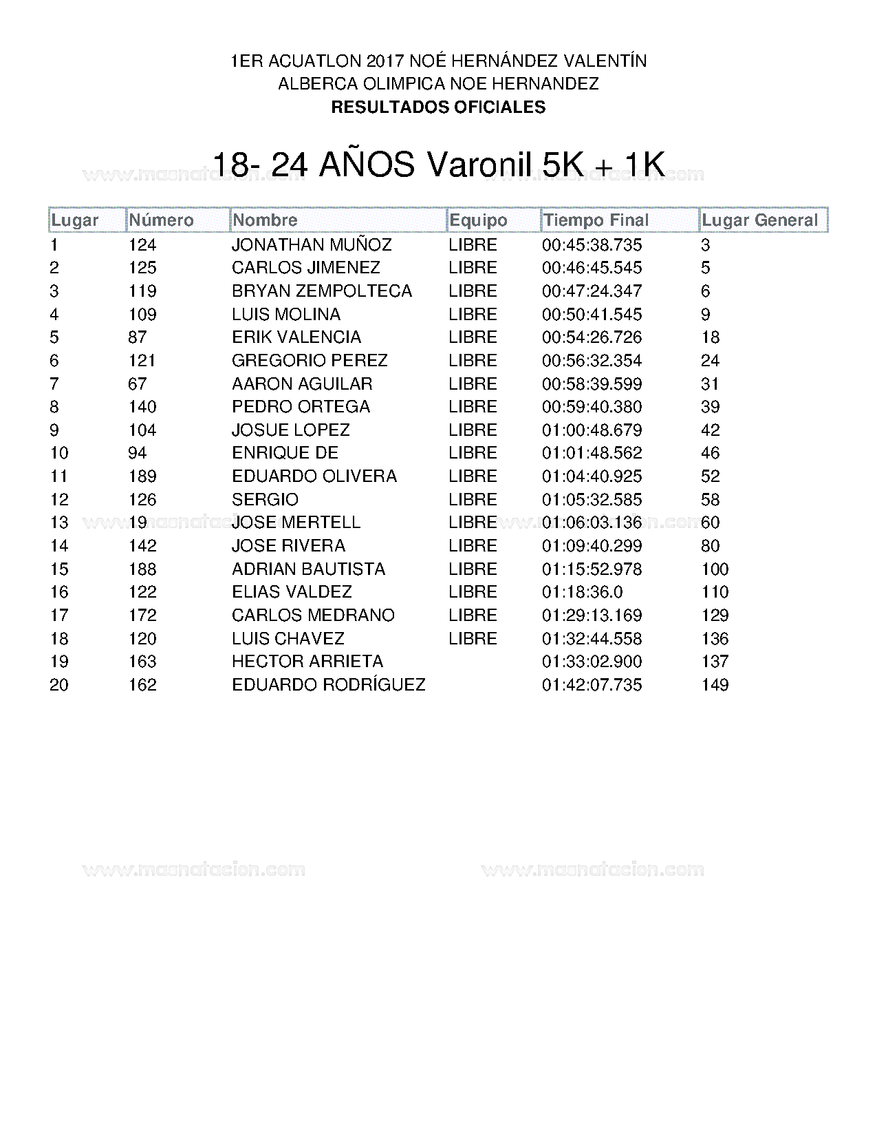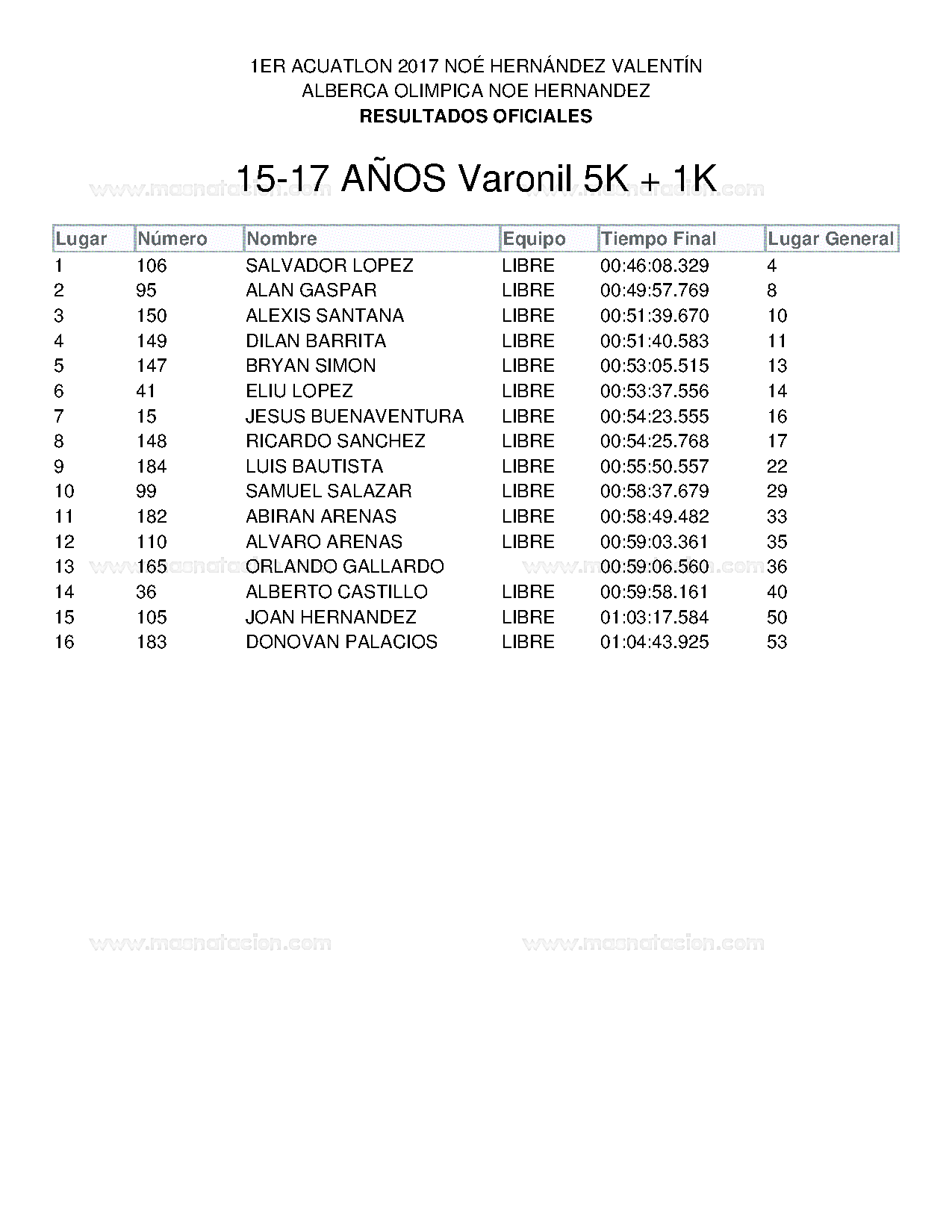 1Er Acuatlon 2017 Noé Hernández Valentín