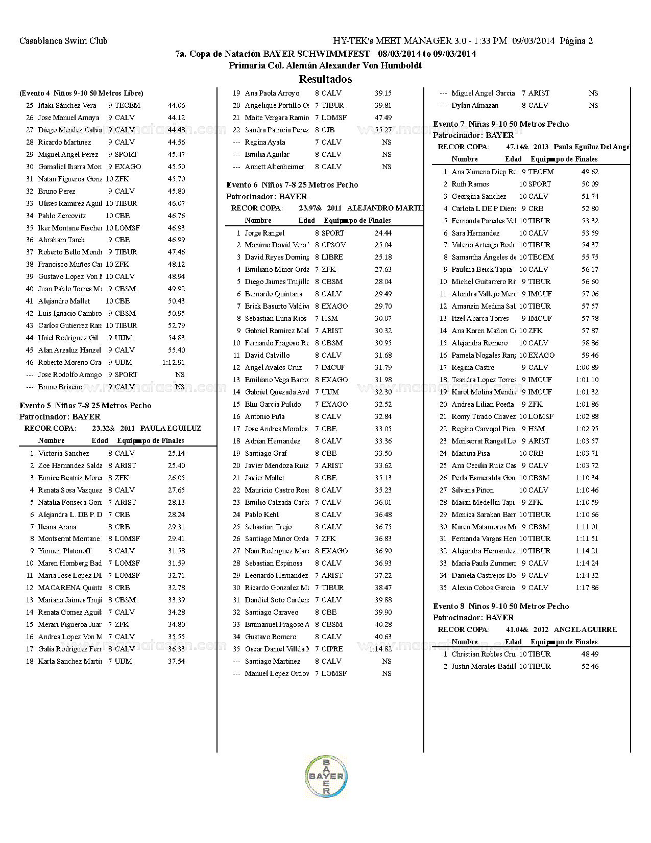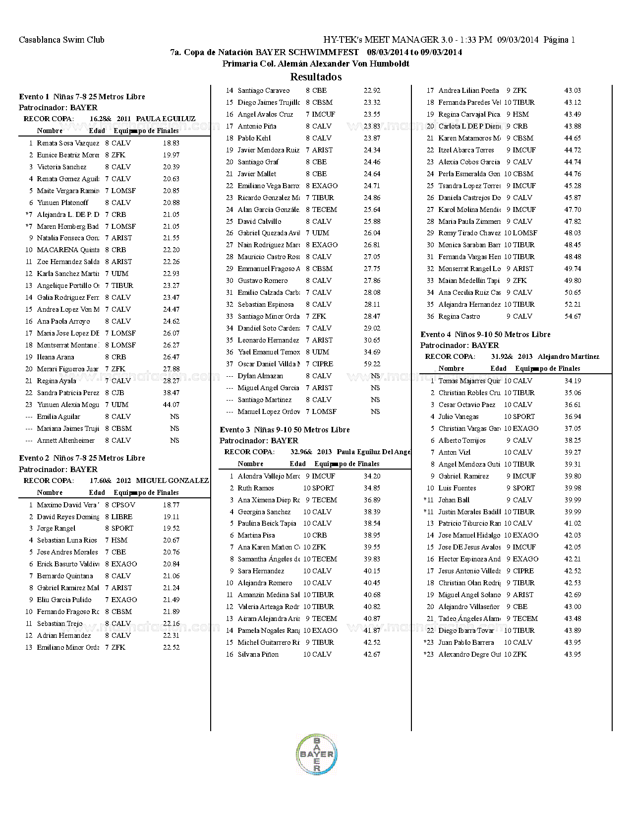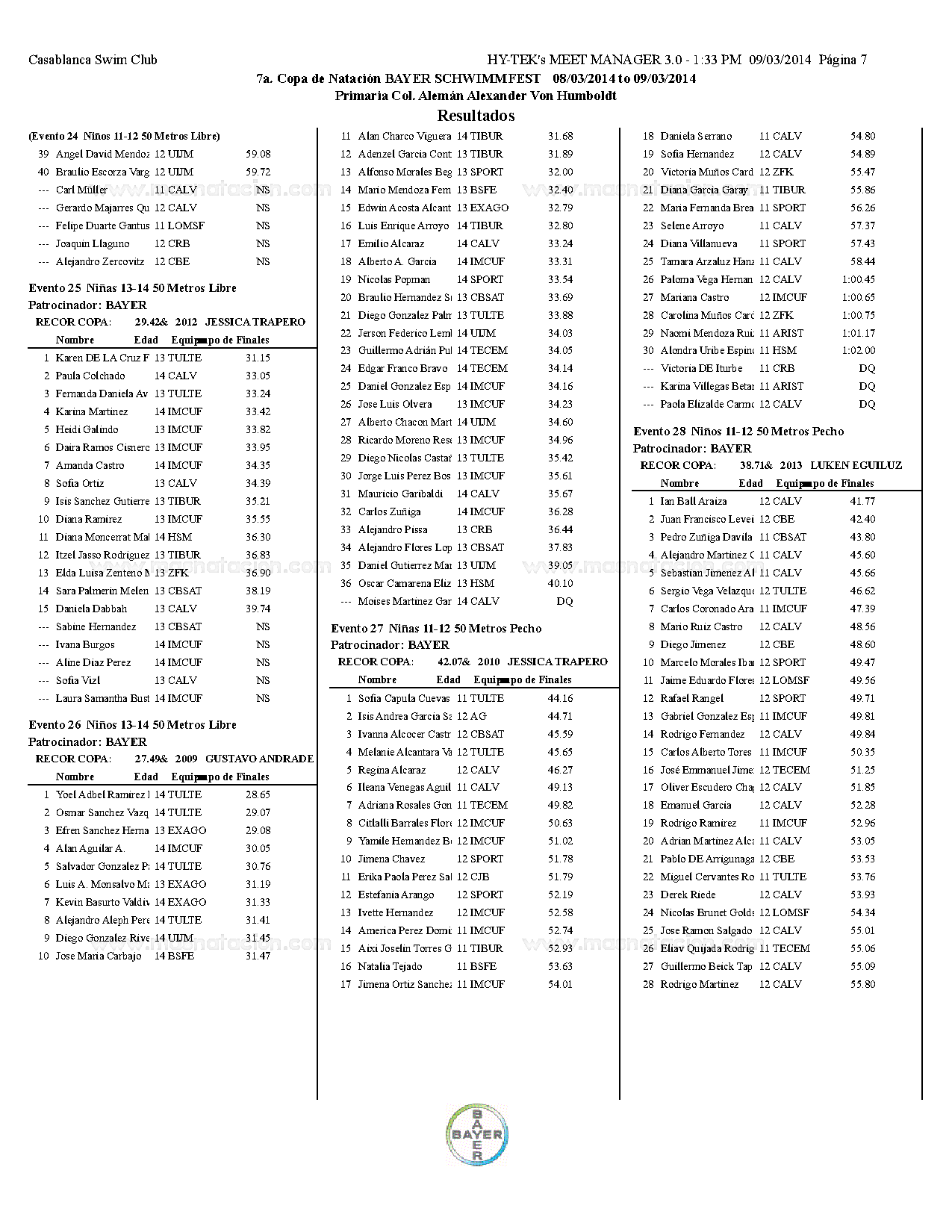 7ª Copa de Natación Bayer Schwimmfest 2014