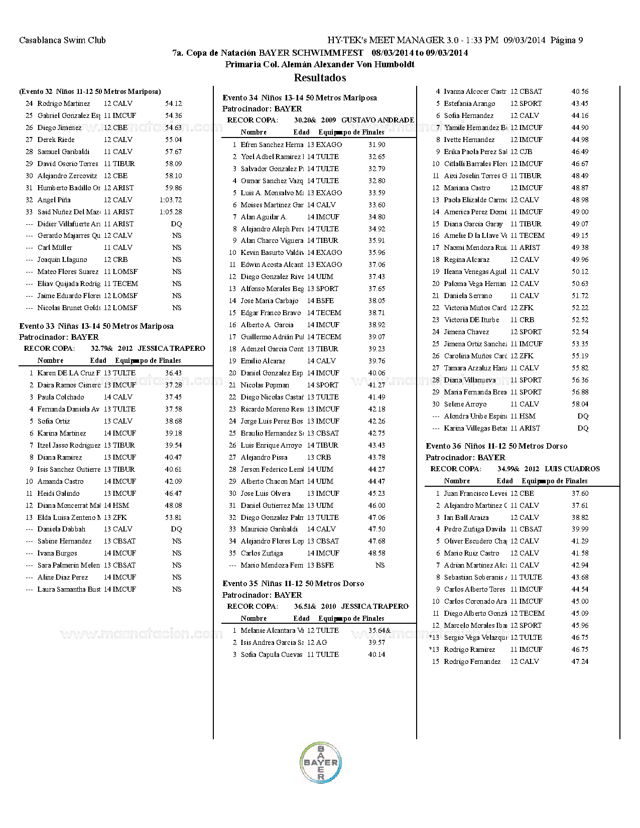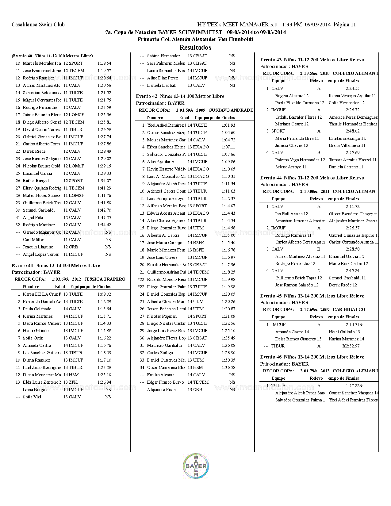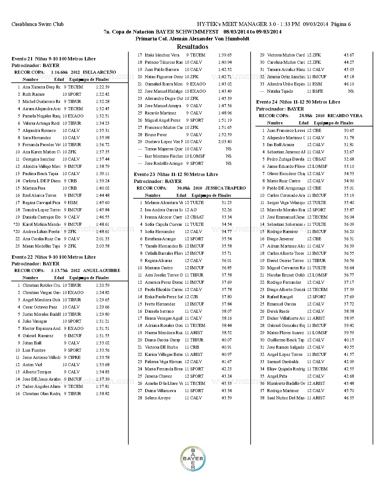 7ª Copa de Natación Bayer Schwimmfest 2014