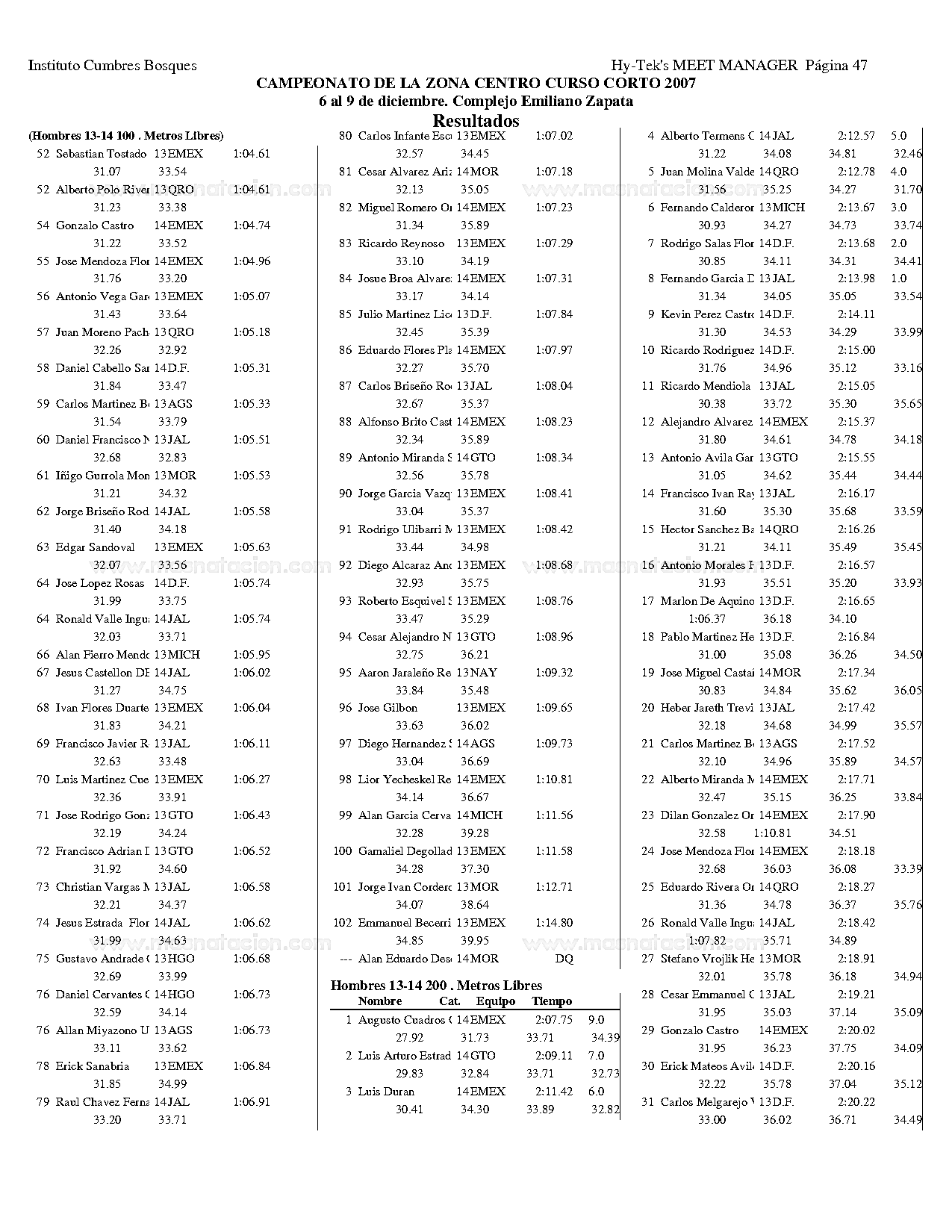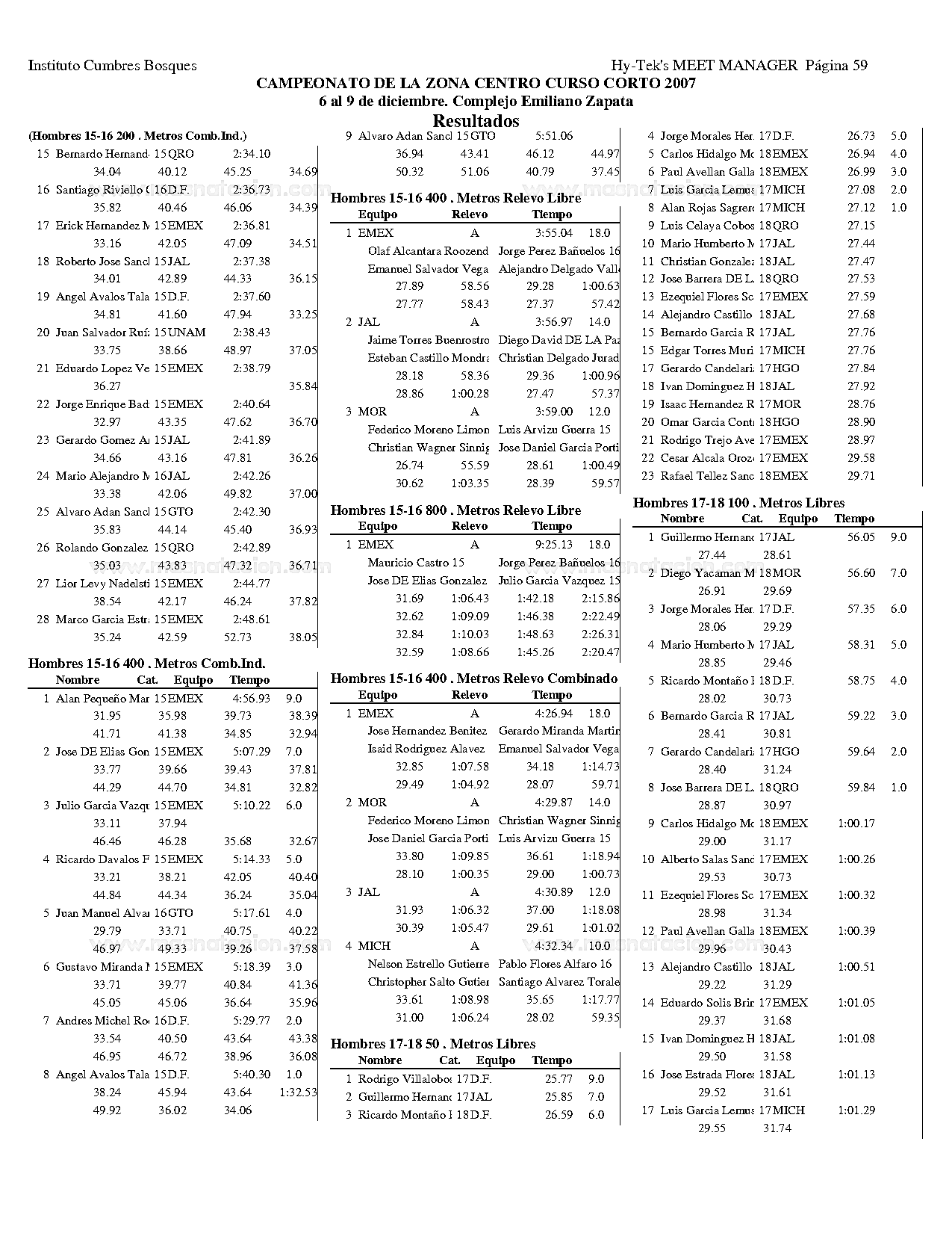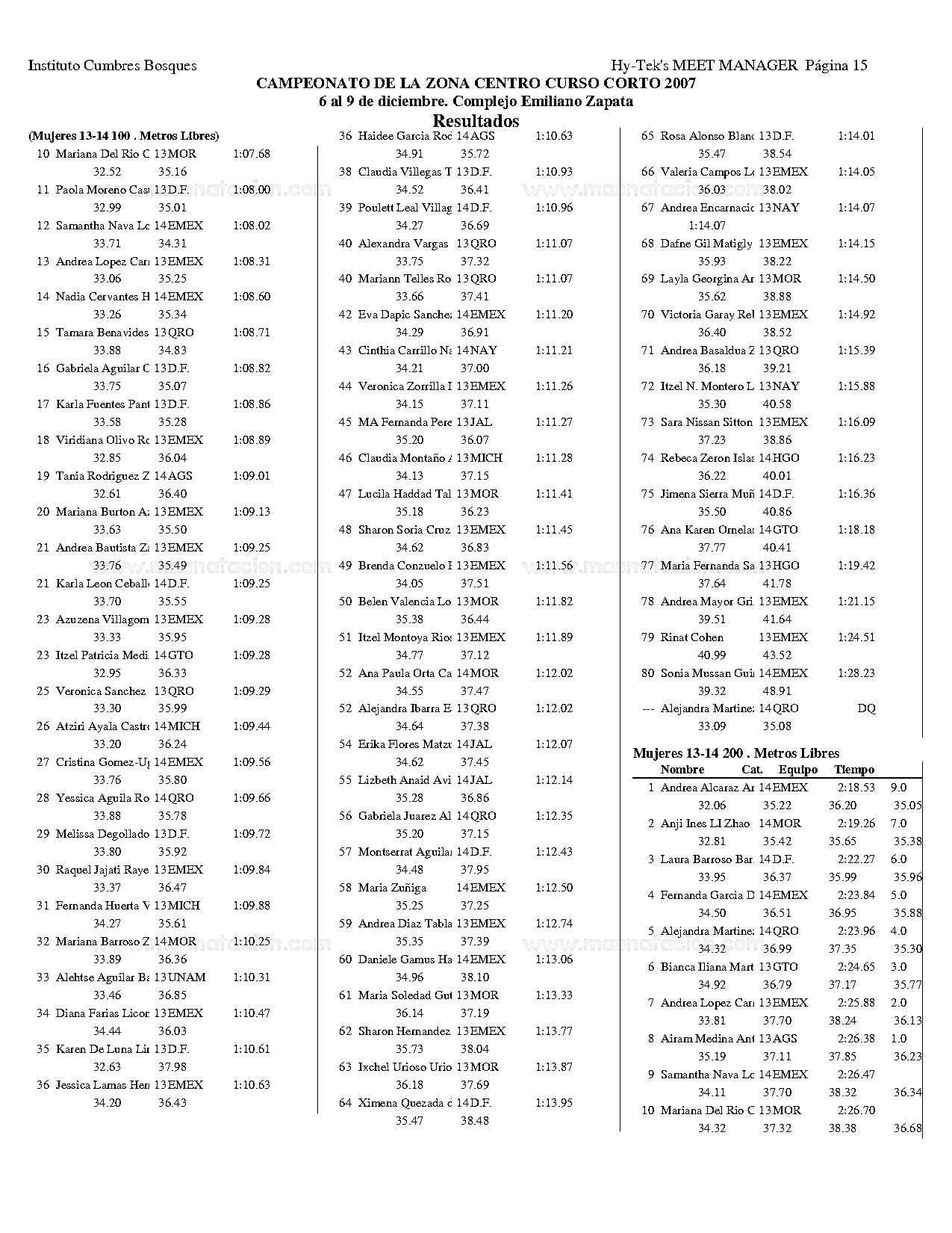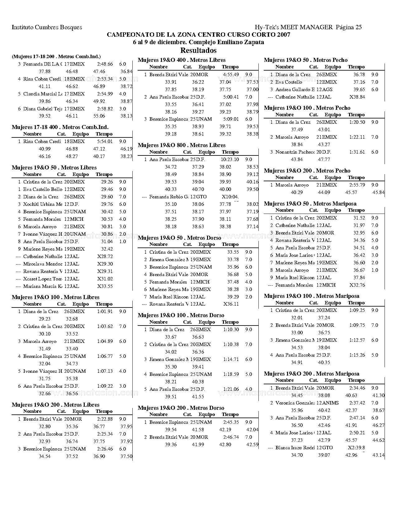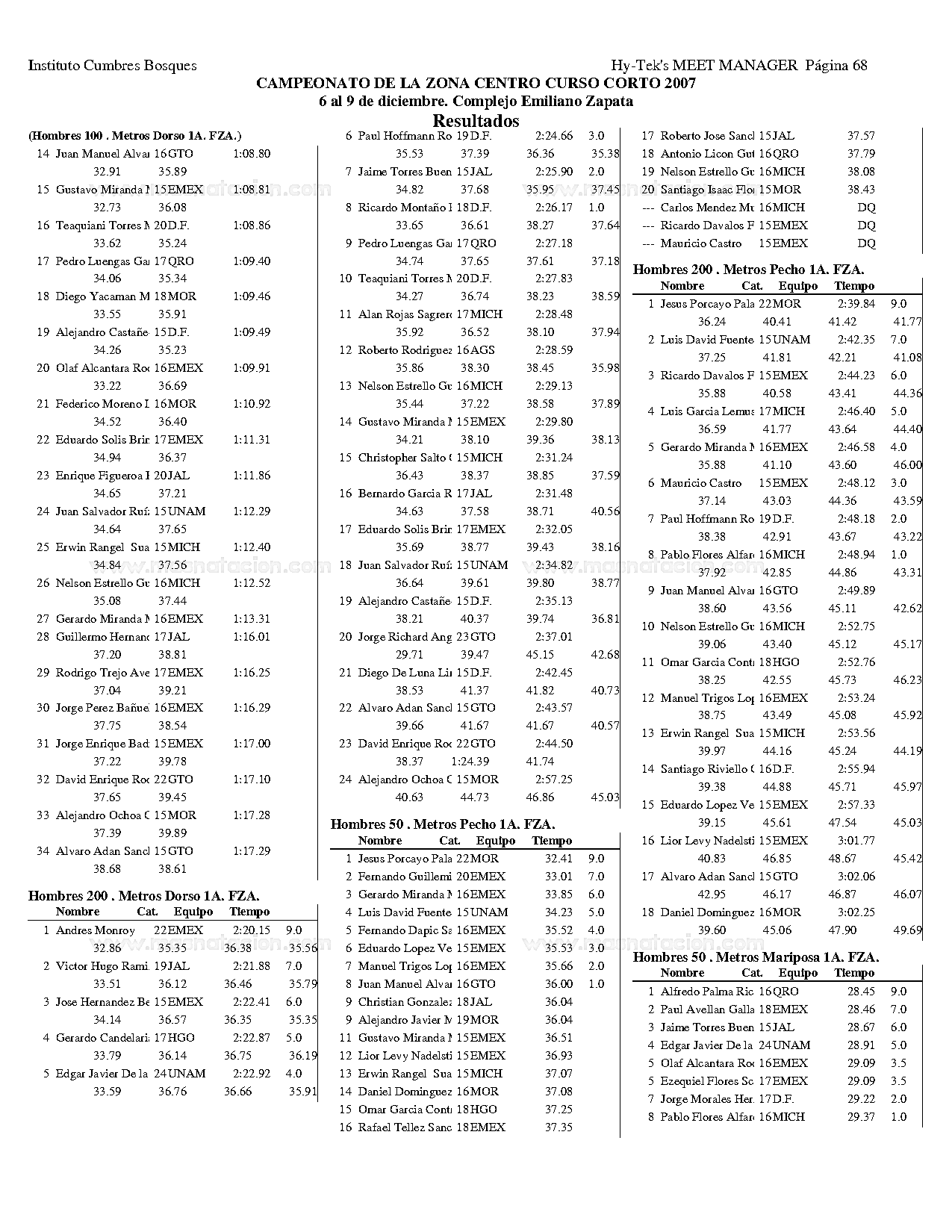 Campeonato de la Zona Centro Curso Corto 2007