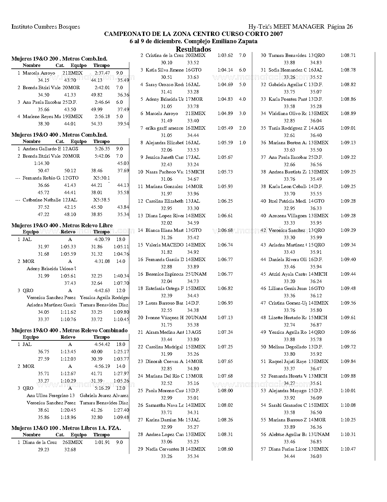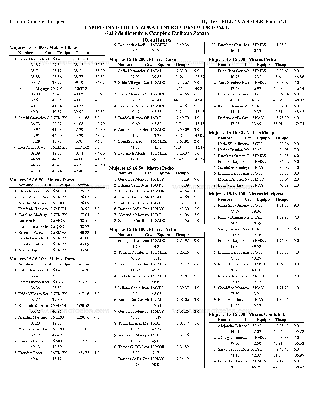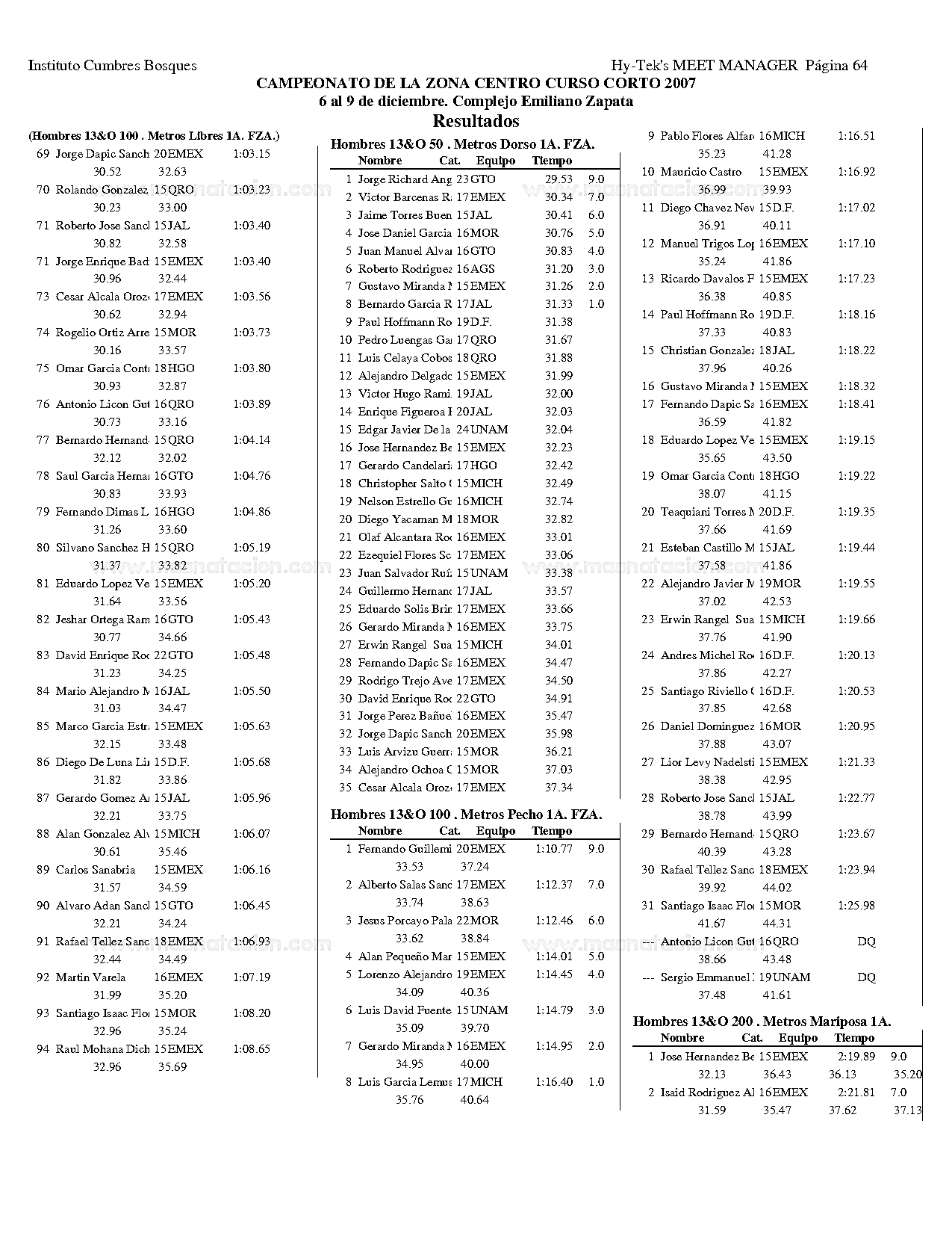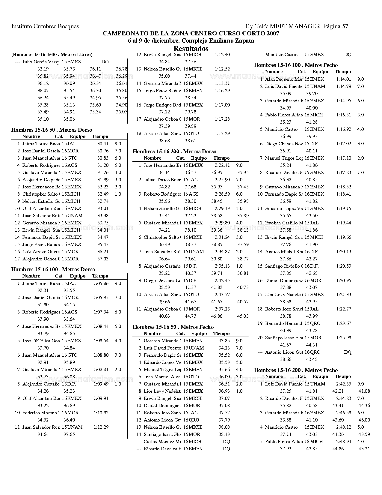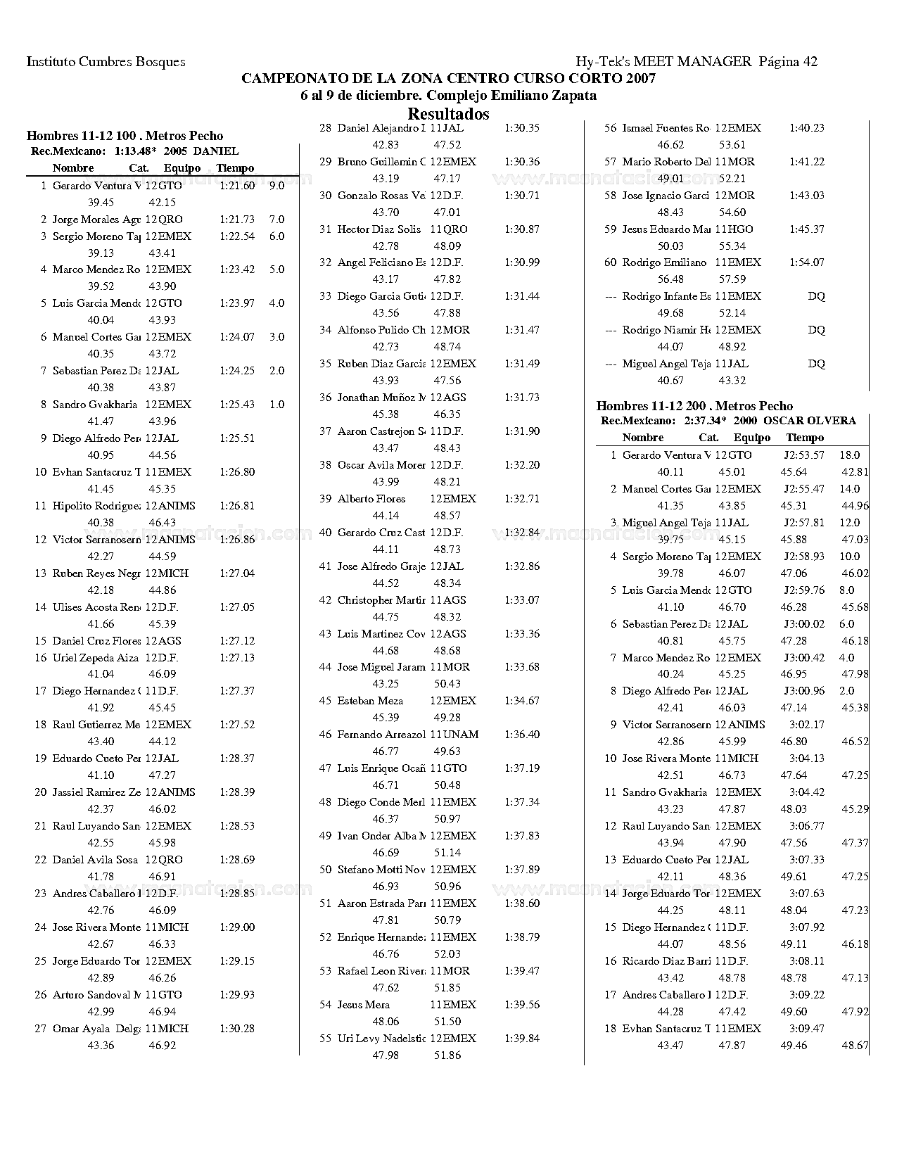 Campeonato de la Zona Centro Curso Corto 2007