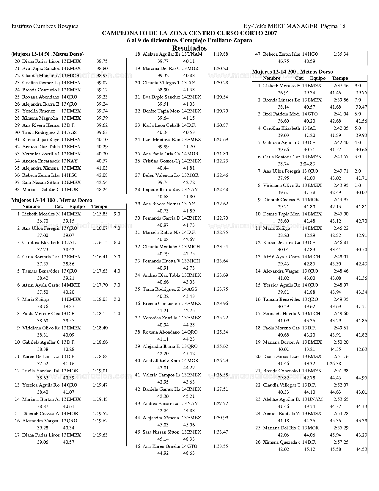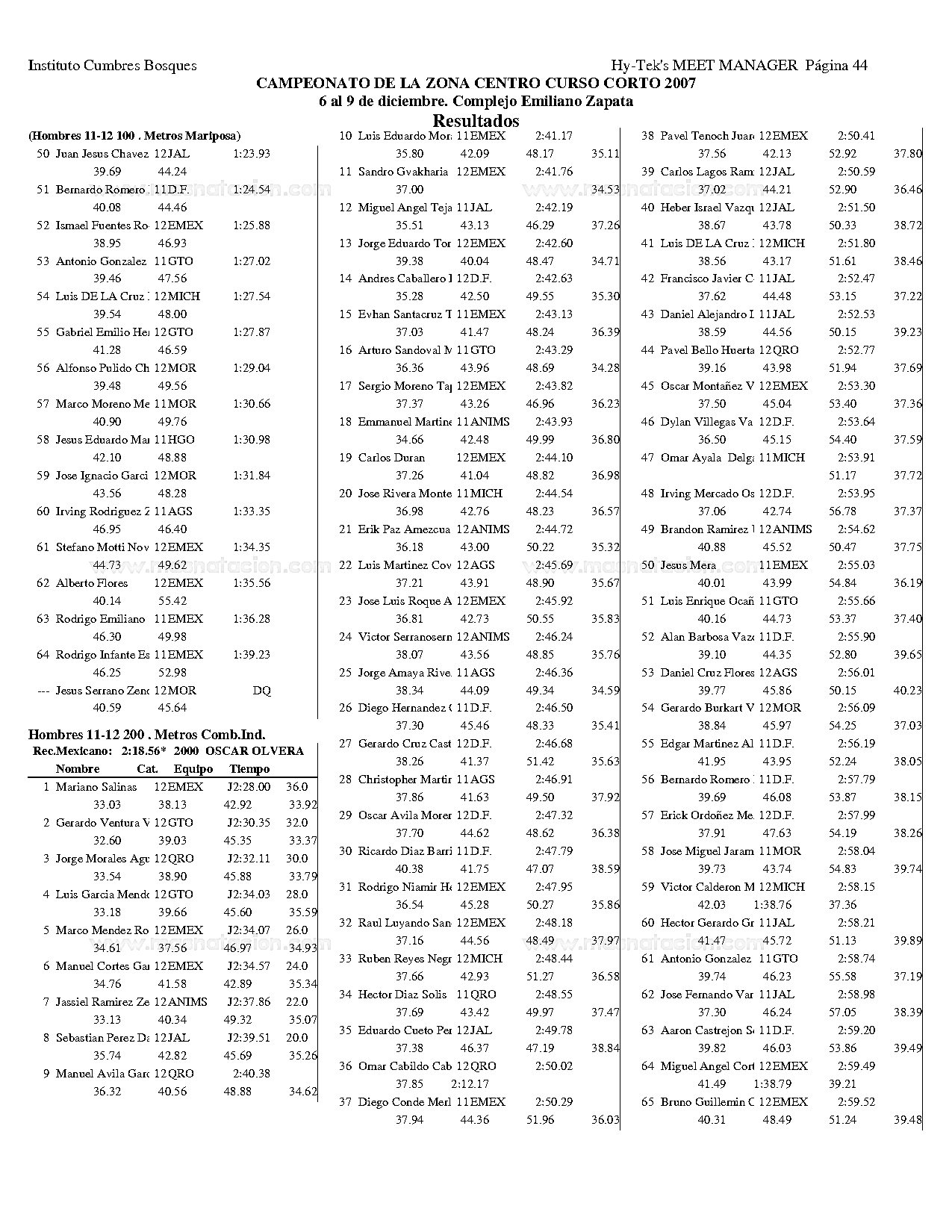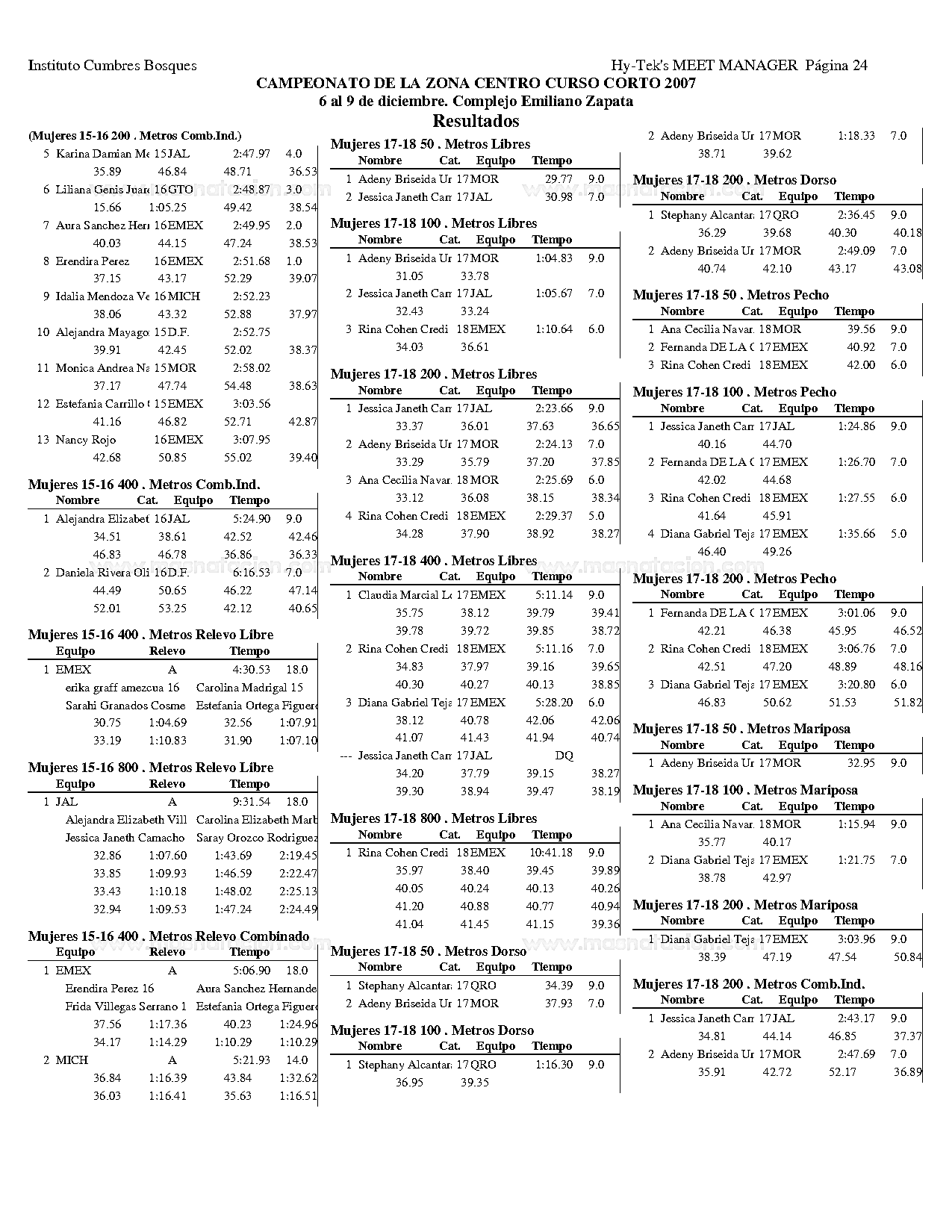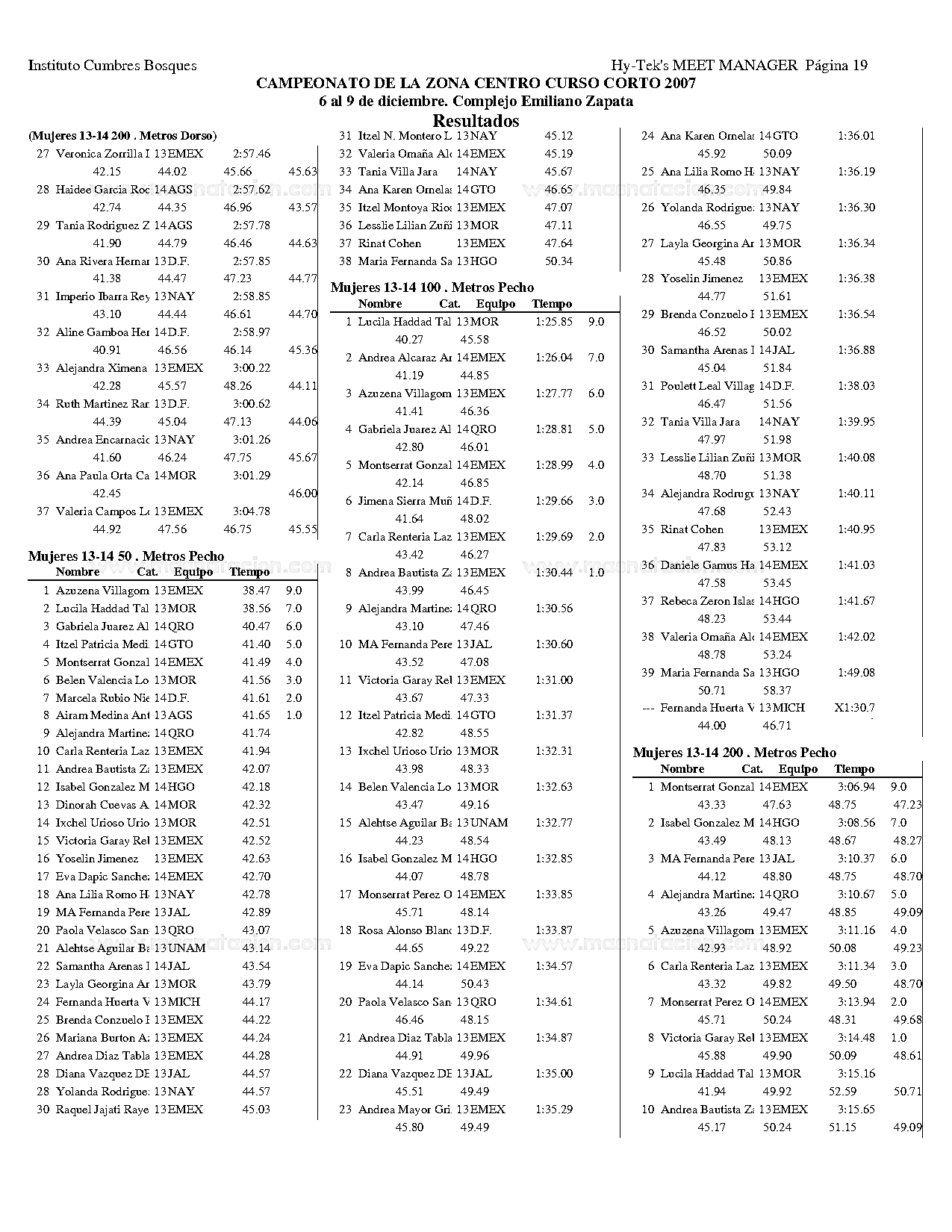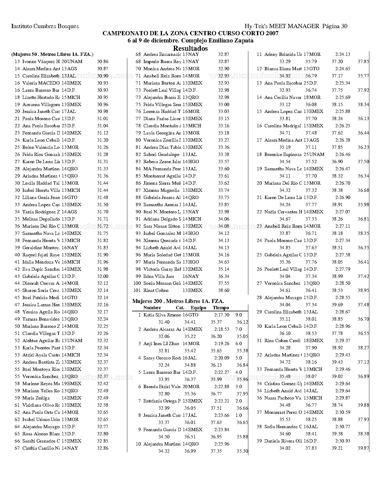Campeonato de la Zona Centro Curso Corto 2007