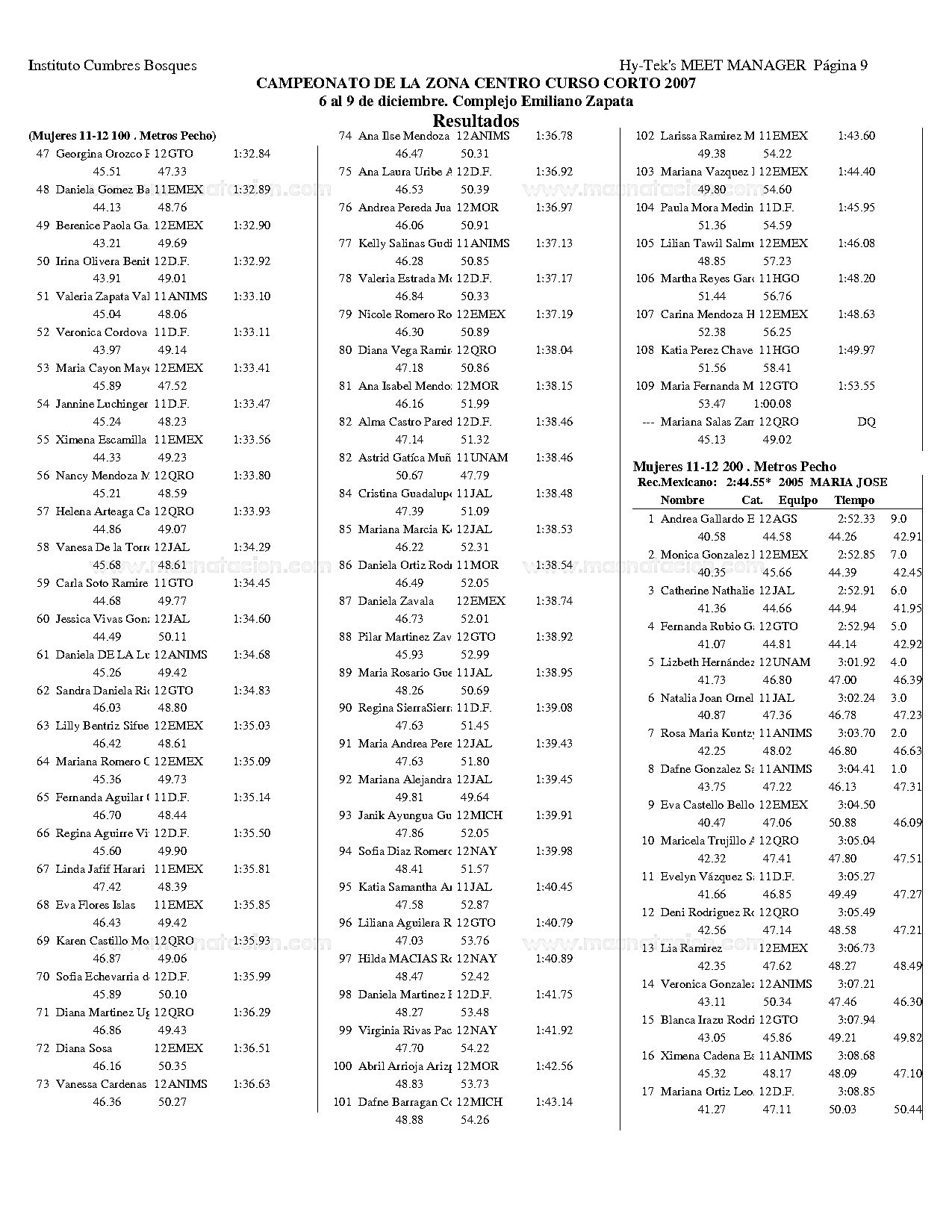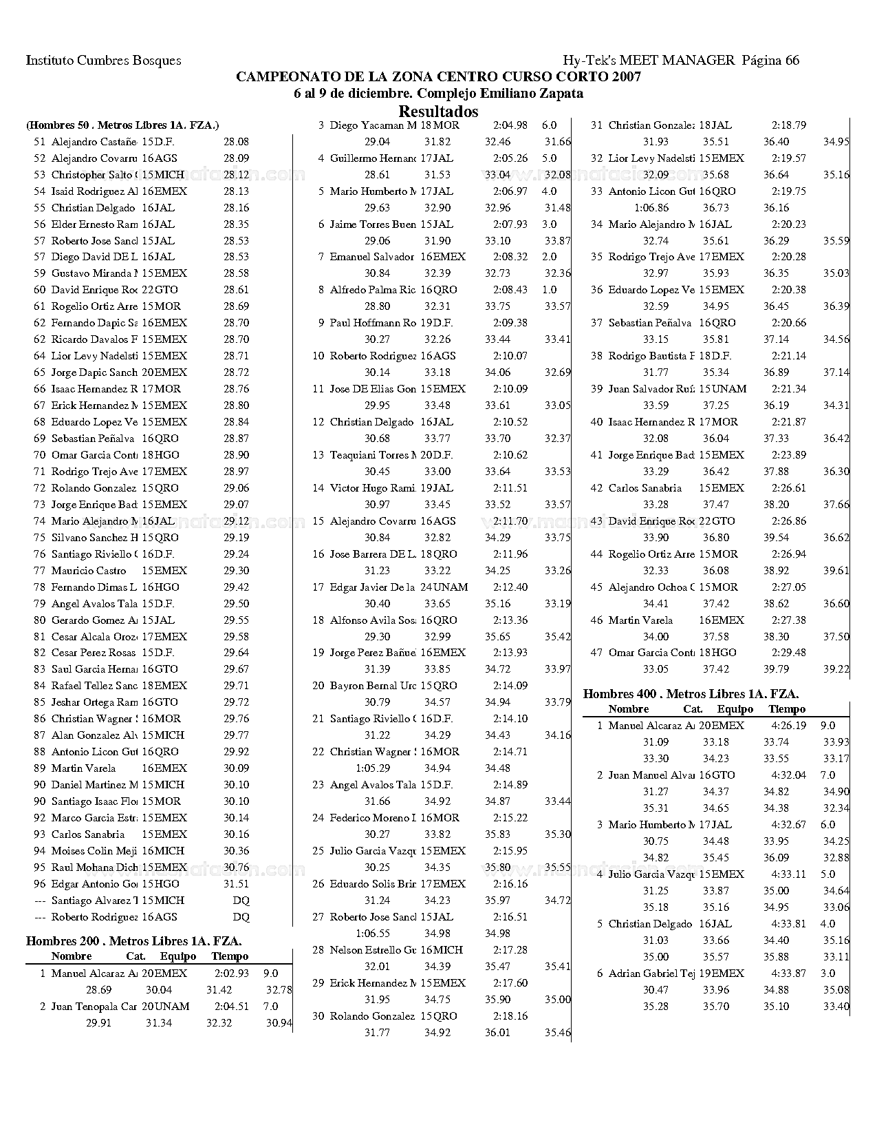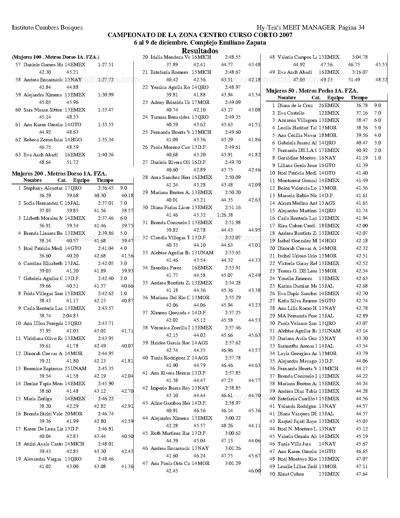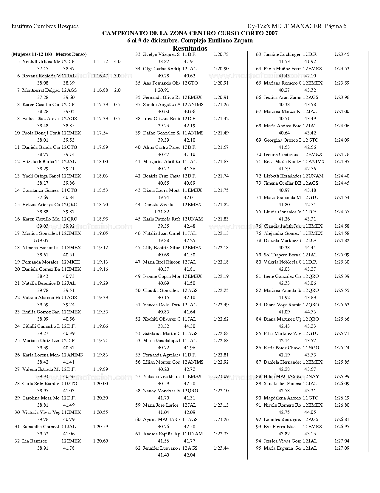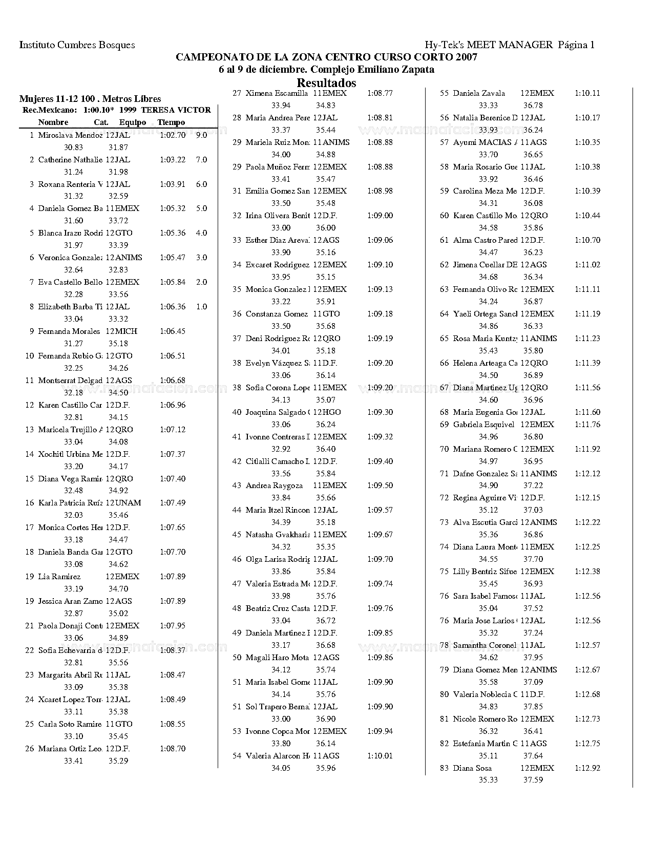 Campeonato de la Zona Centro Curso Corto 2007