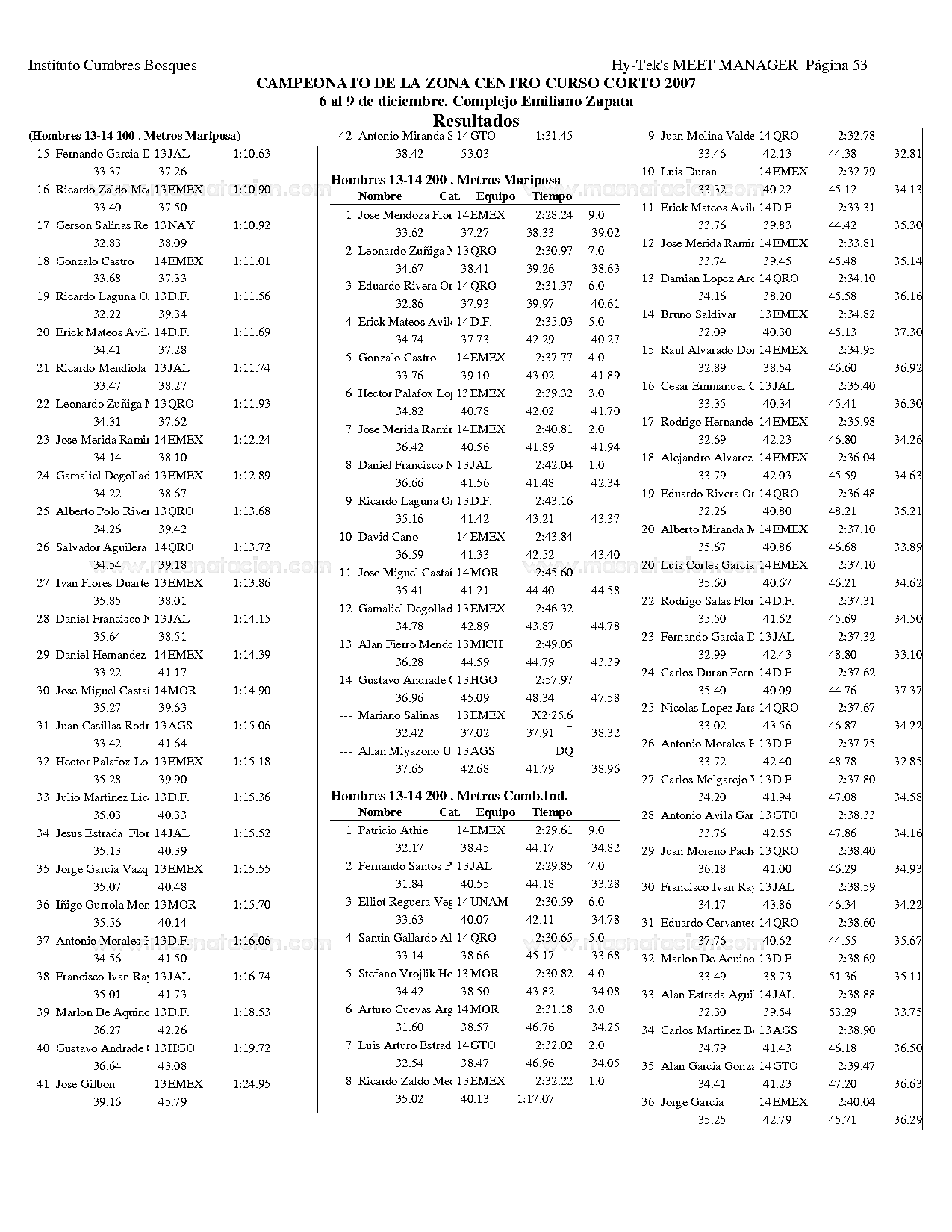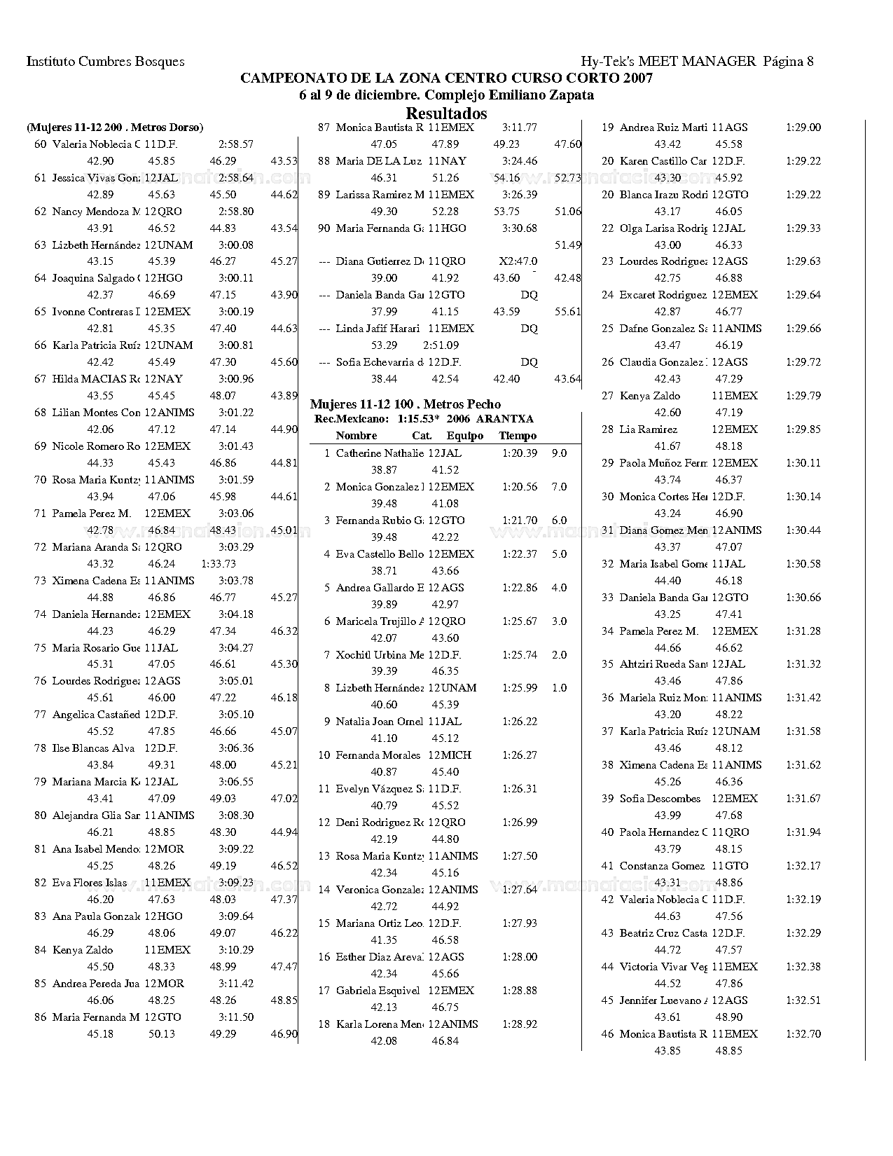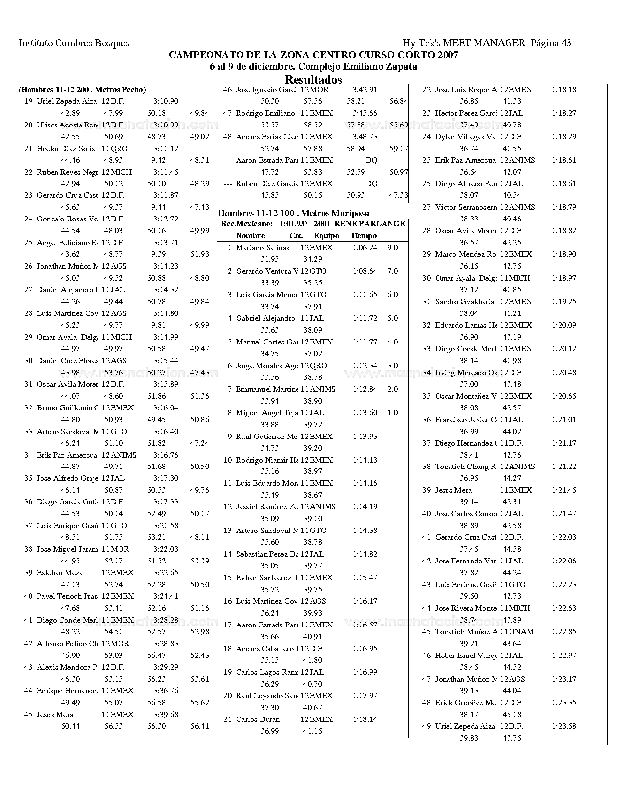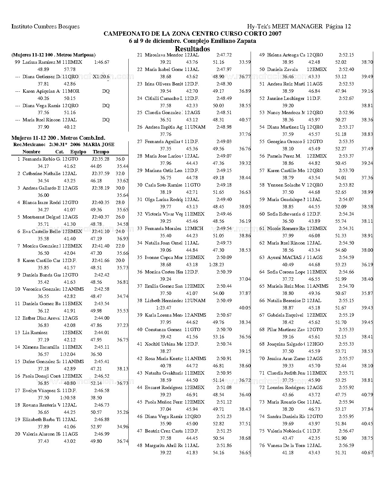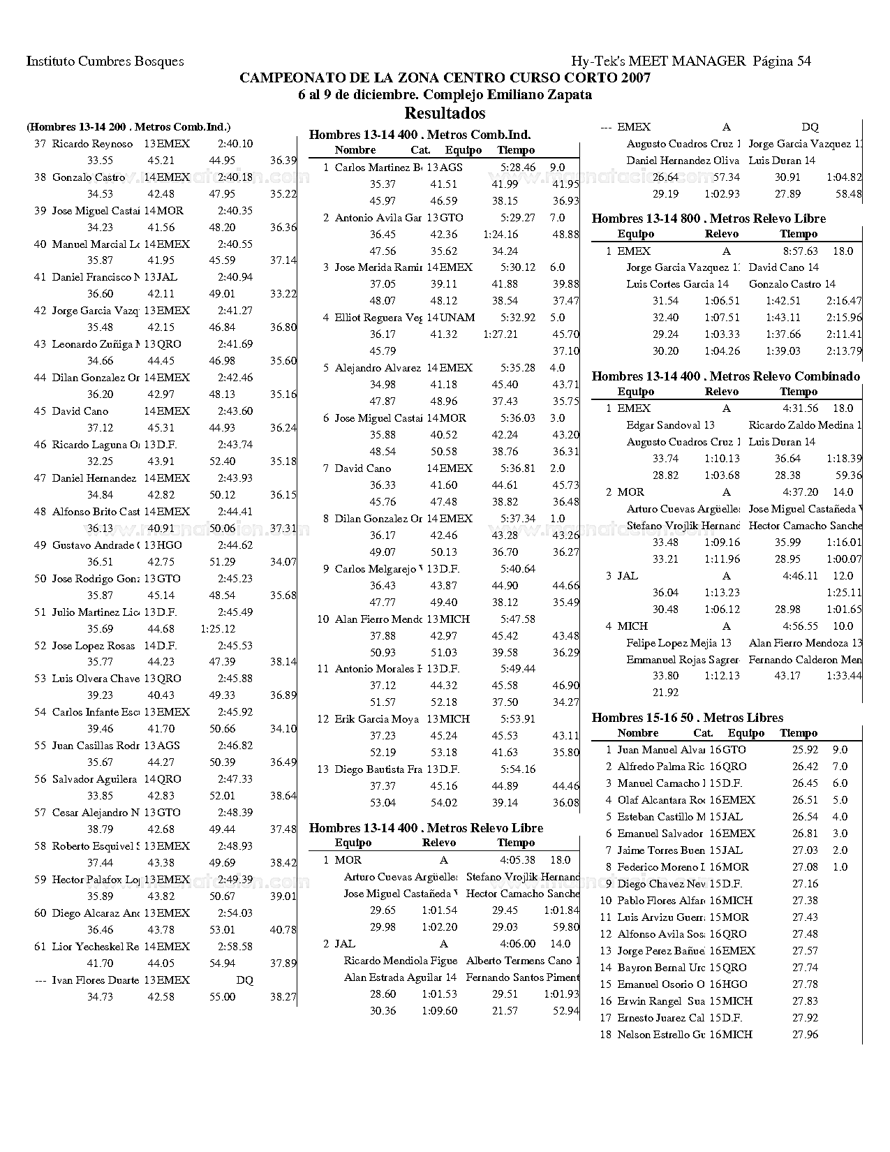 Campeonato de la Zona Centro Curso Corto 2007