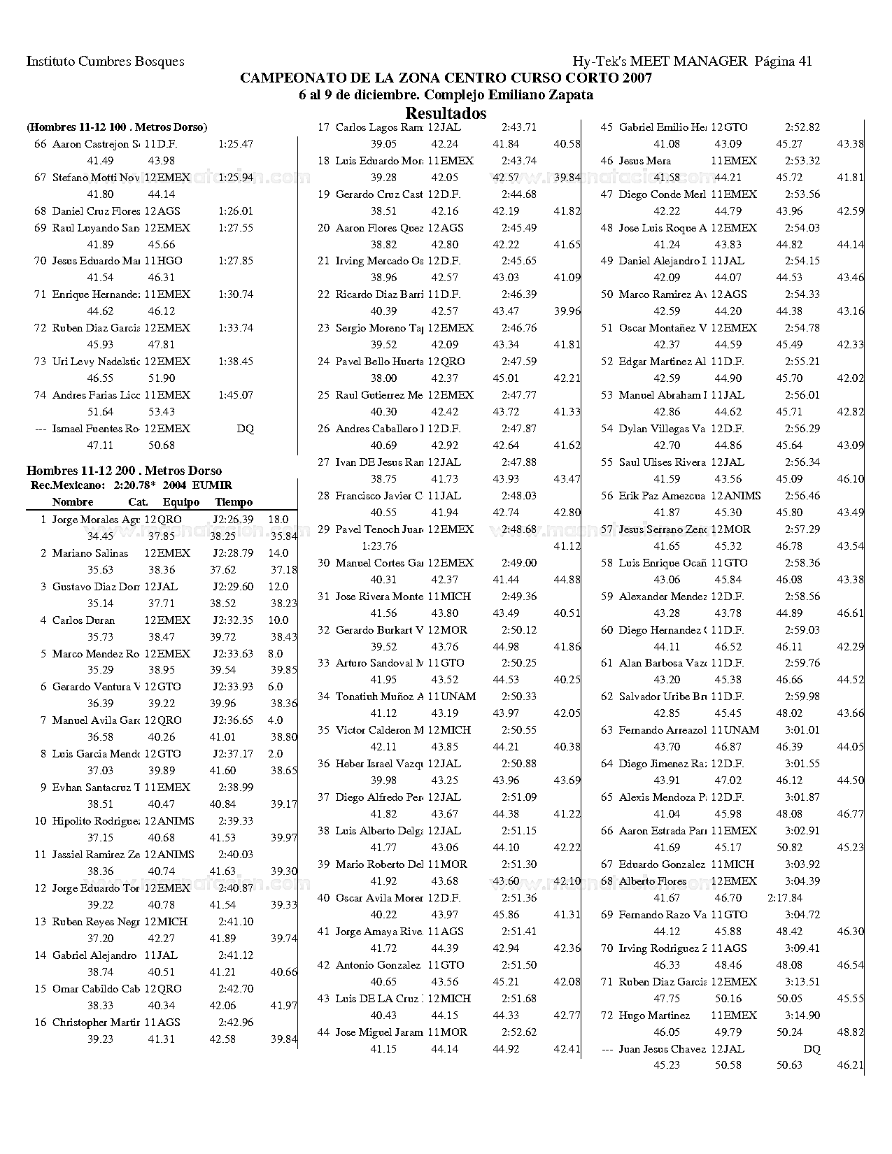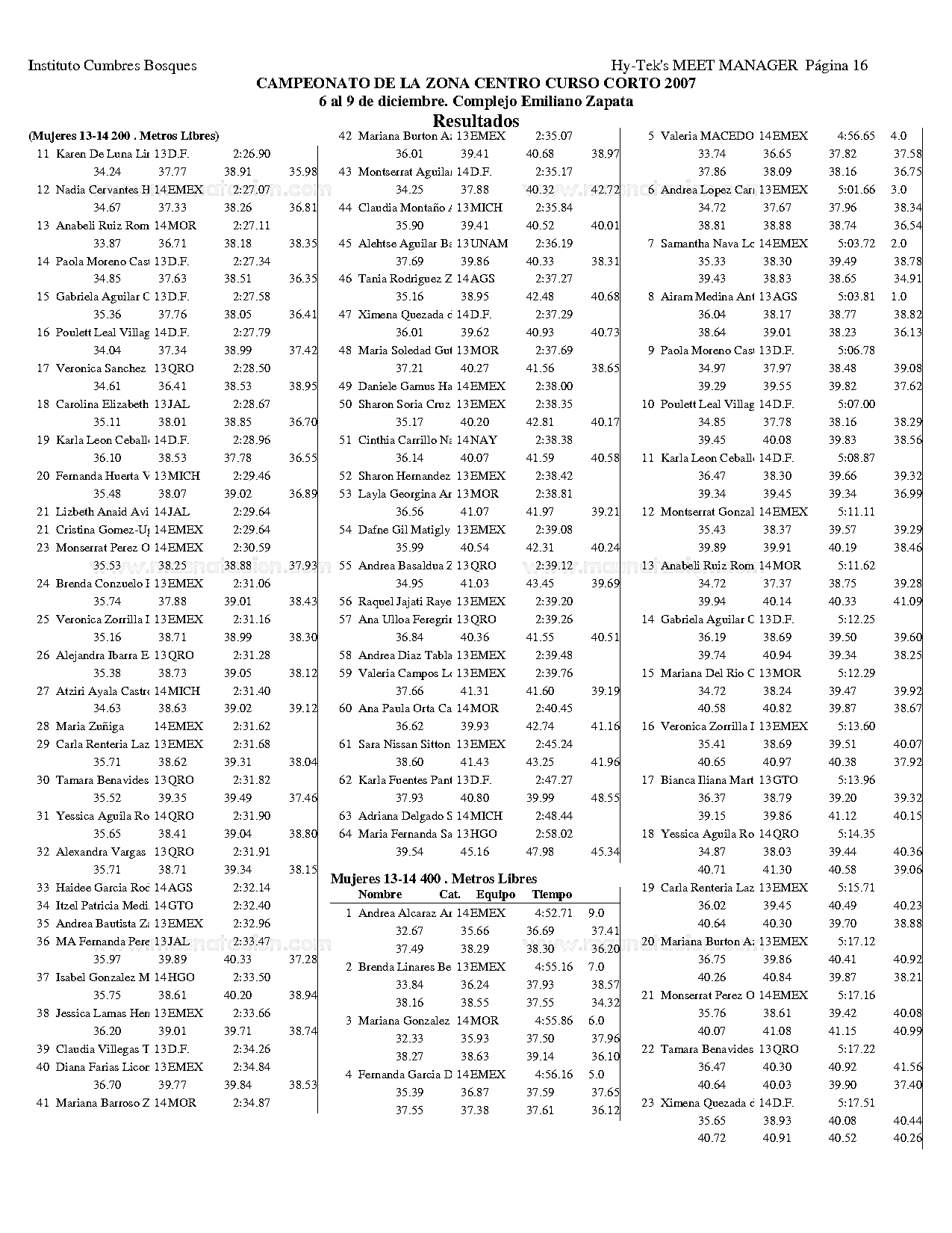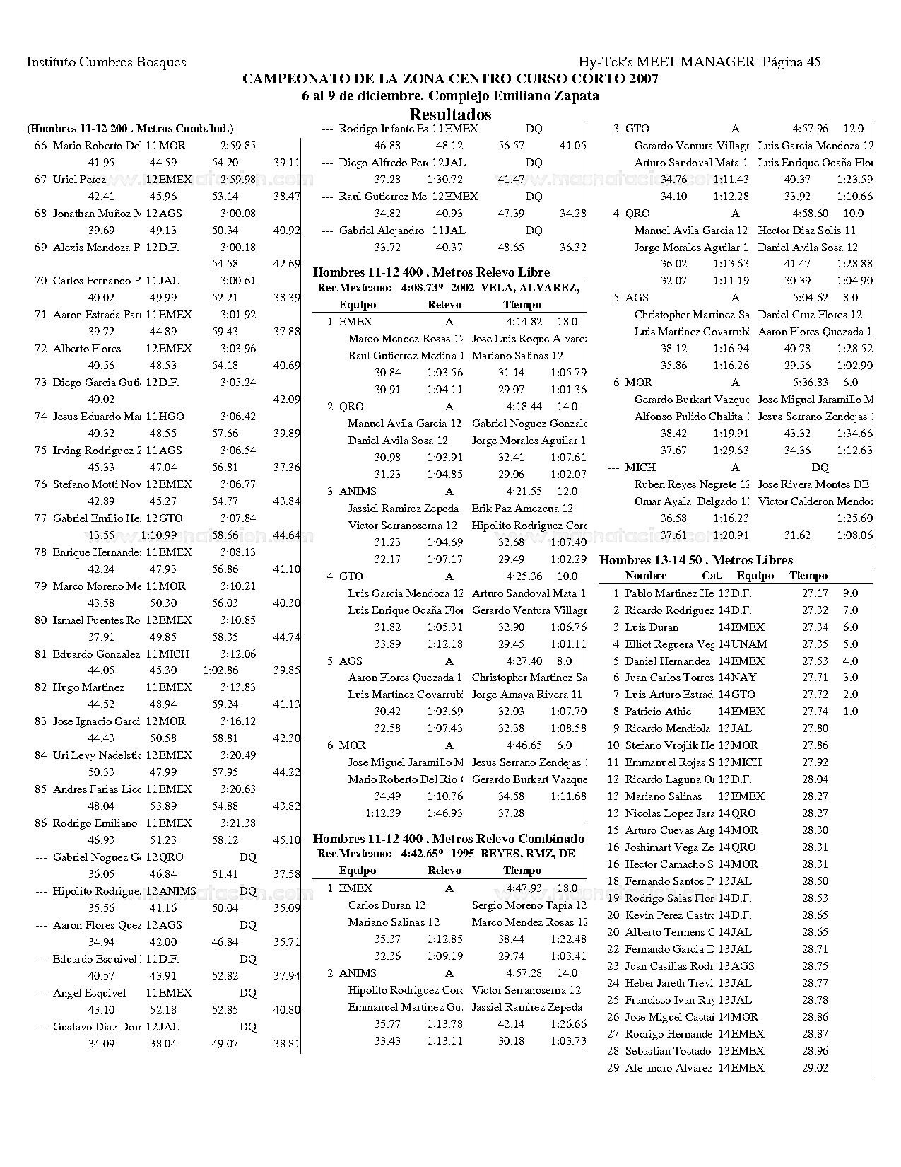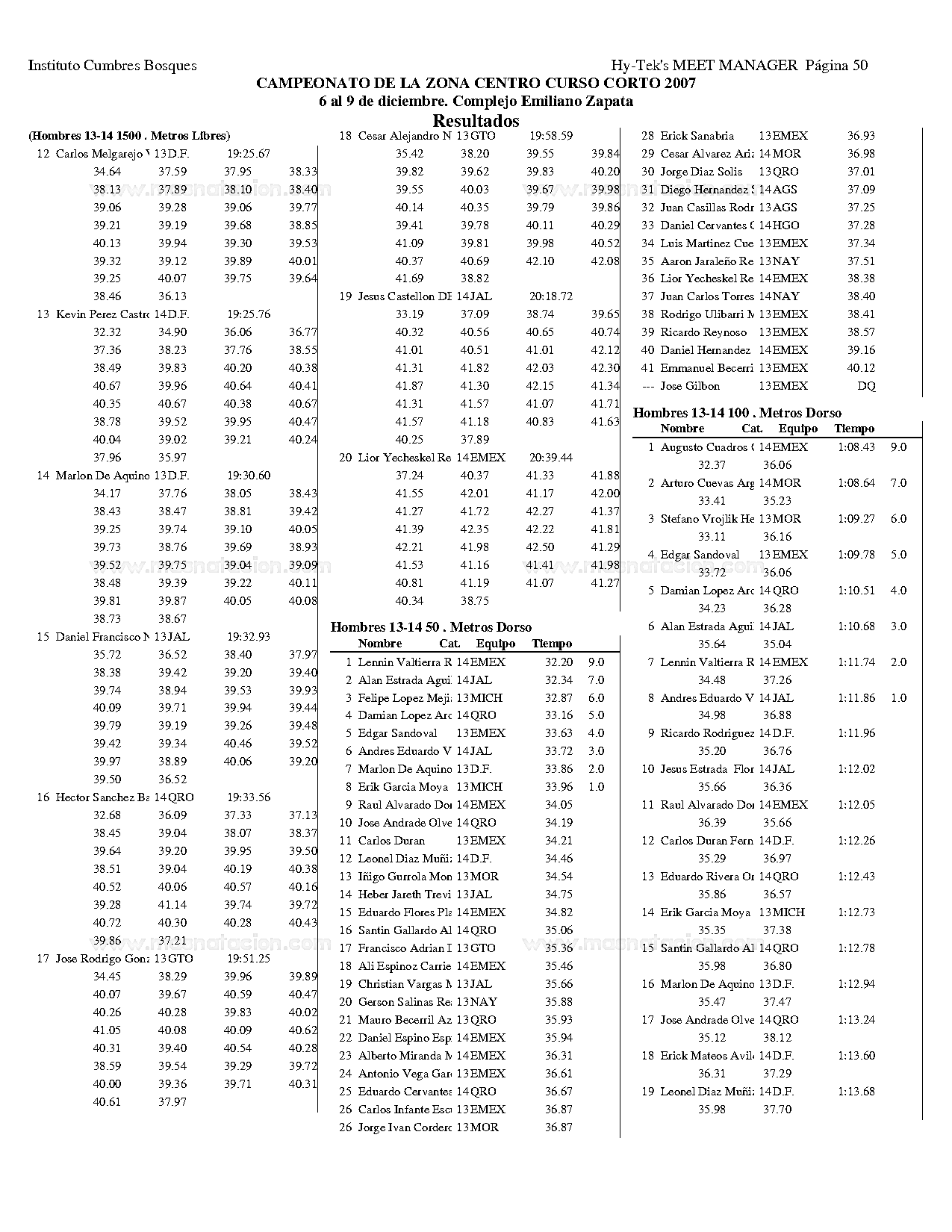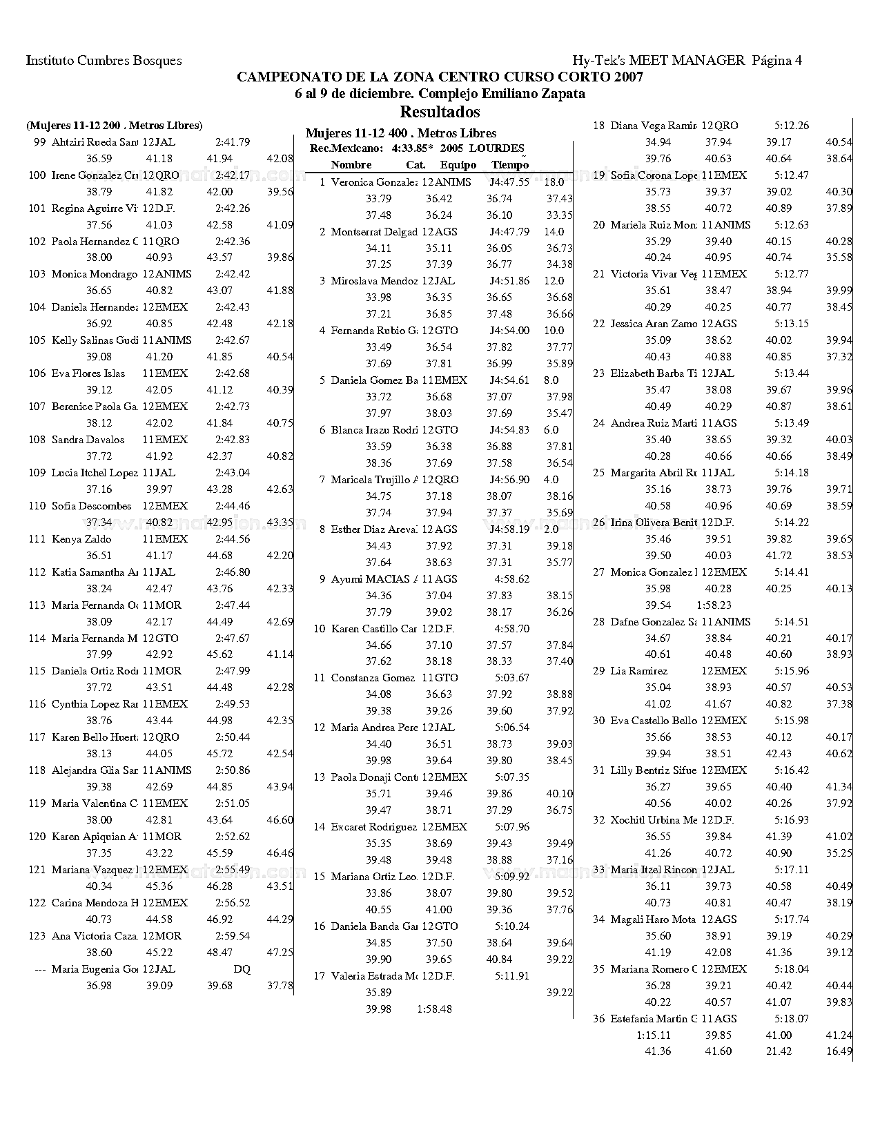 Campeonato de la Zona Centro Curso Corto 2007