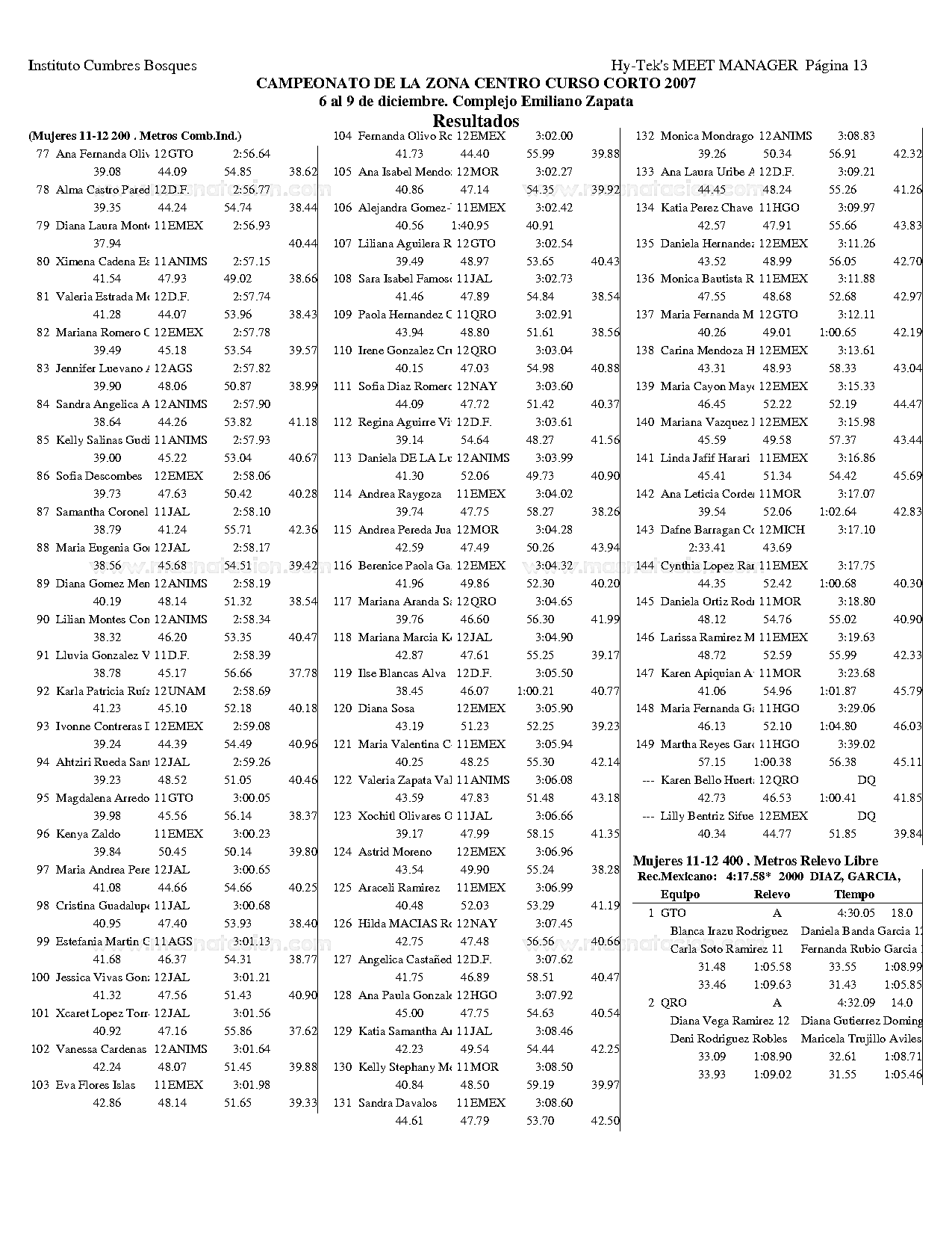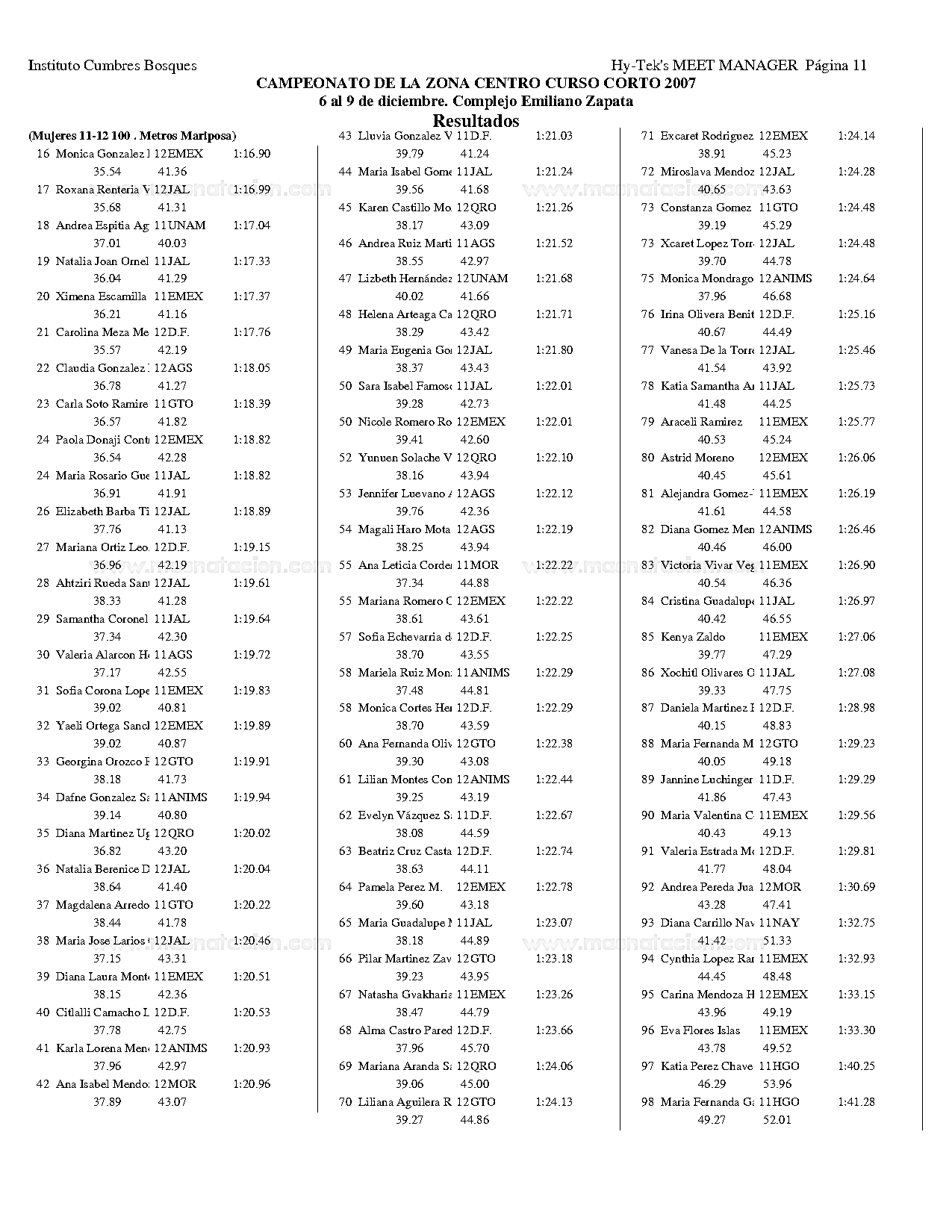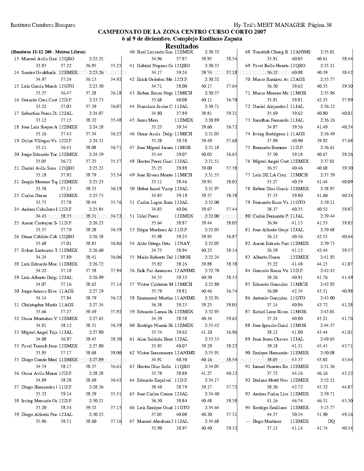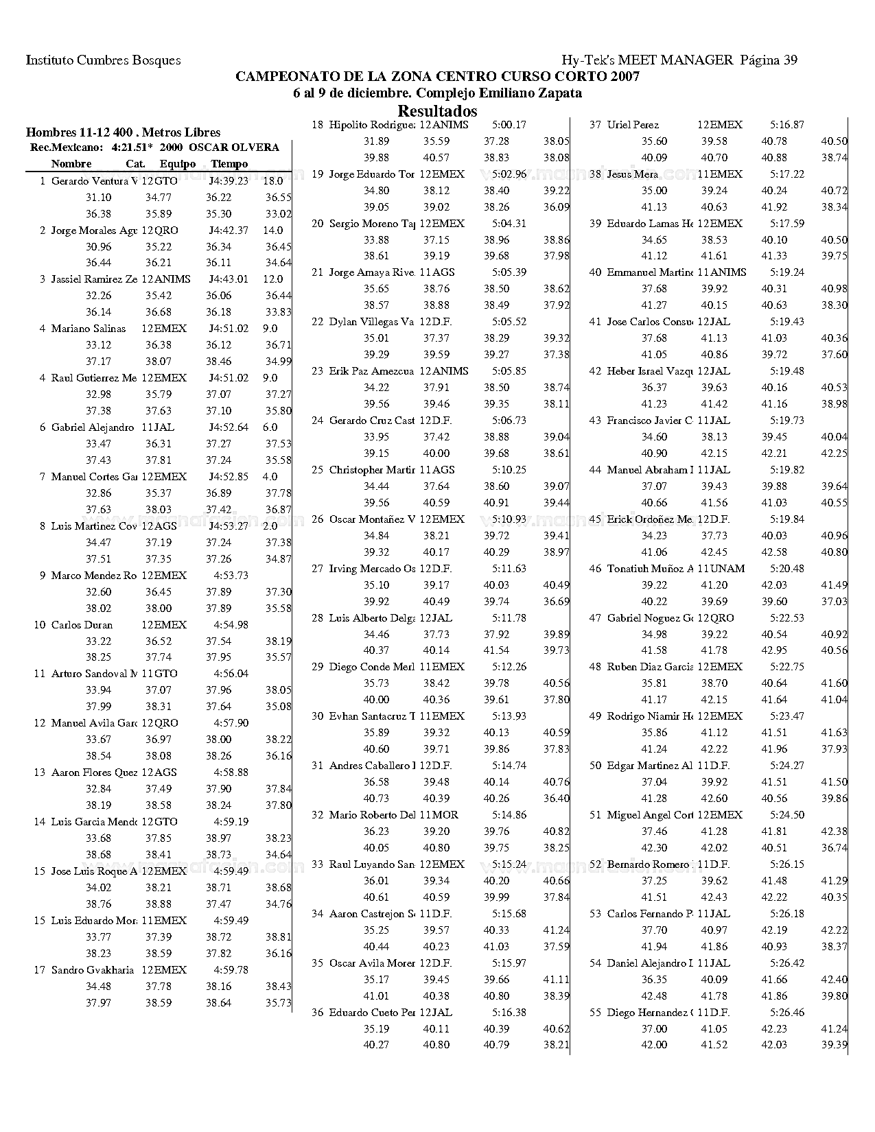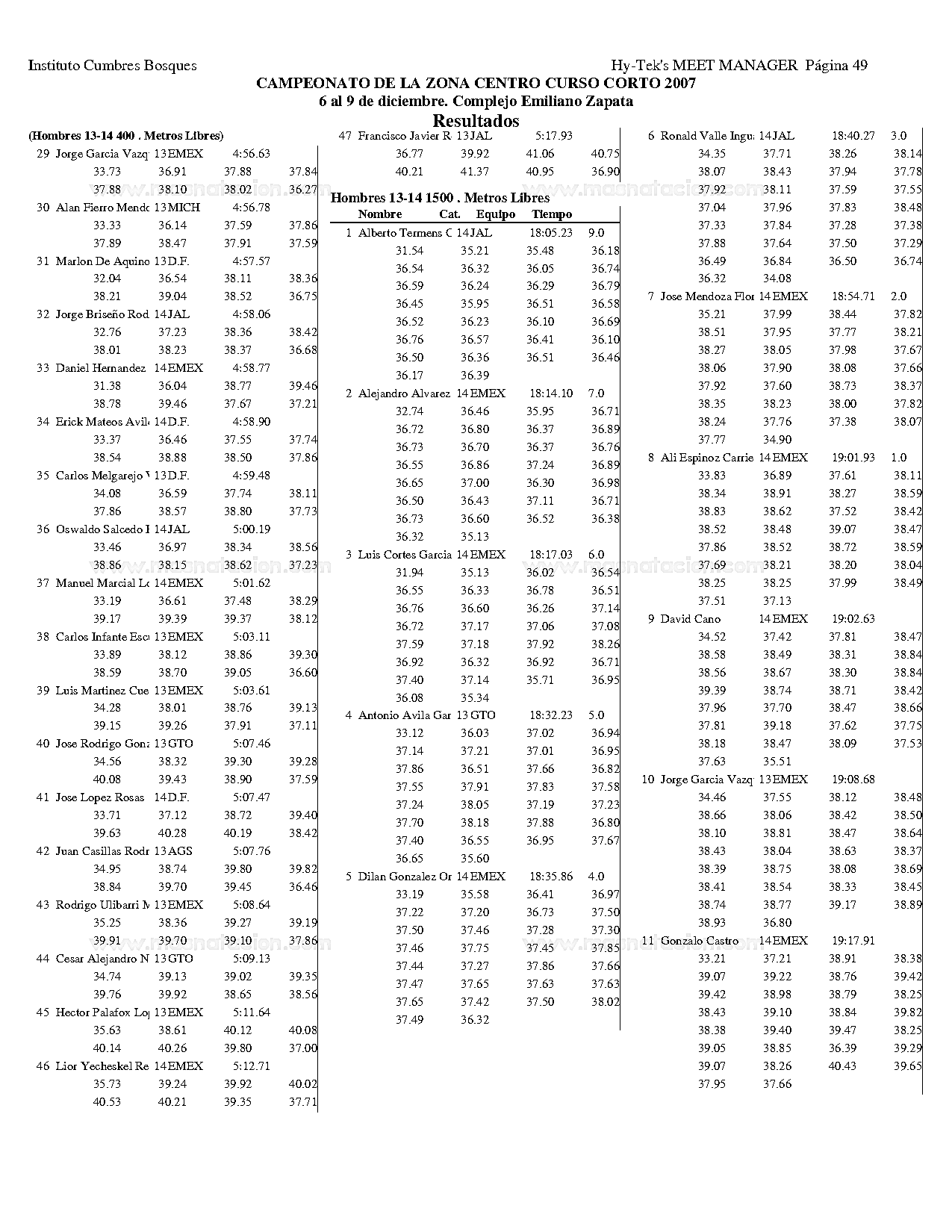 Campeonato de la Zona Centro Curso Corto 2007