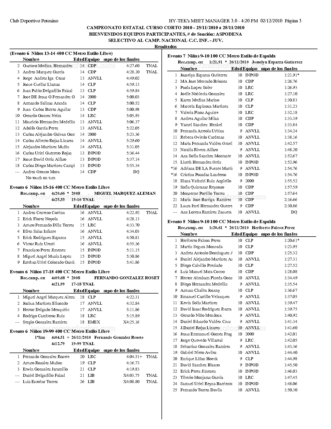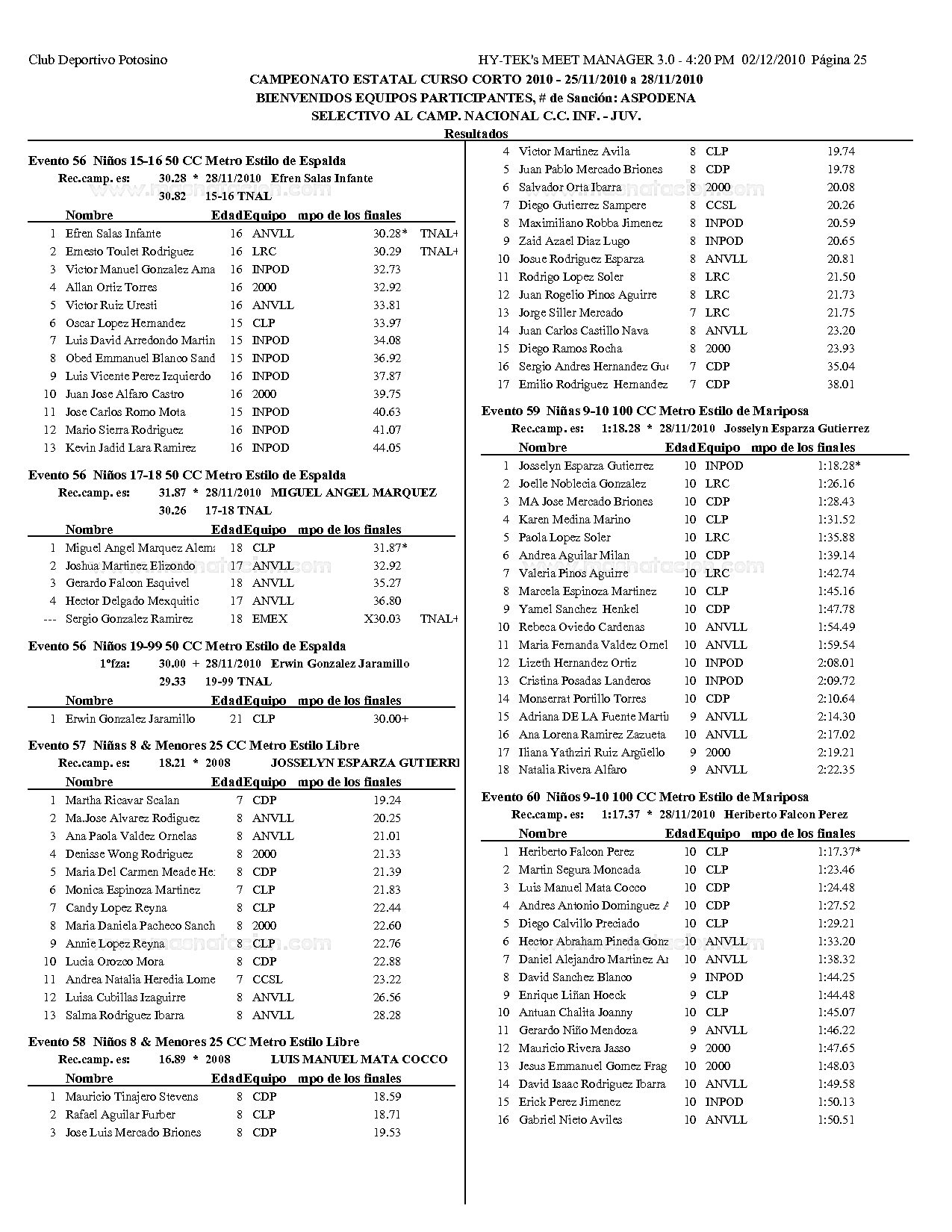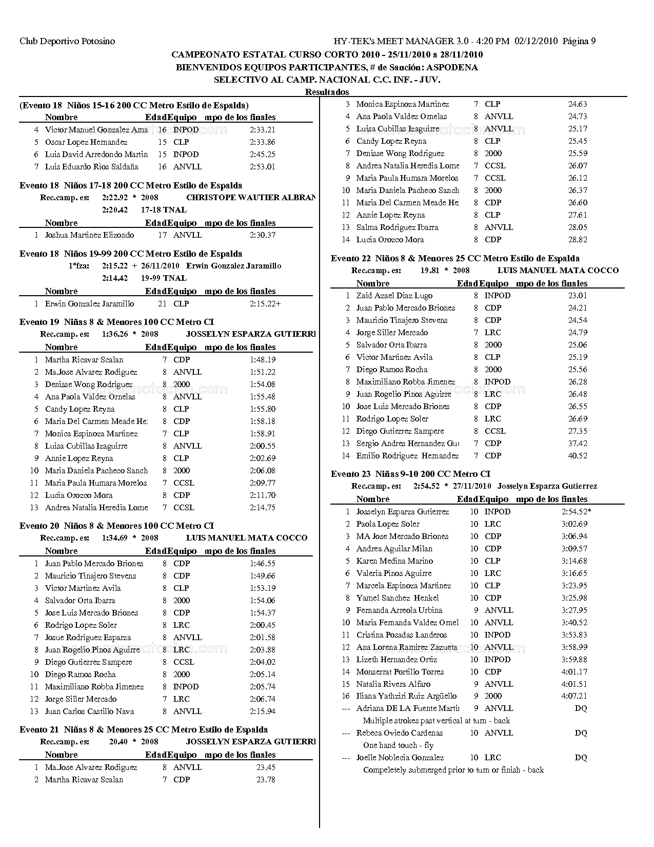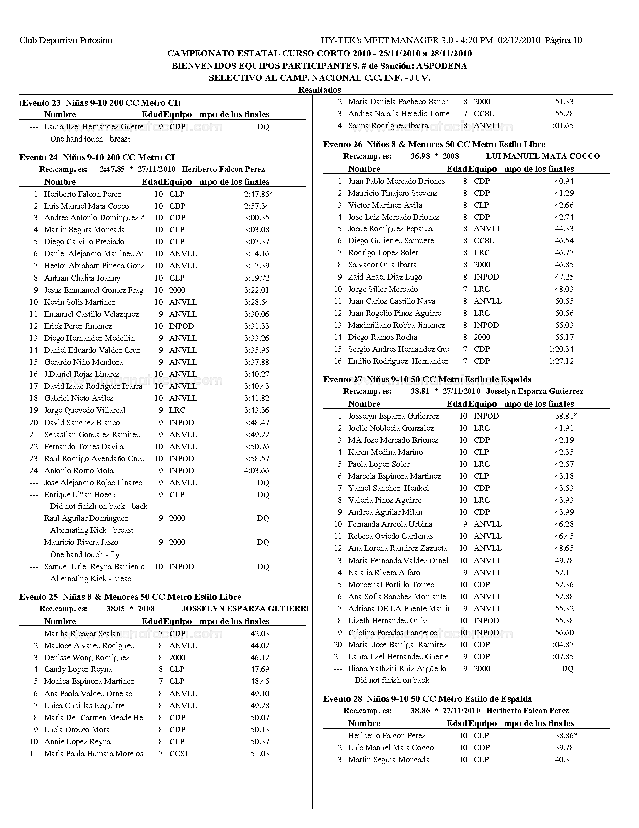 Campeonato Estatal San Luis Potosi Curso Corto 2010