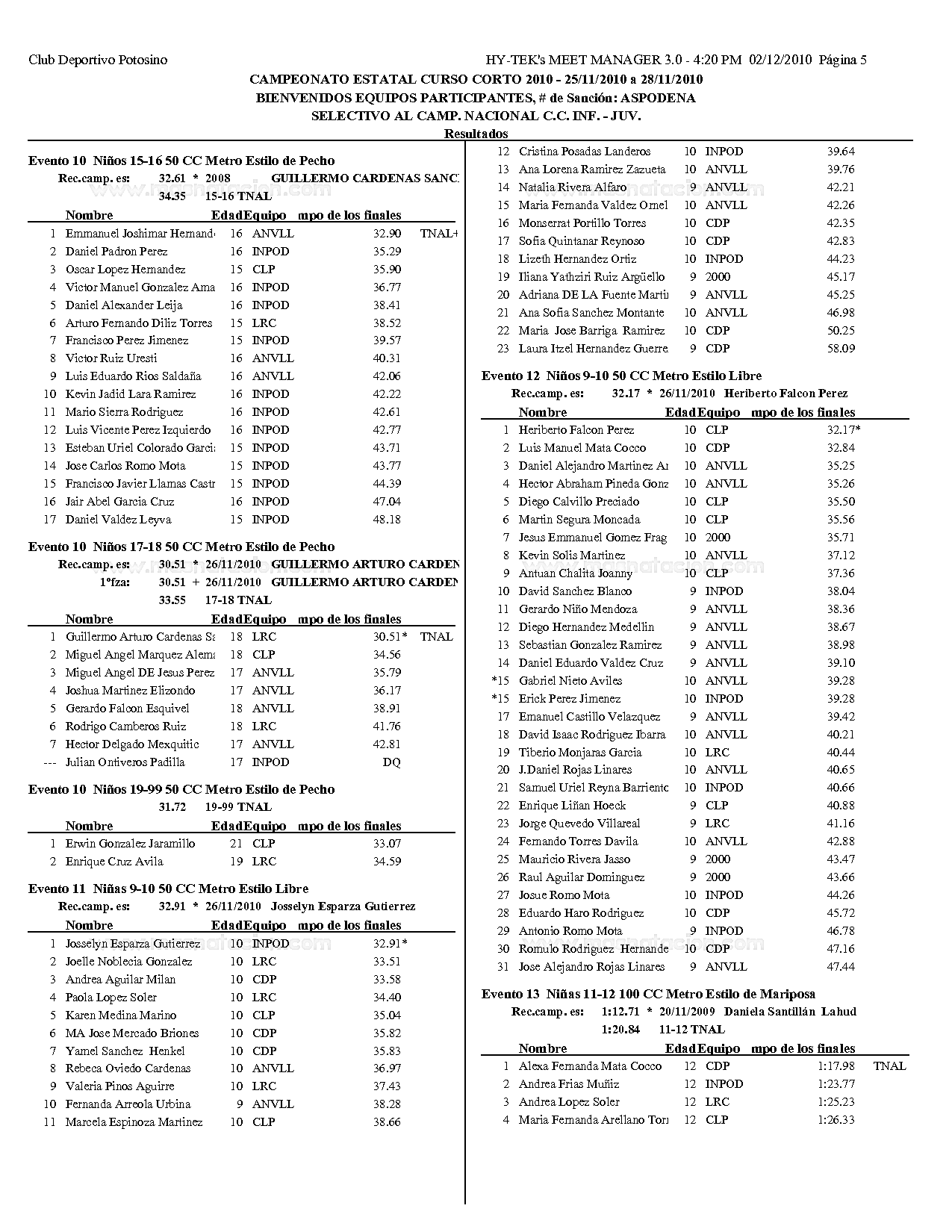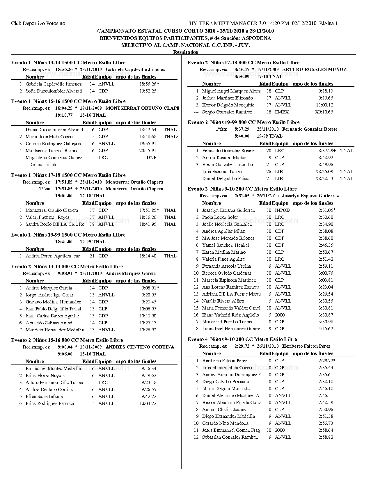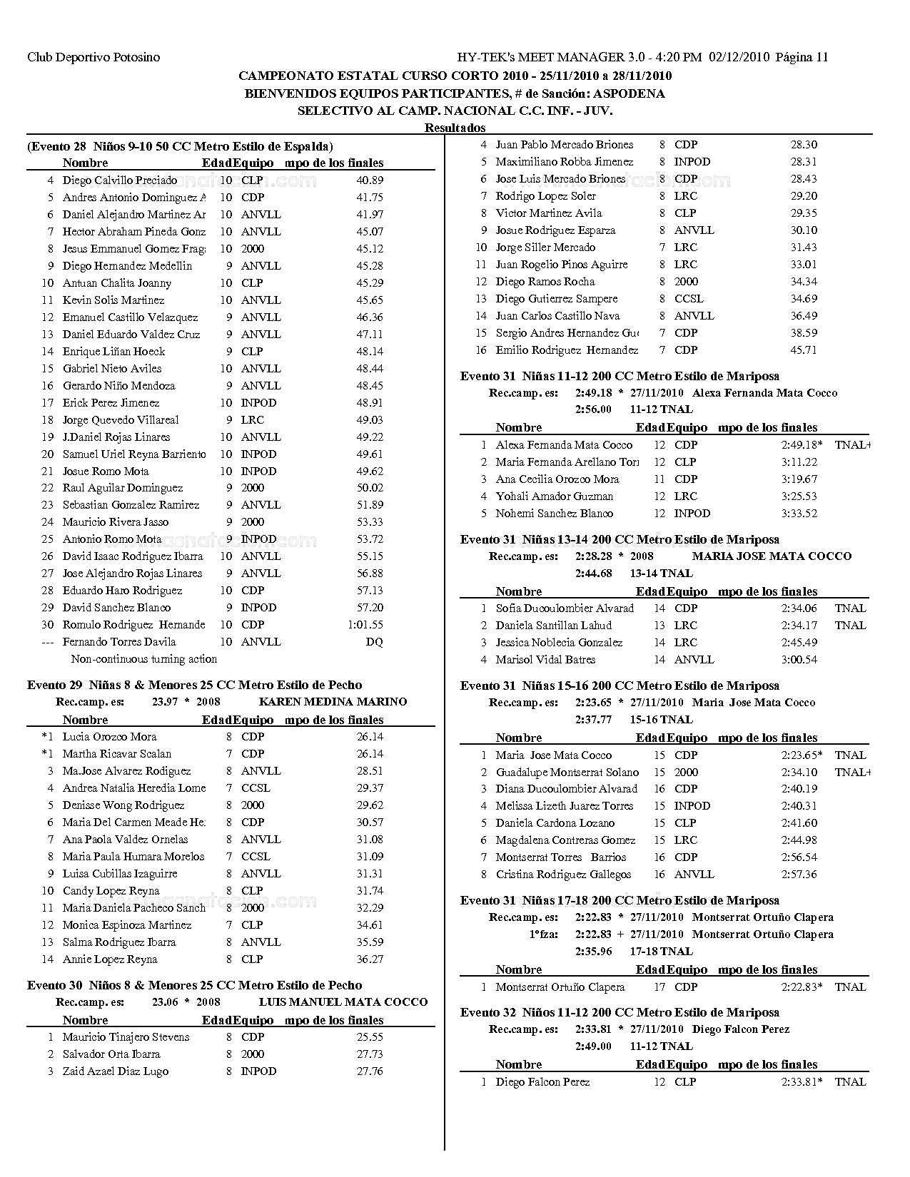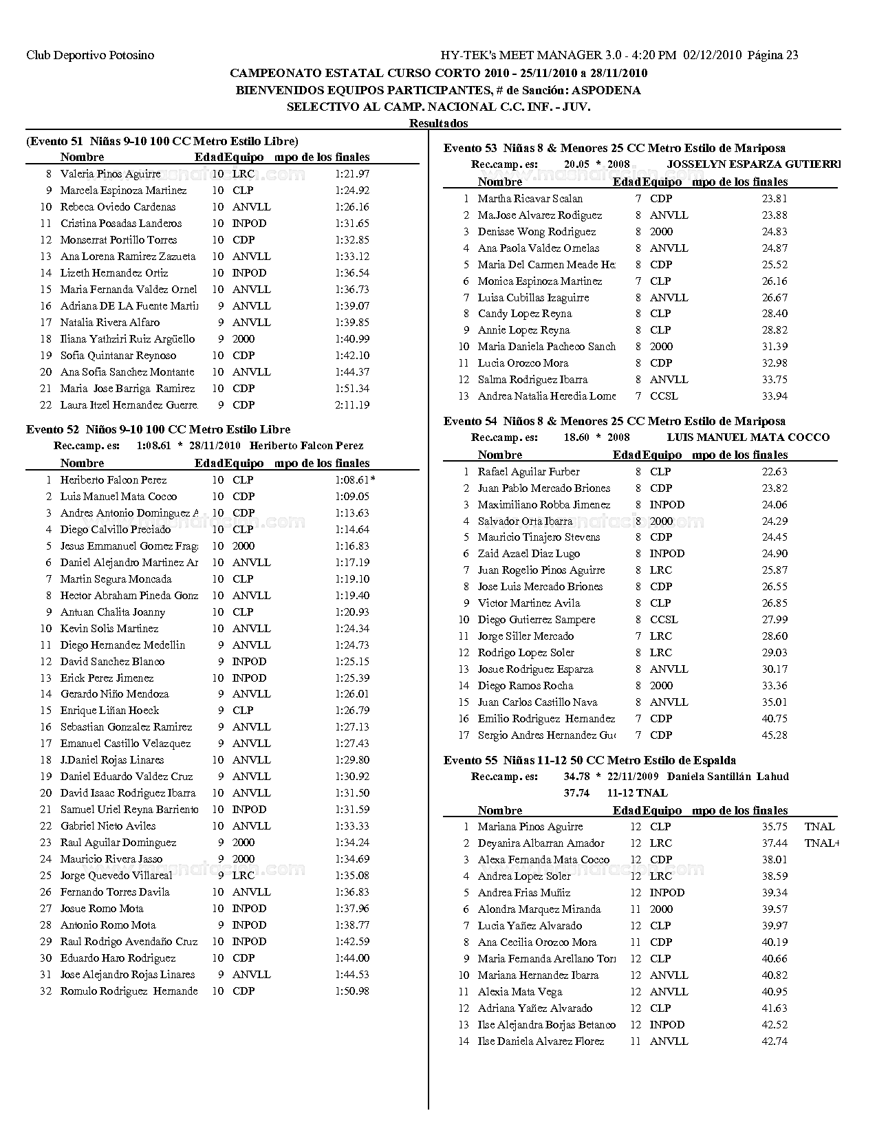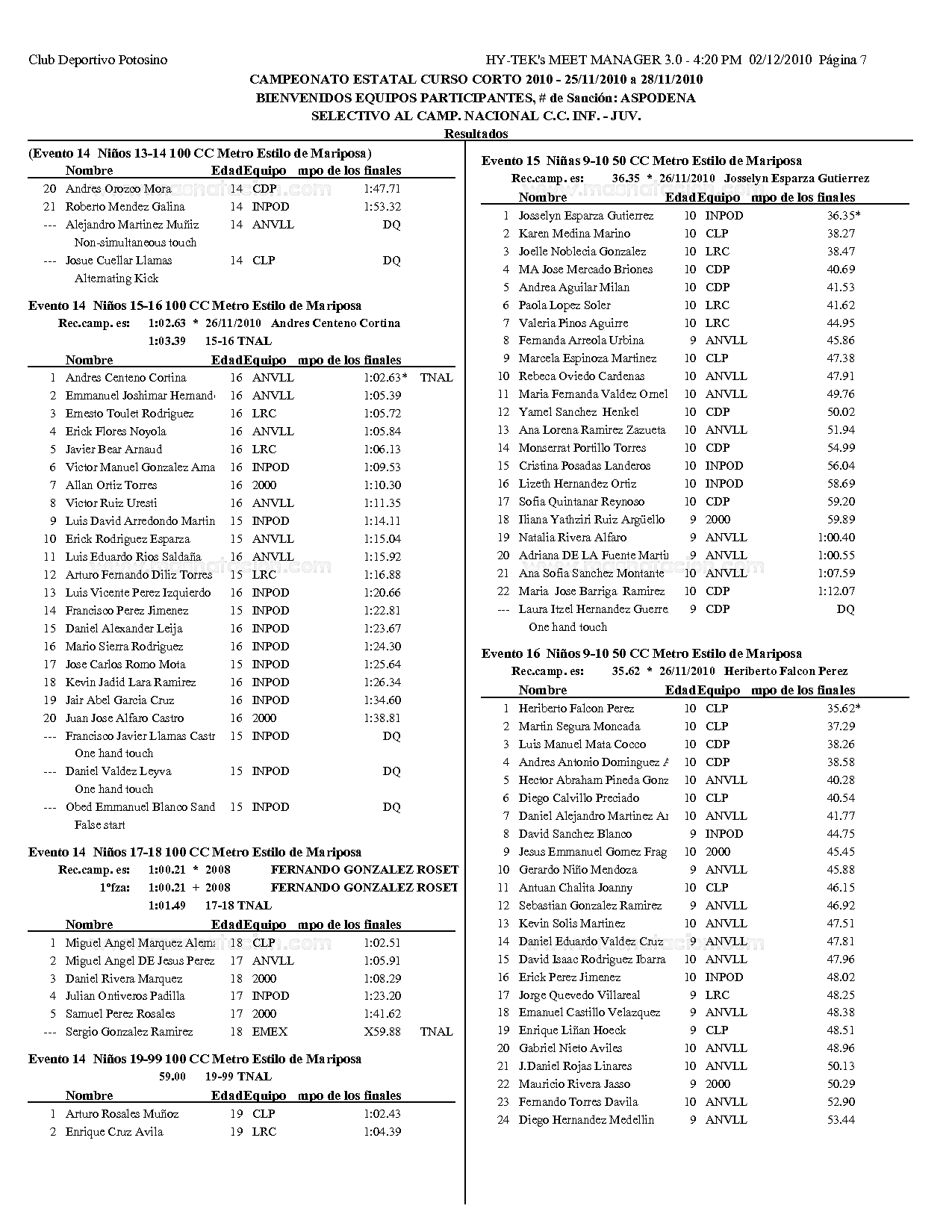 Campeonato Estatal San Luis Potosi Curso Corto 2010