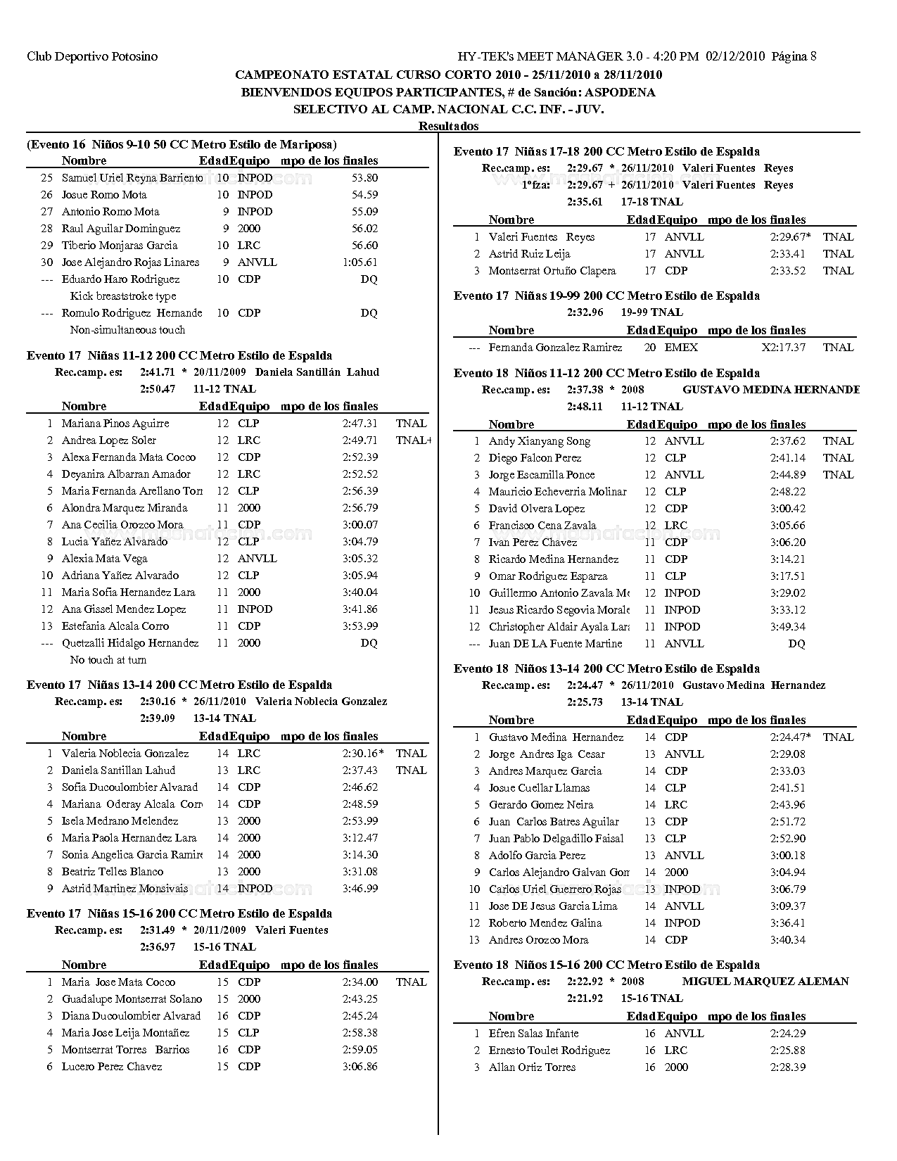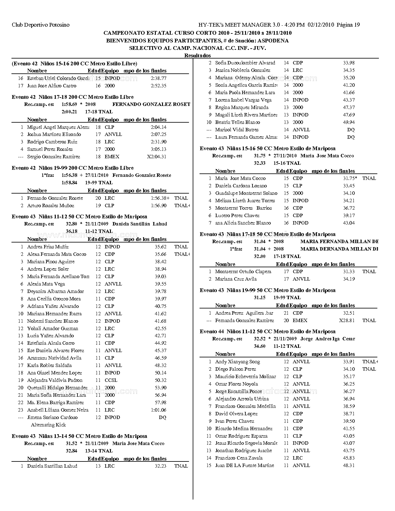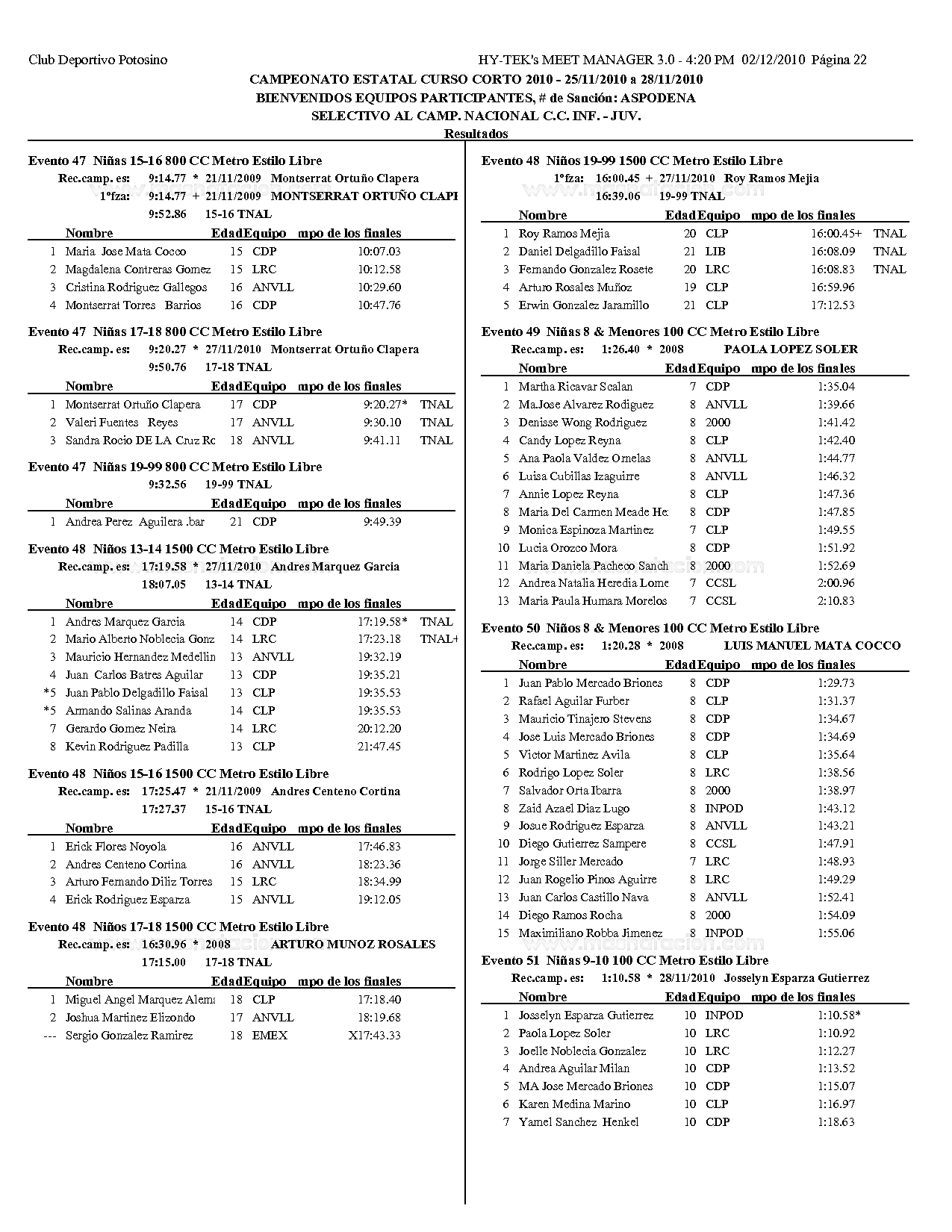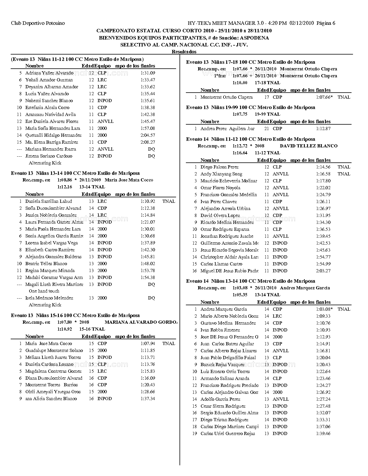 Campeonato Estatal San Luis Potosi Curso Corto 2010