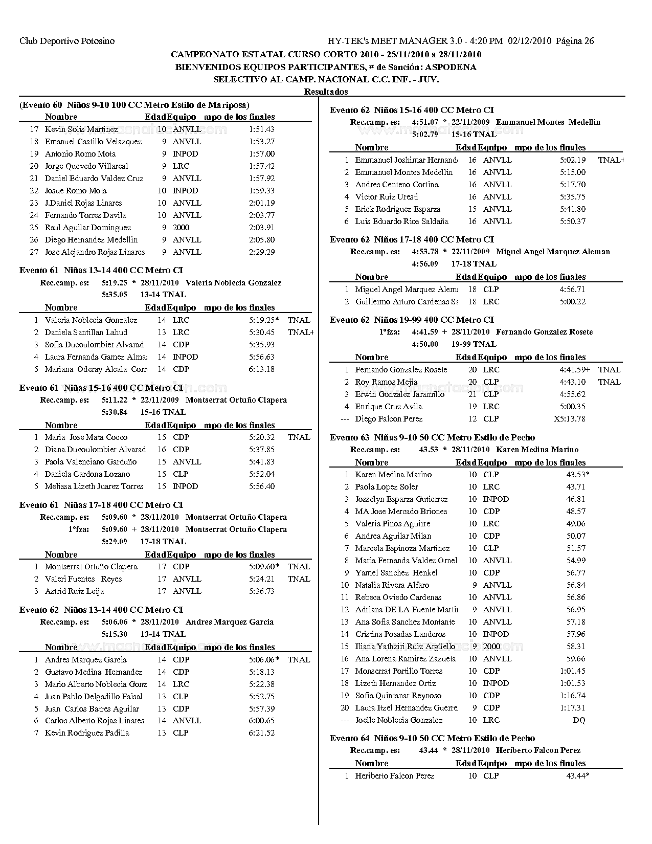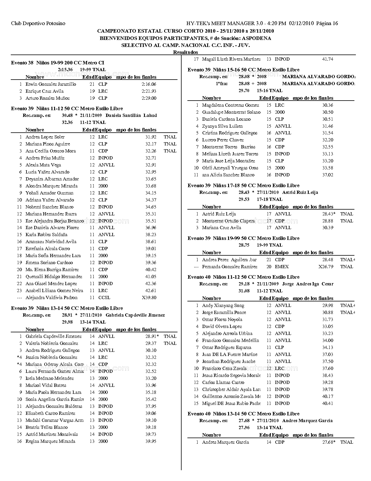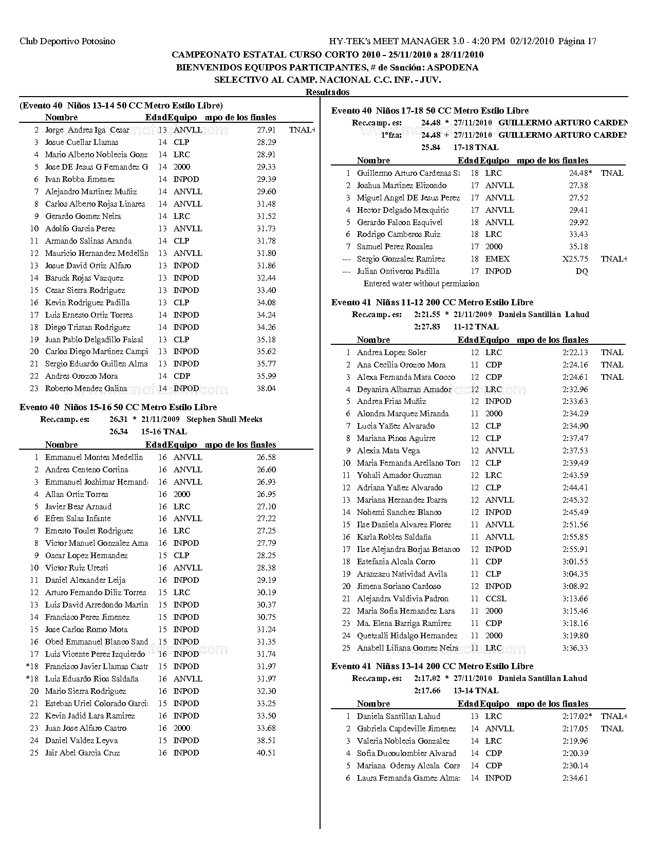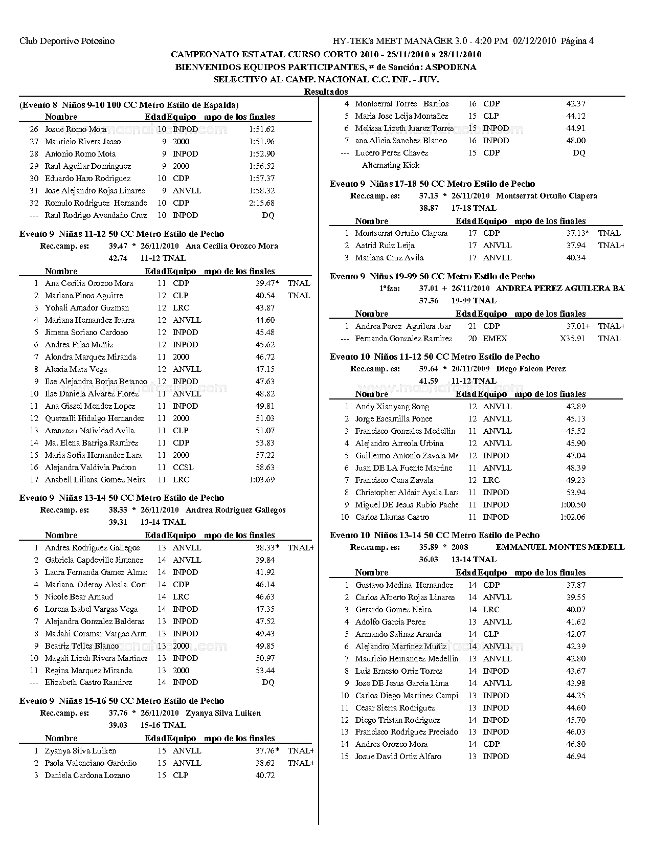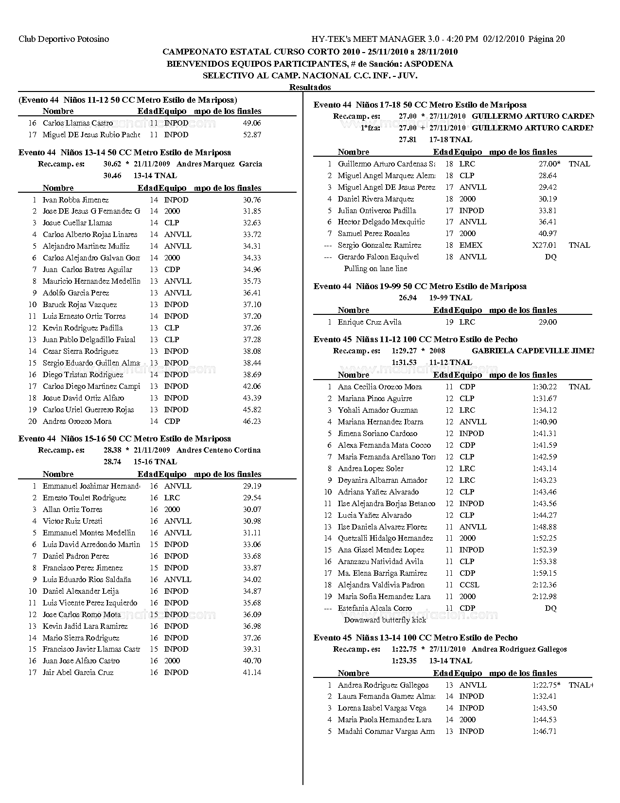 Campeonato Estatal San Luis Potosi Curso Corto 2010