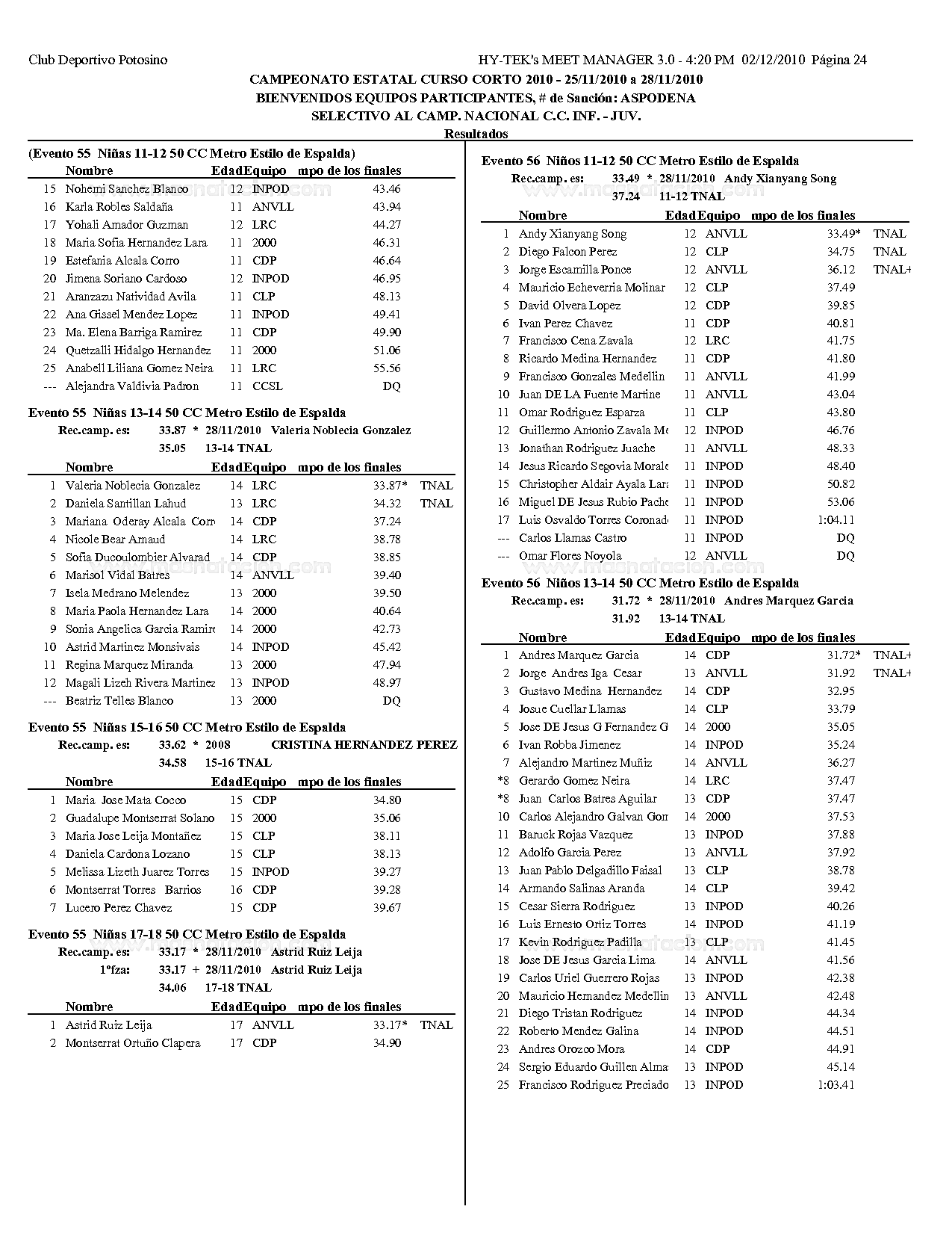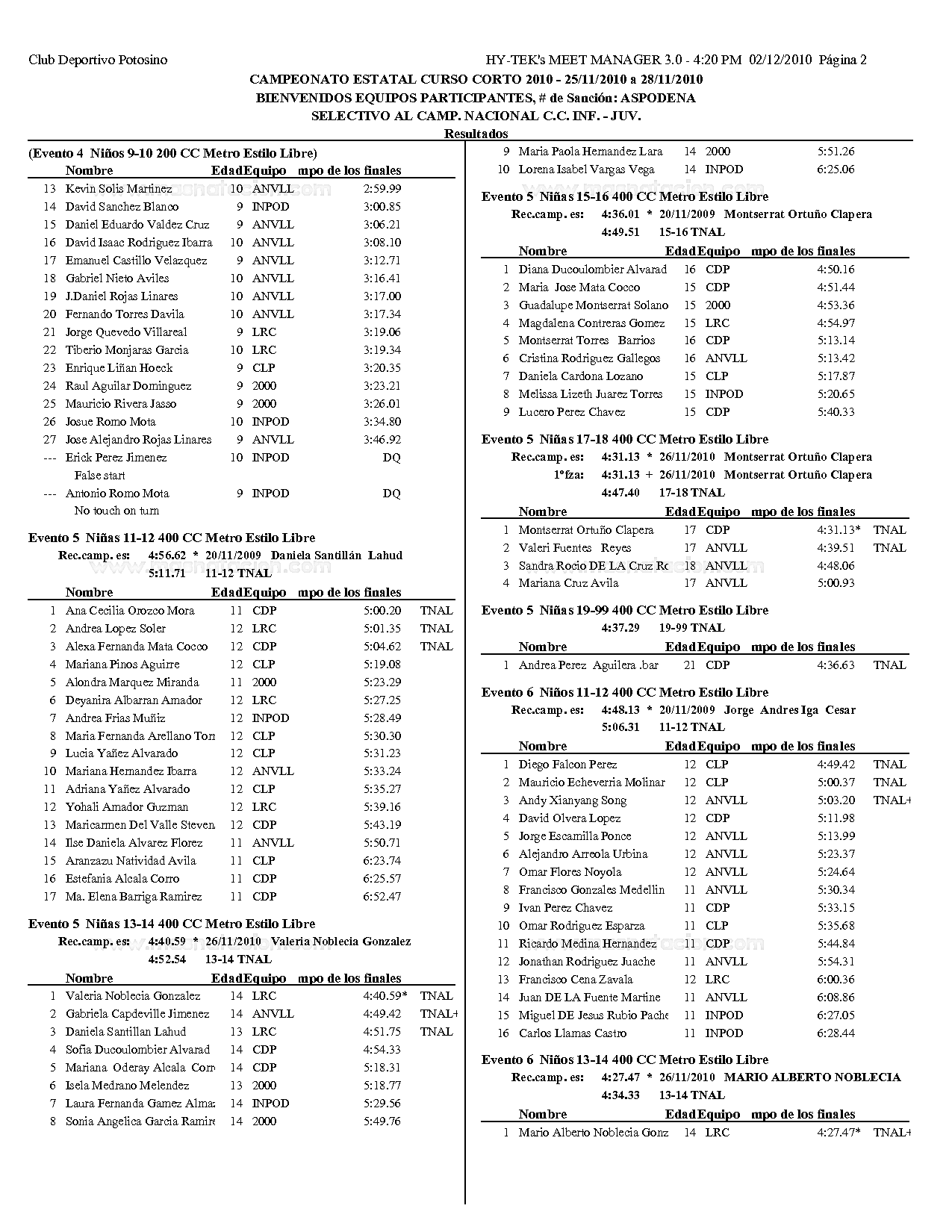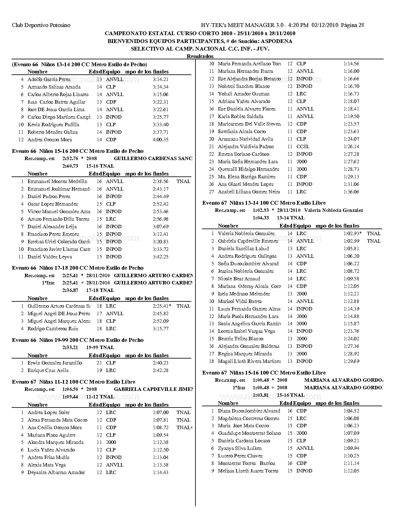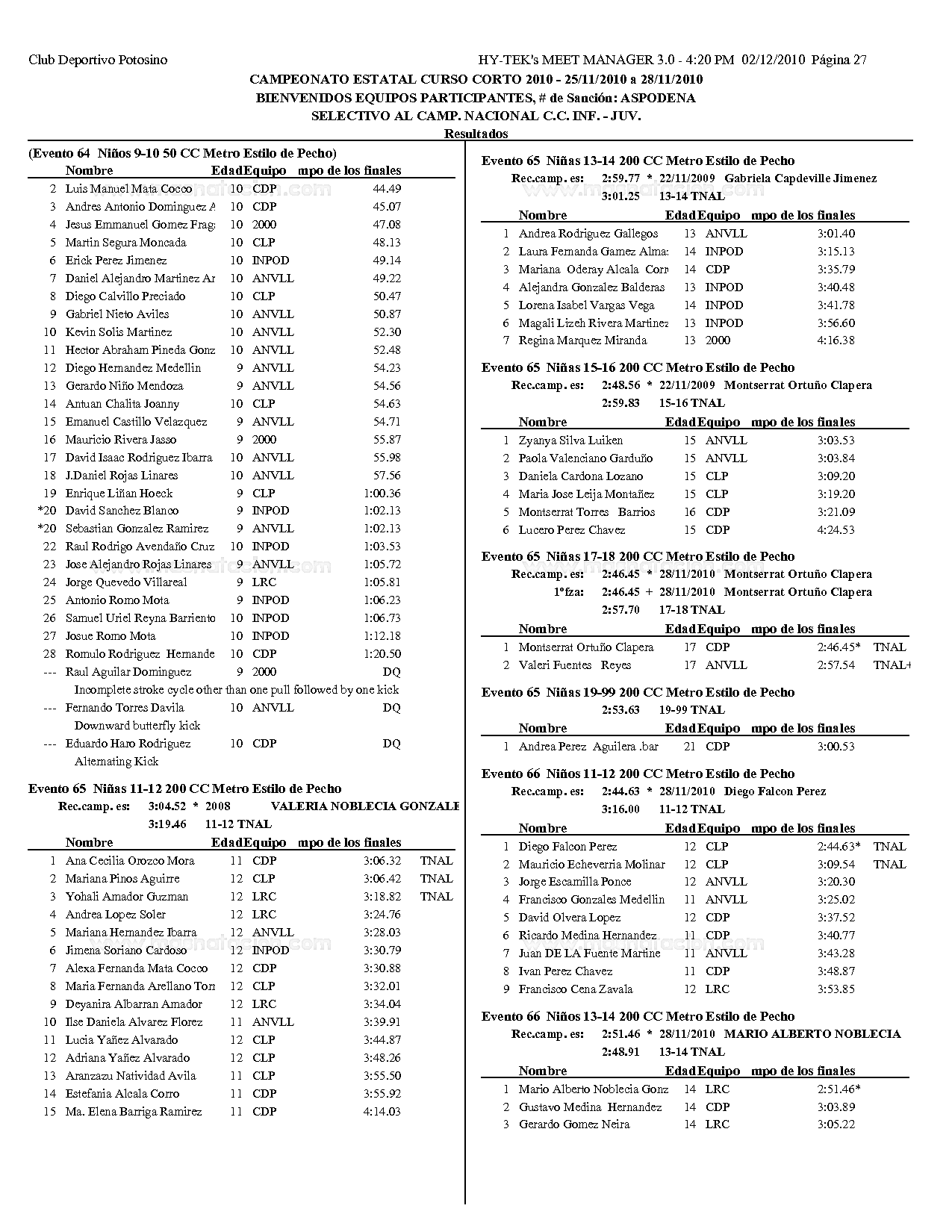 Campeonato Estatal San Luis Potosi Curso Corto 2010