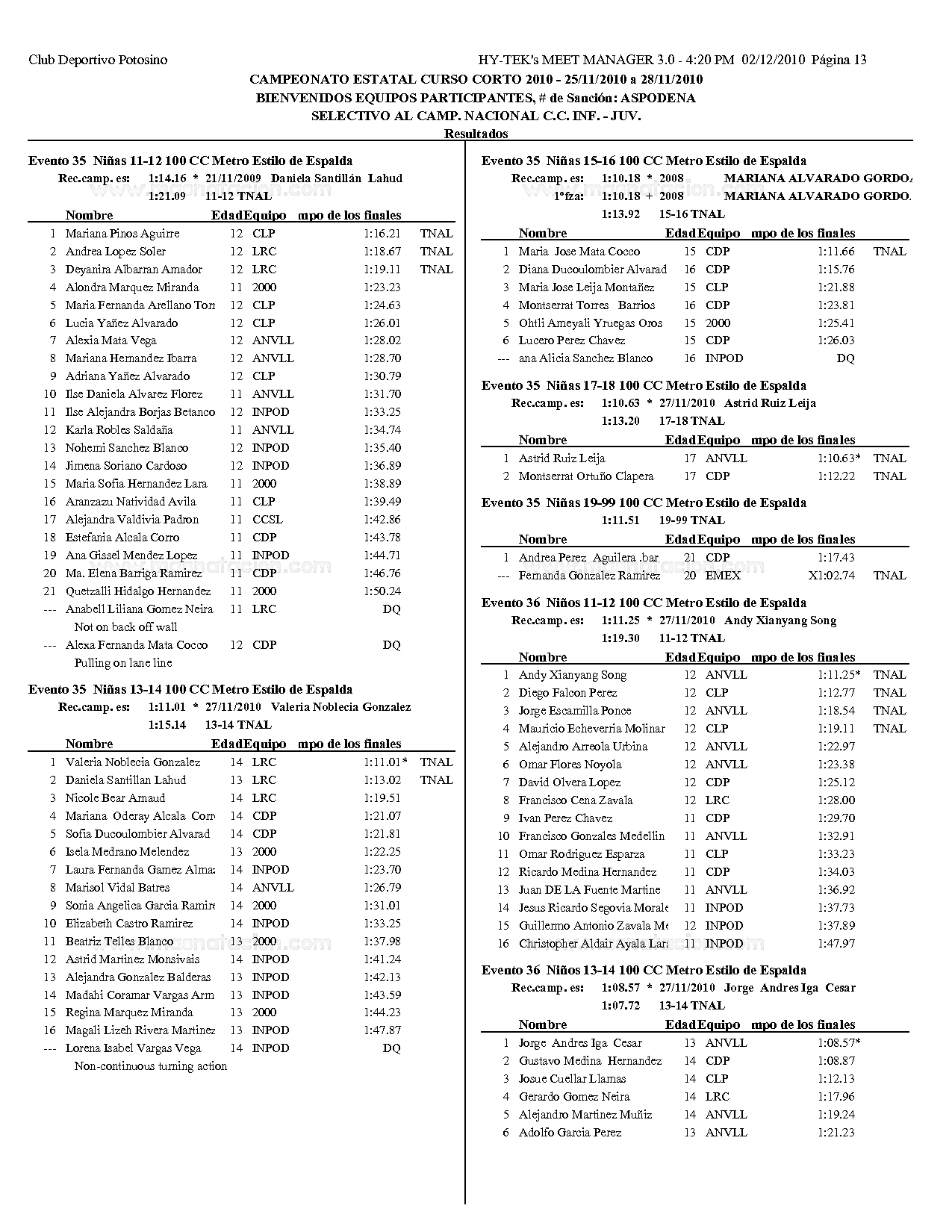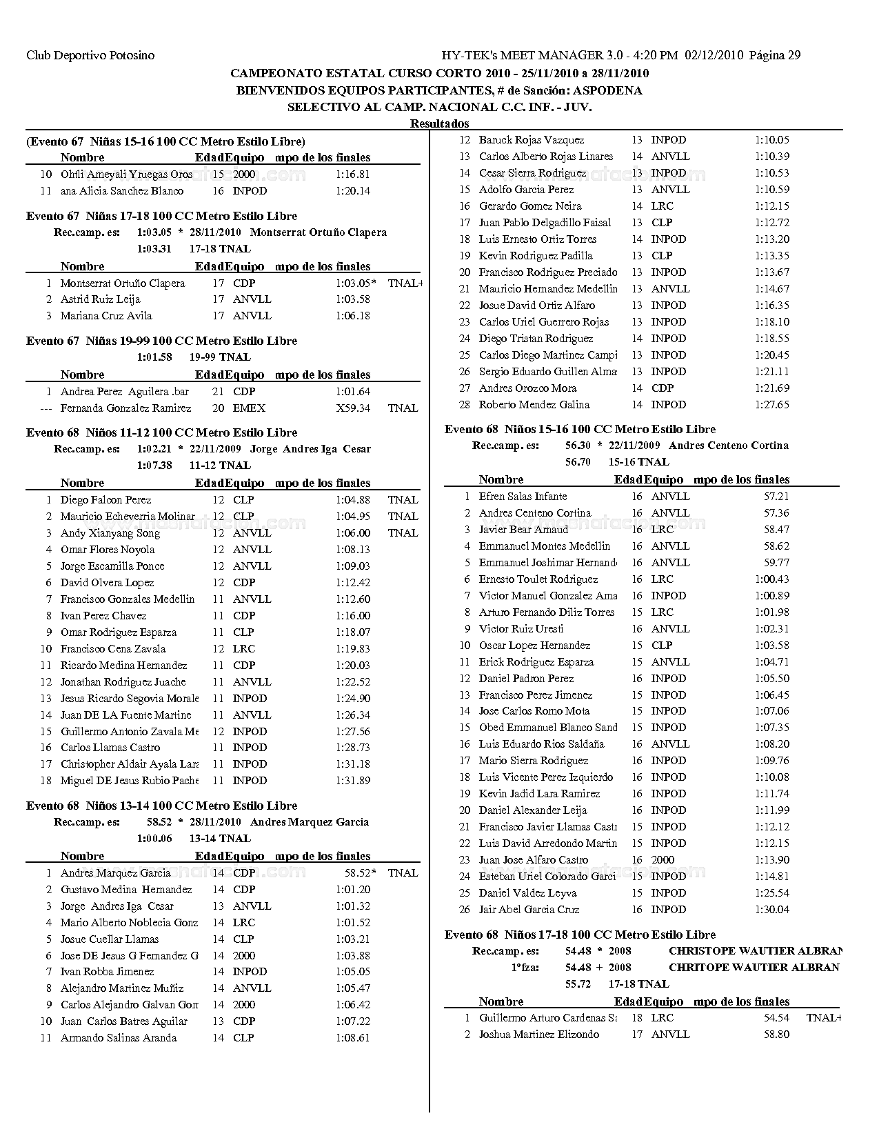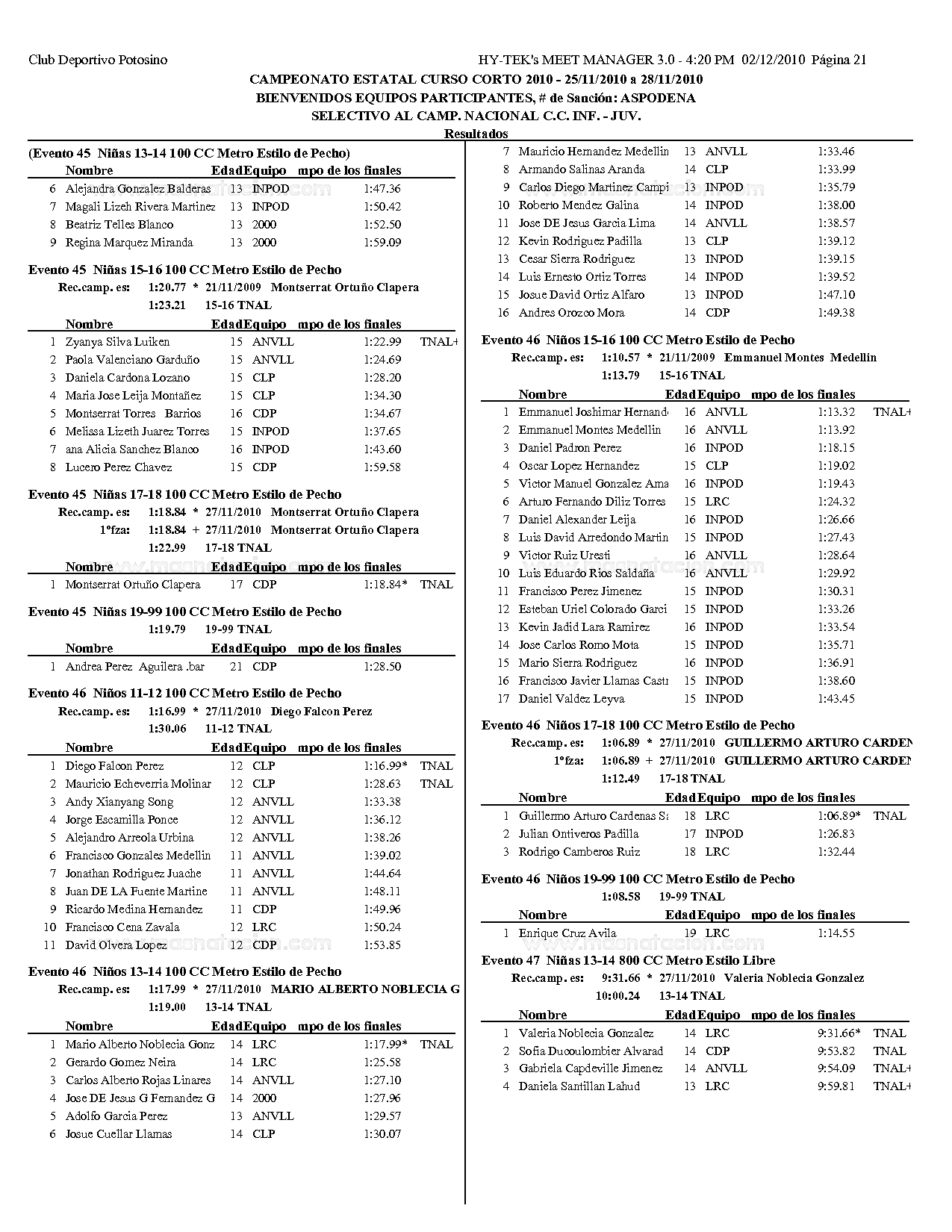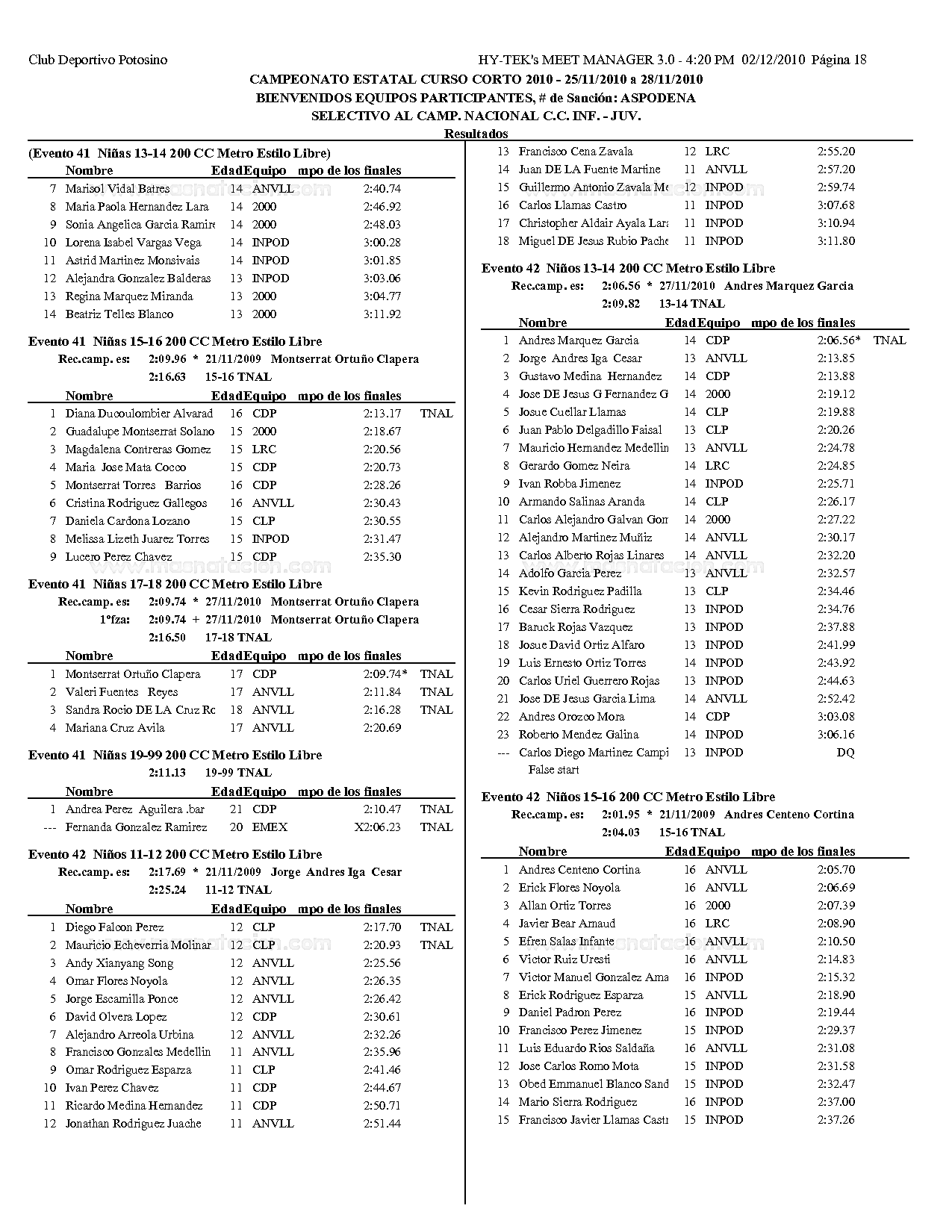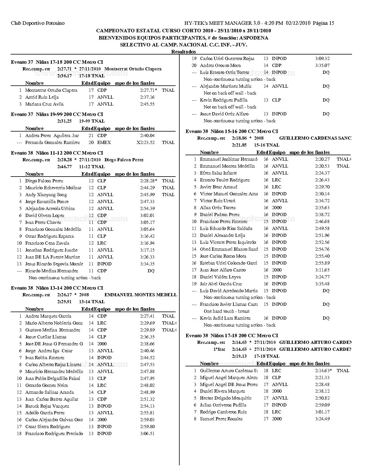 Campeonato Estatal San Luis Potosi Curso Corto 2010