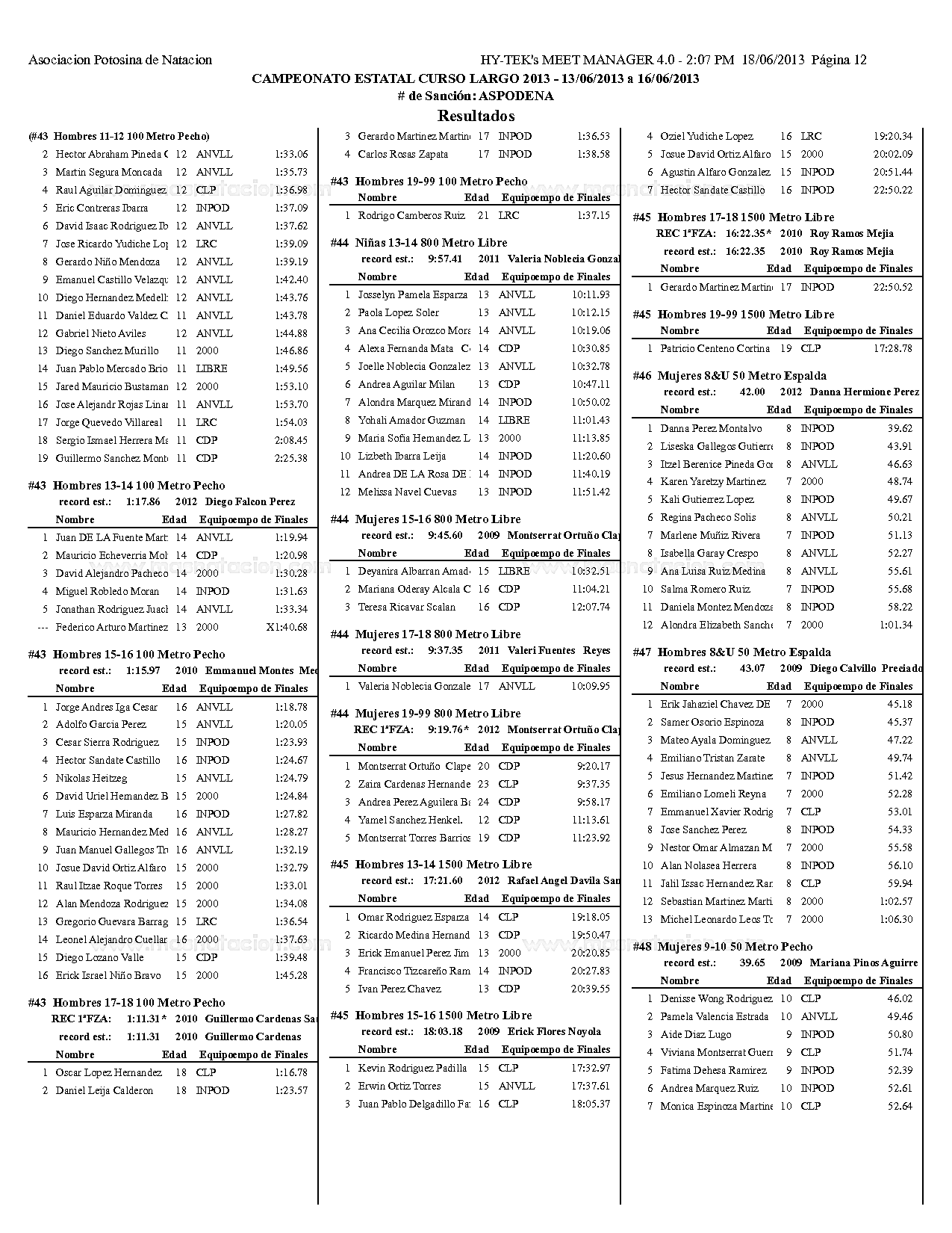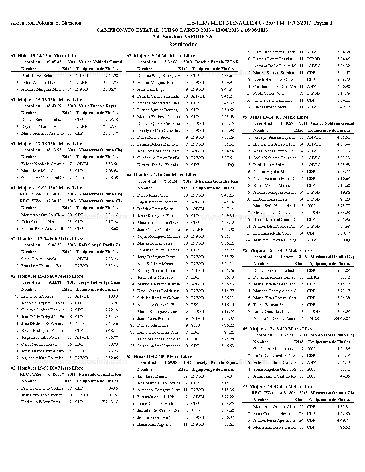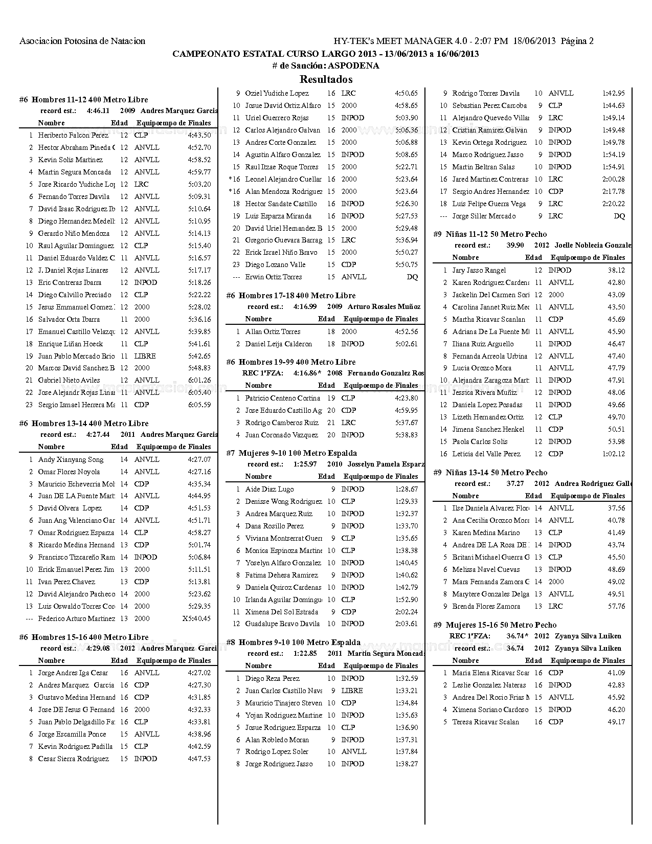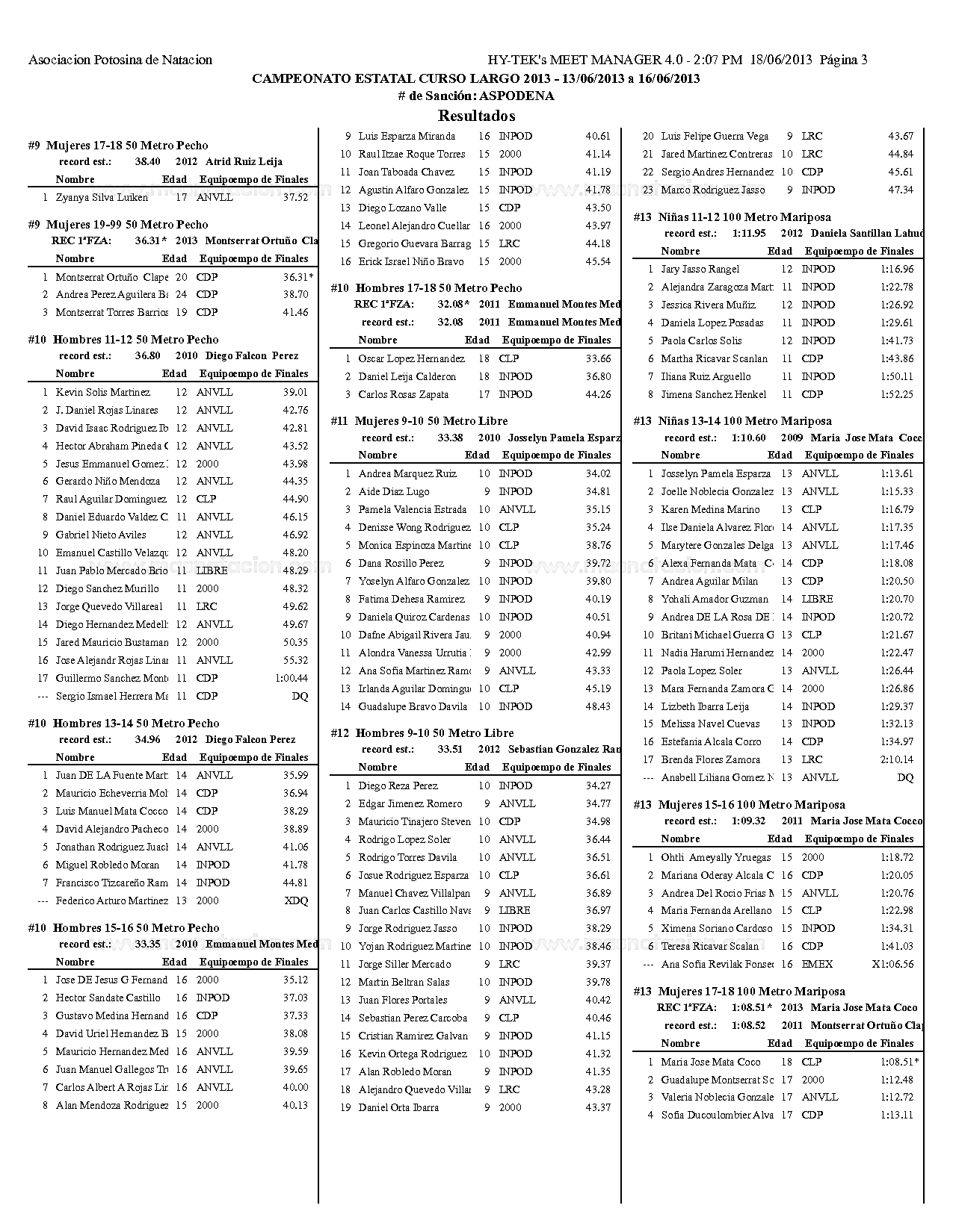 Campeonato Estatal San Luis Potosi Curso Largo 2013