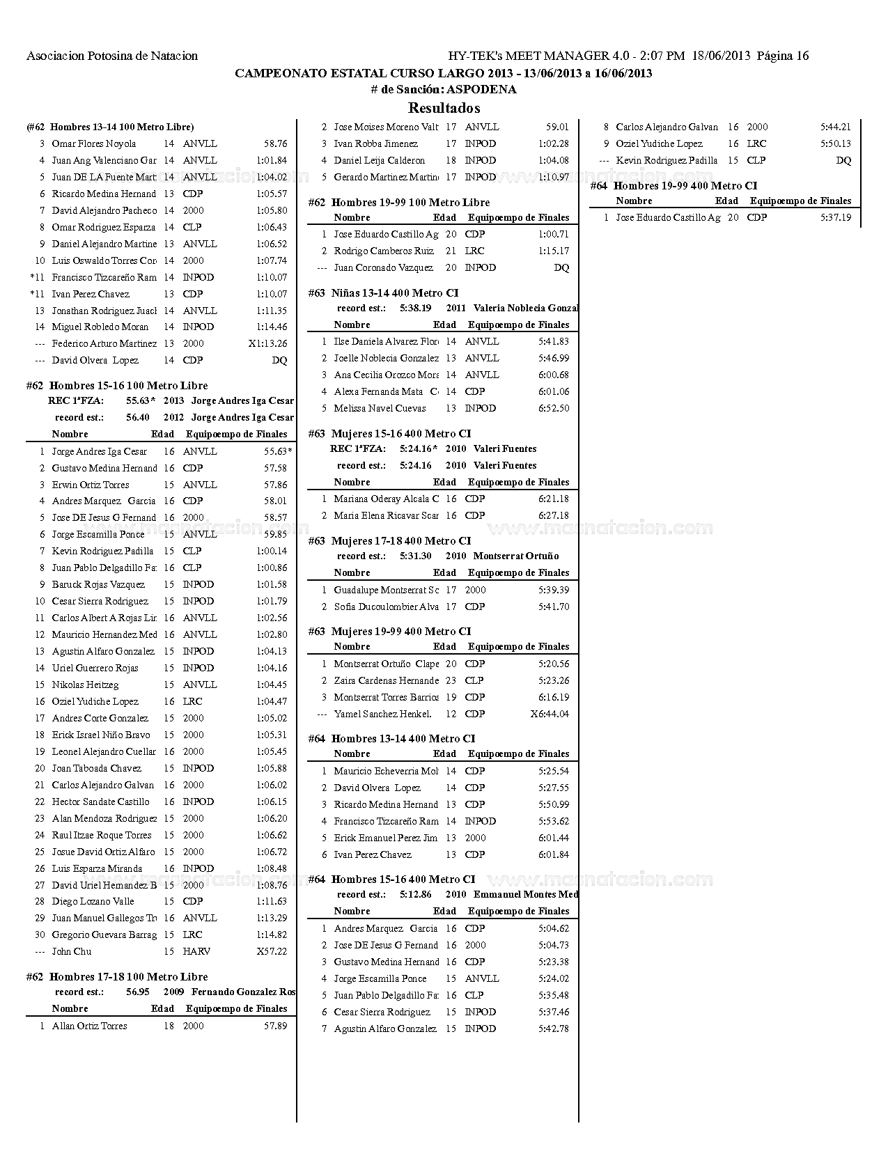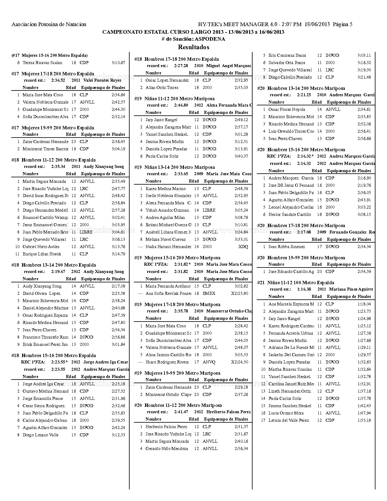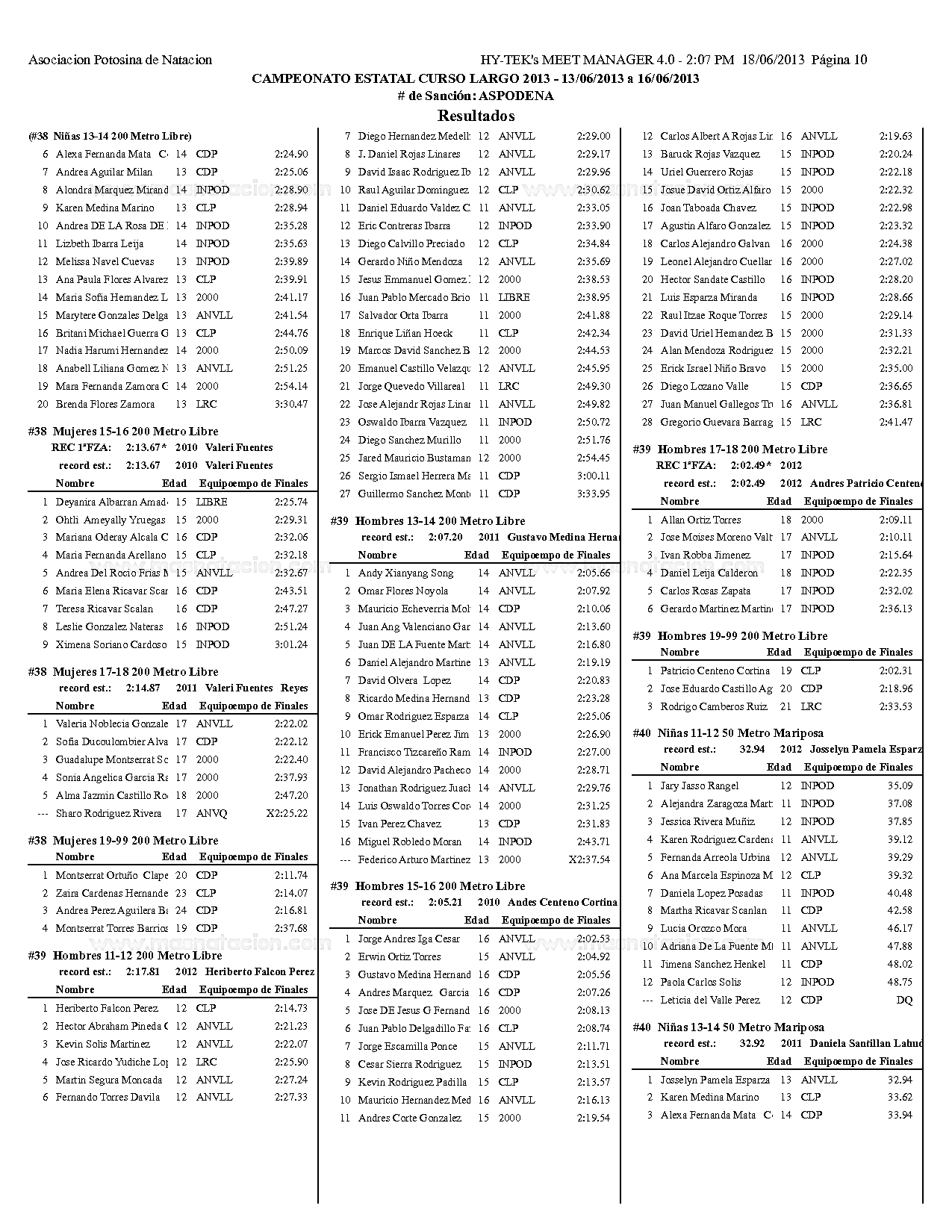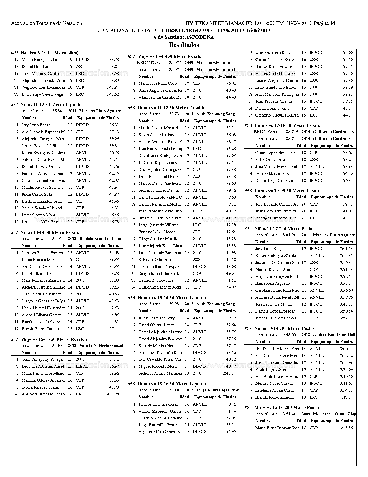 Campeonato Estatal San Luis Potosi Curso Largo 2013