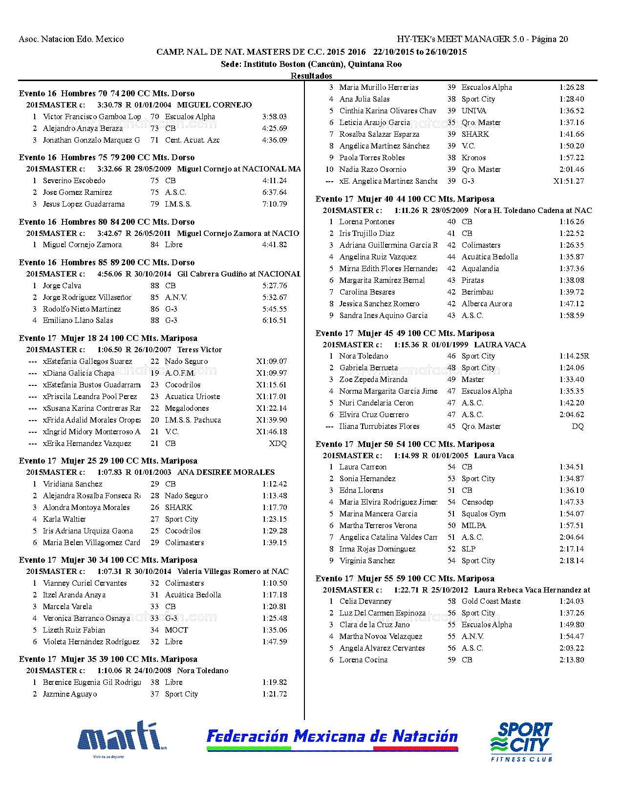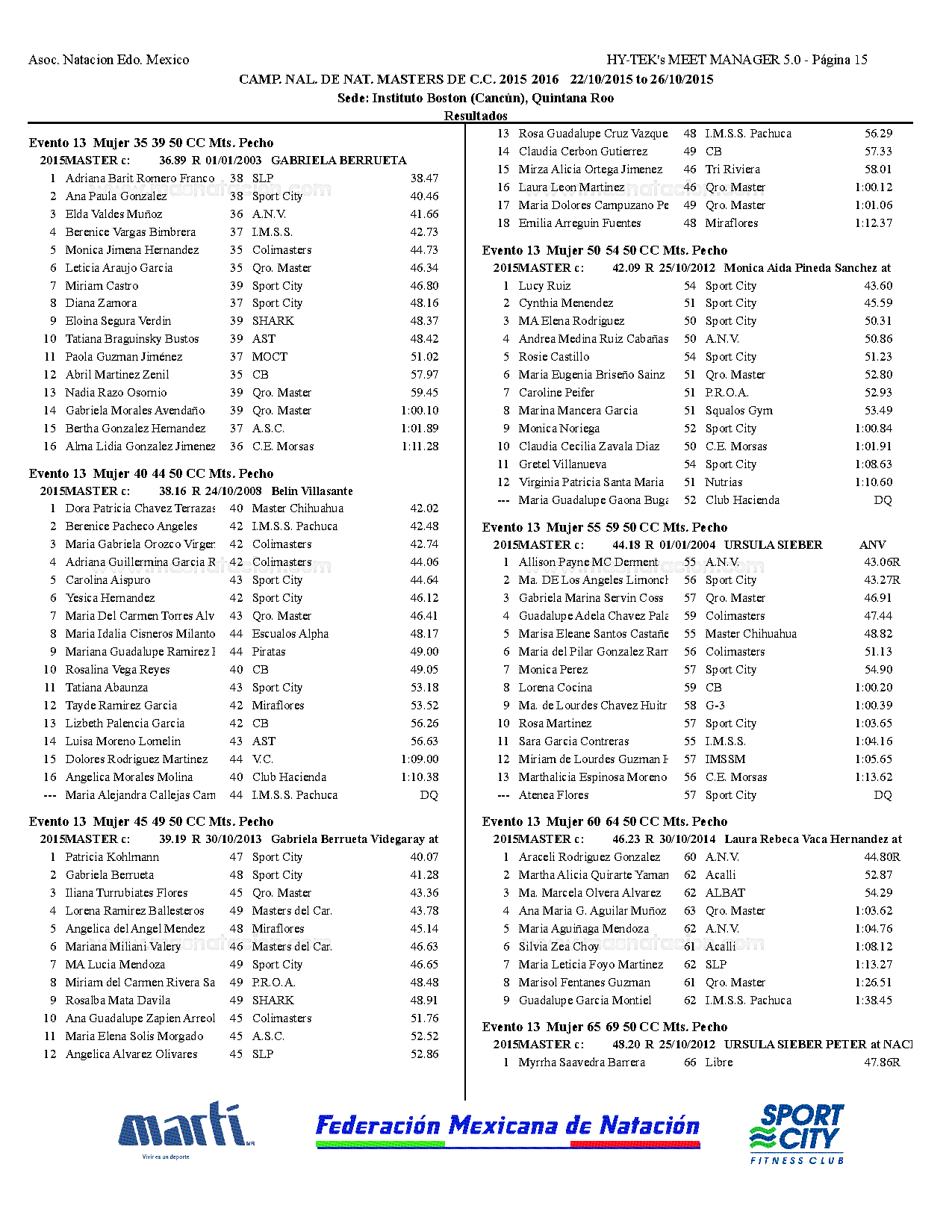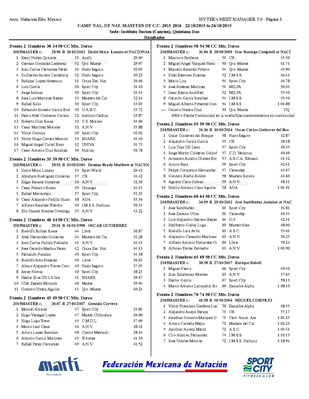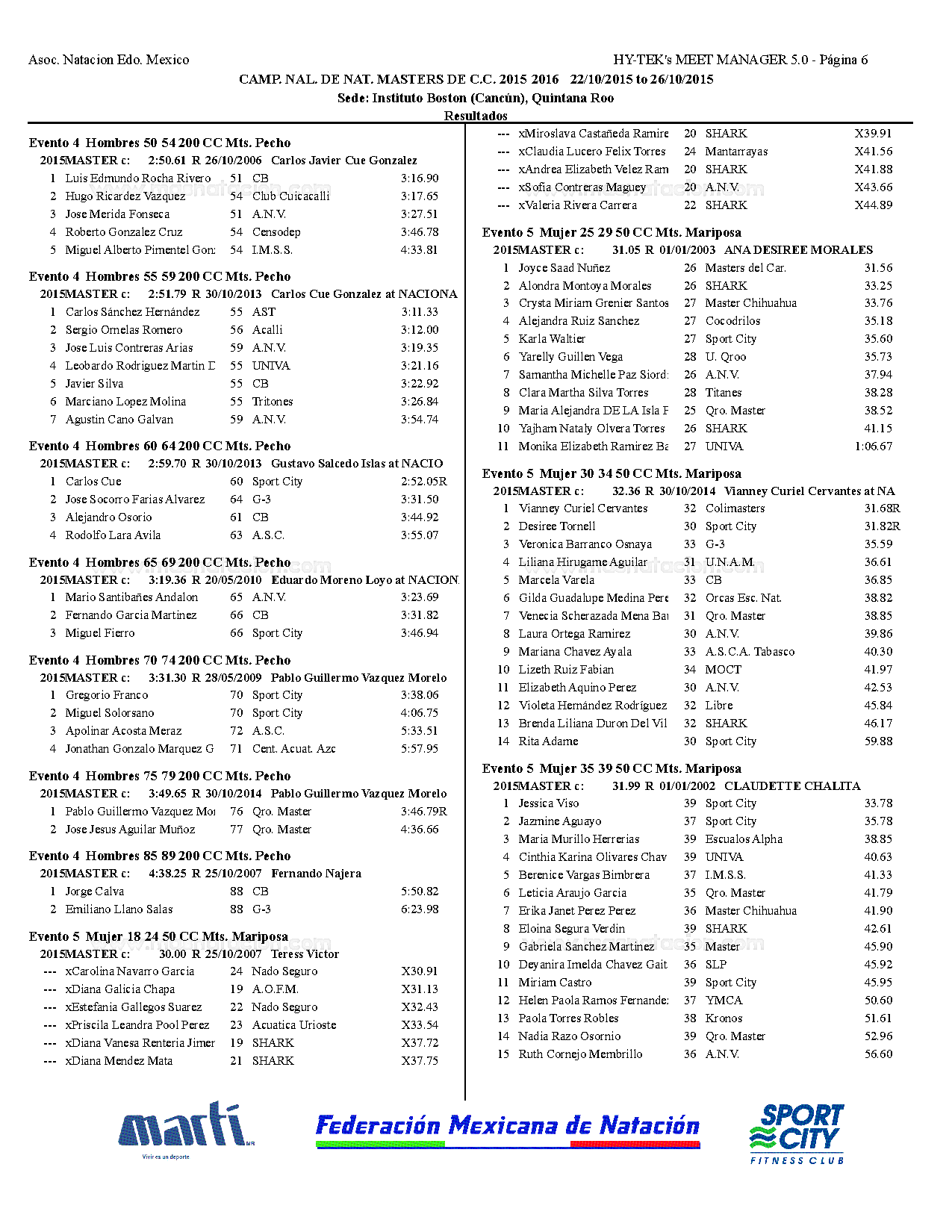 Campeonato Nacional Master Curso Corto 2015