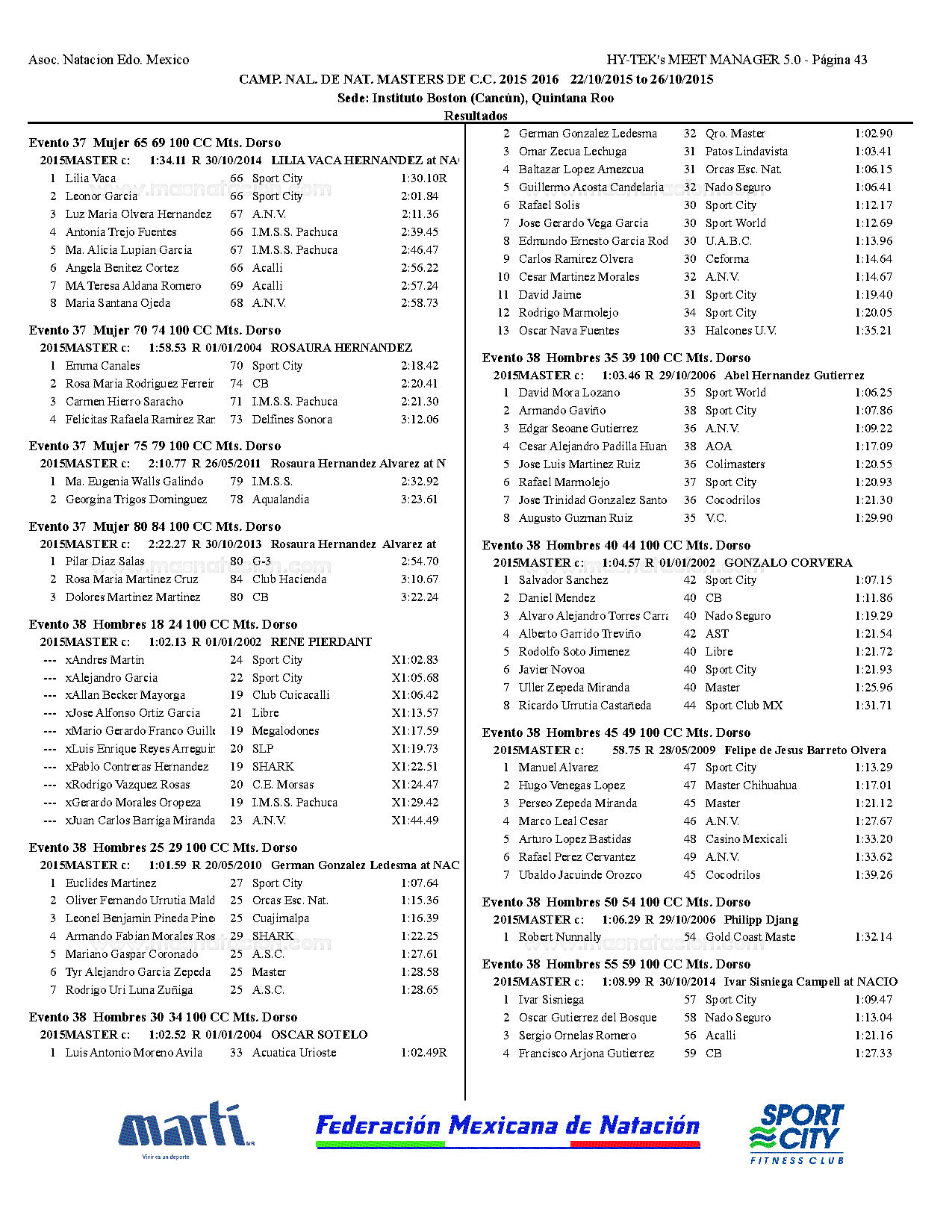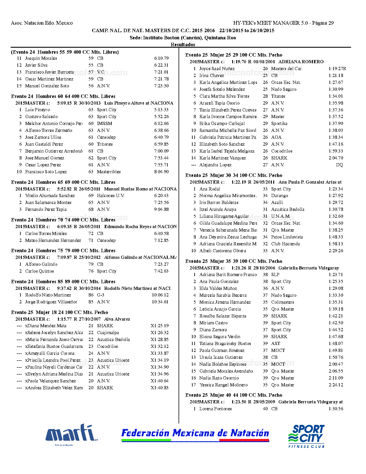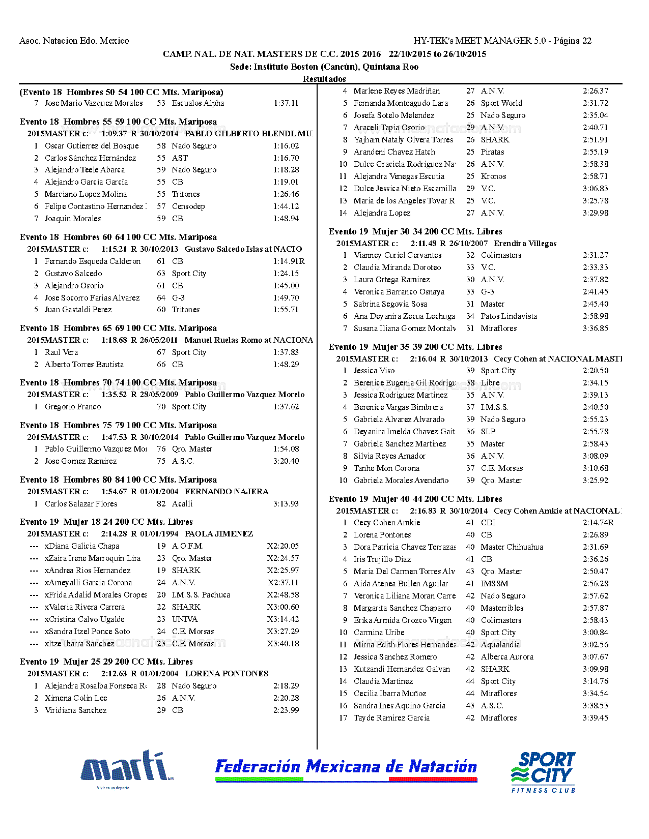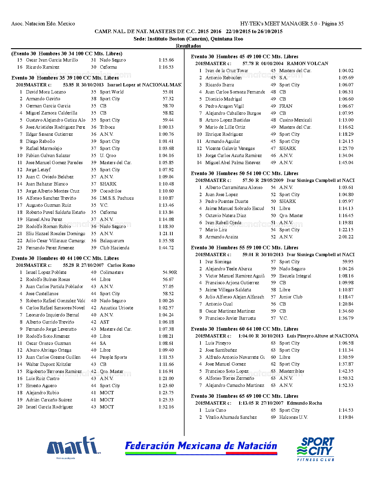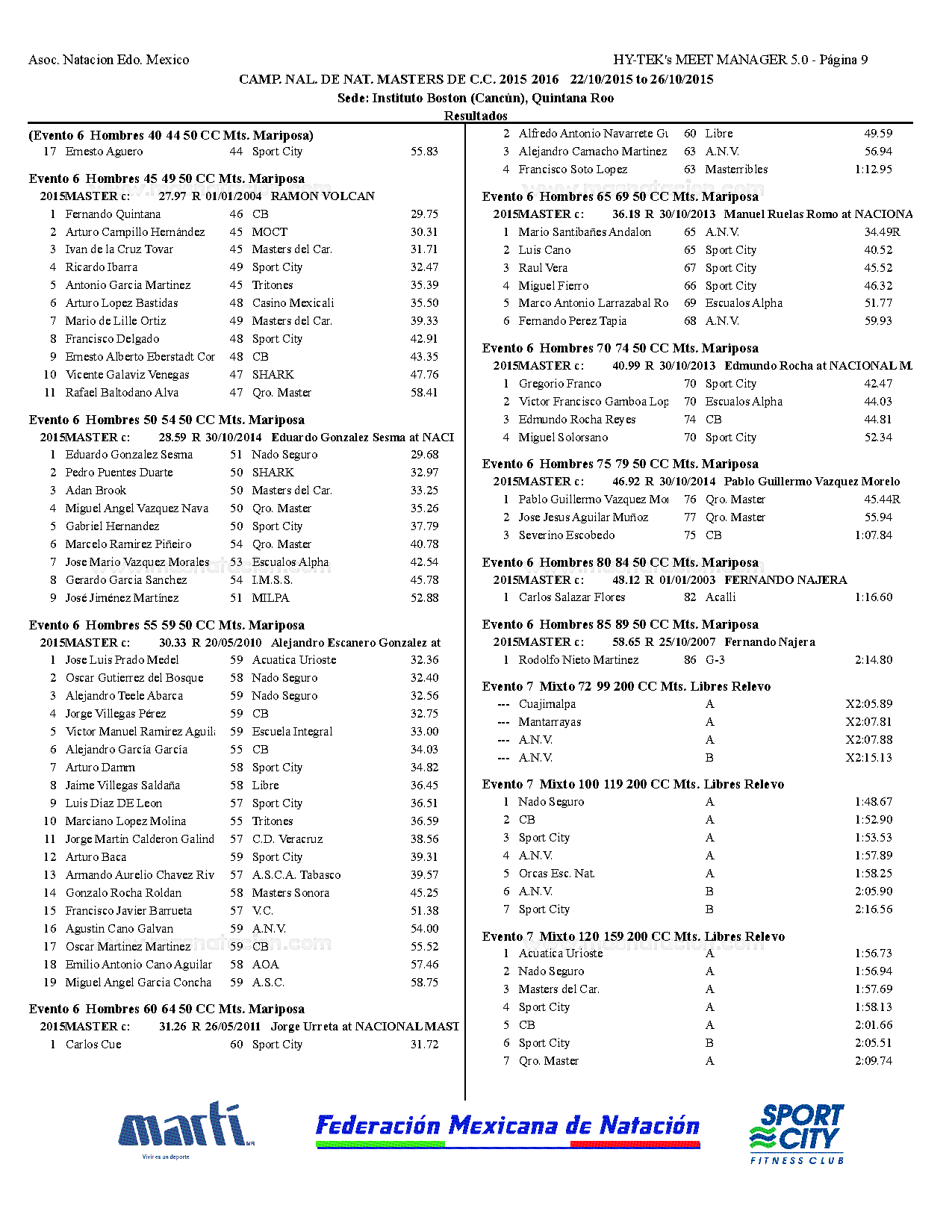 Campeonato Nacional Master Curso Corto 2015