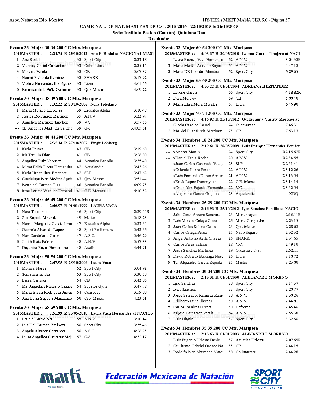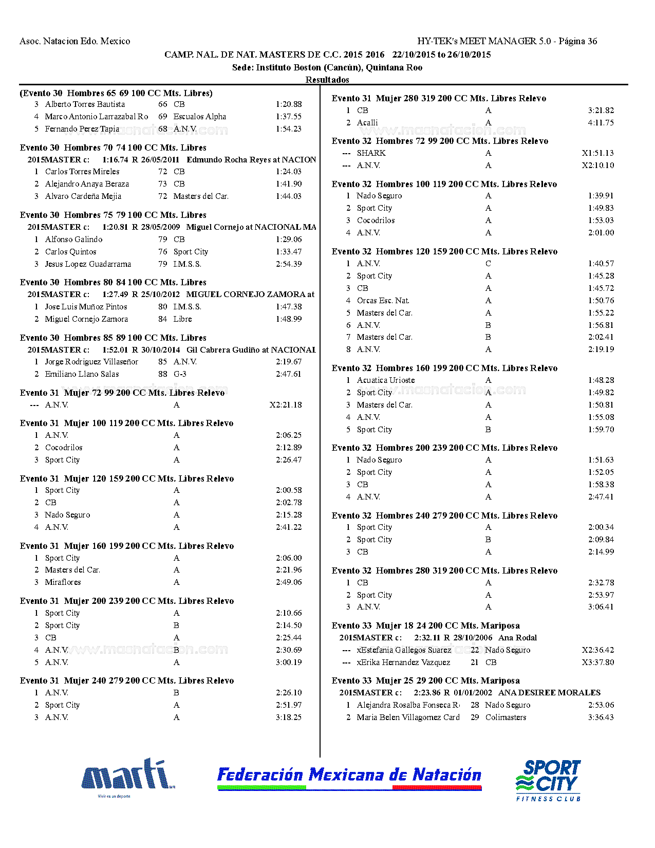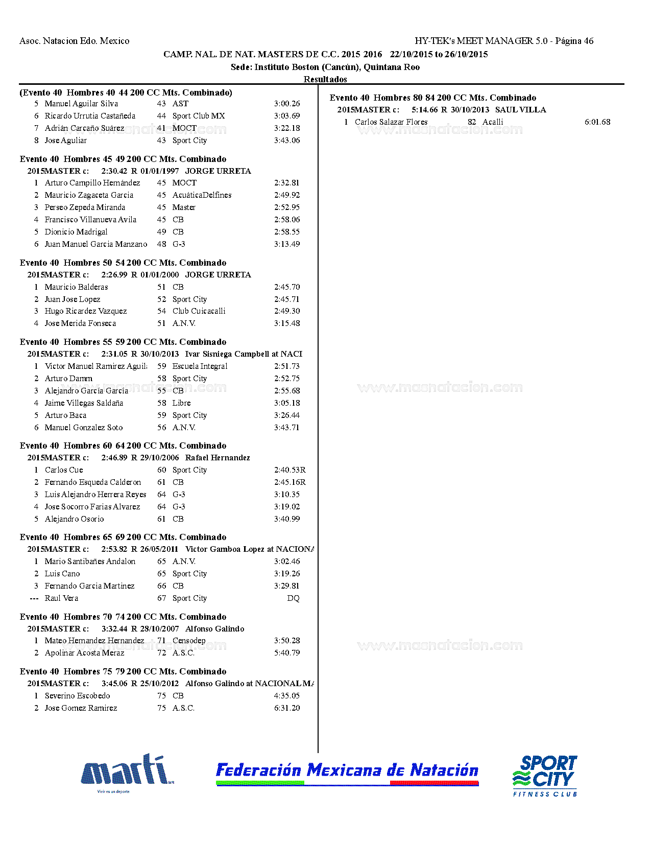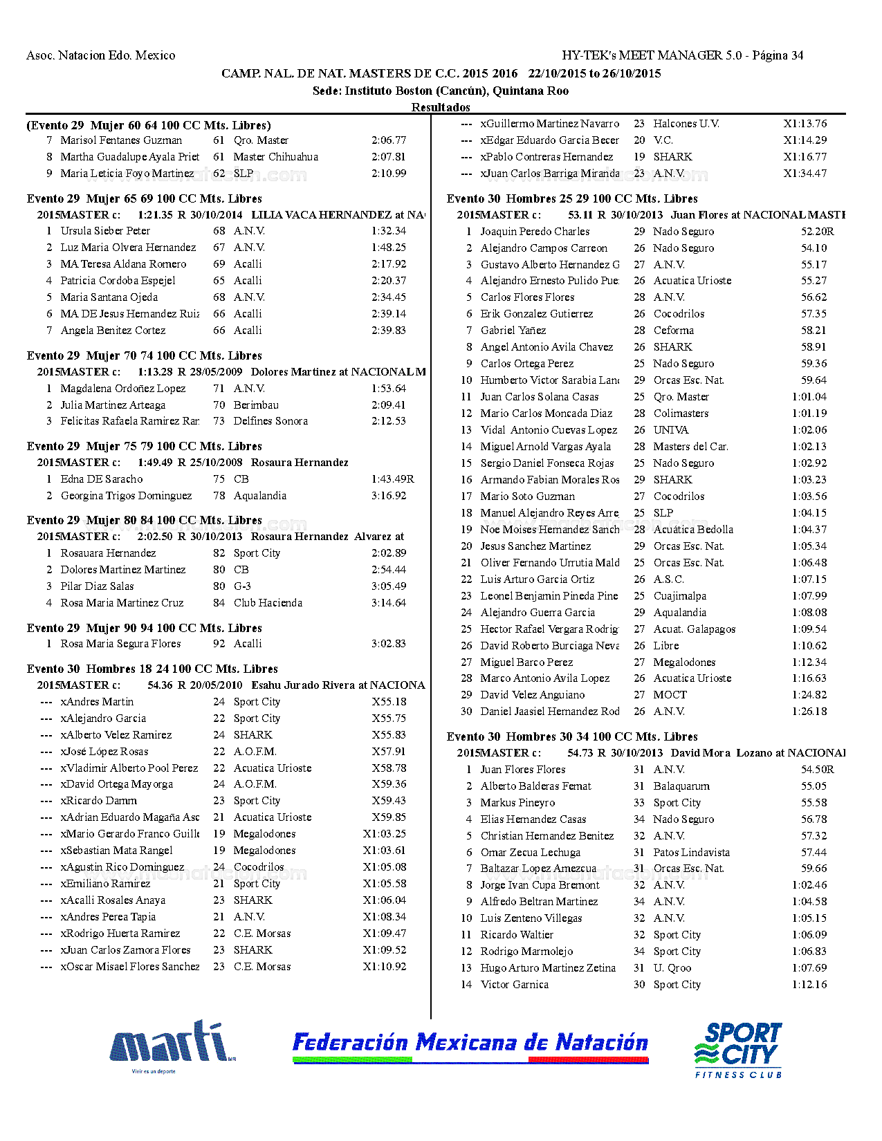 Campeonato Nacional Master Curso Corto 2015