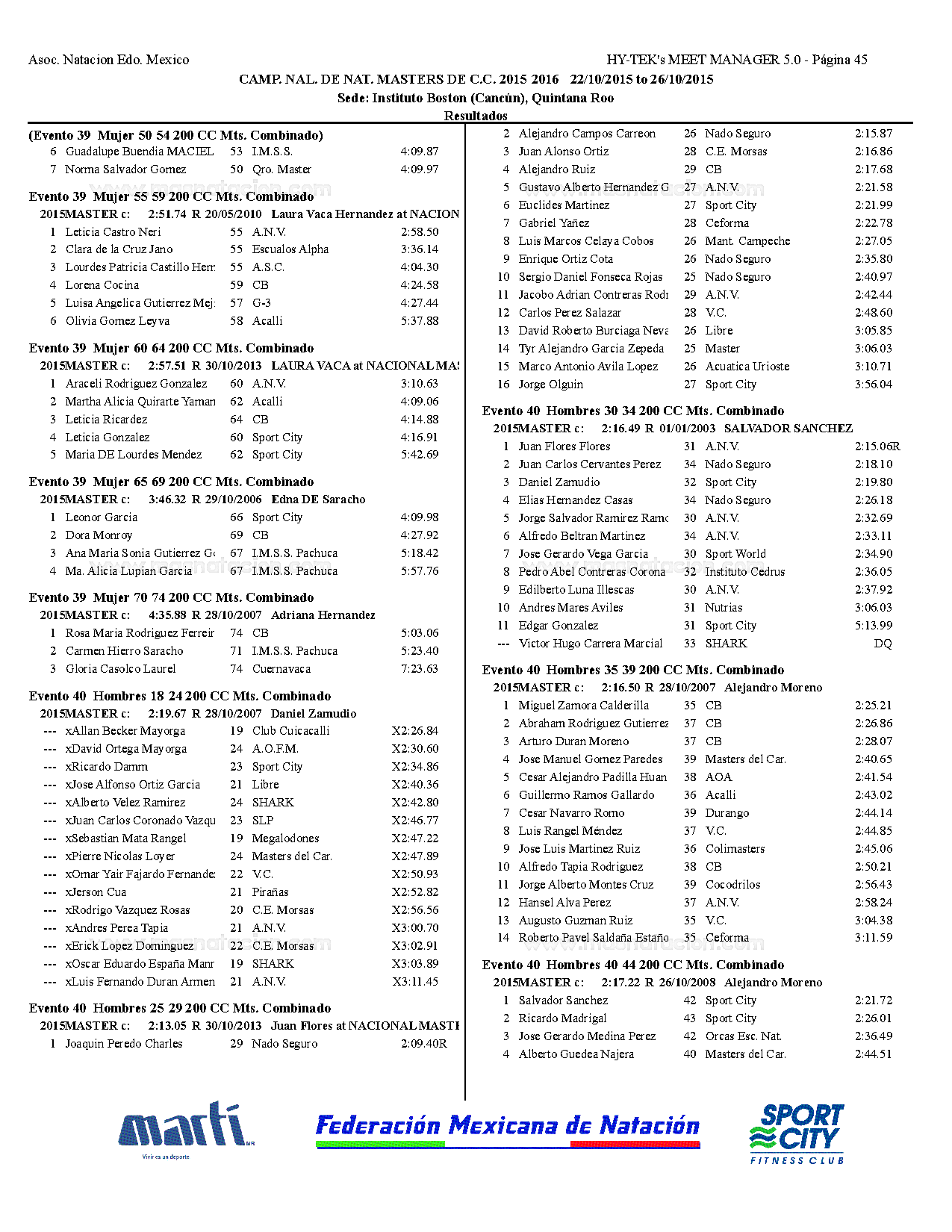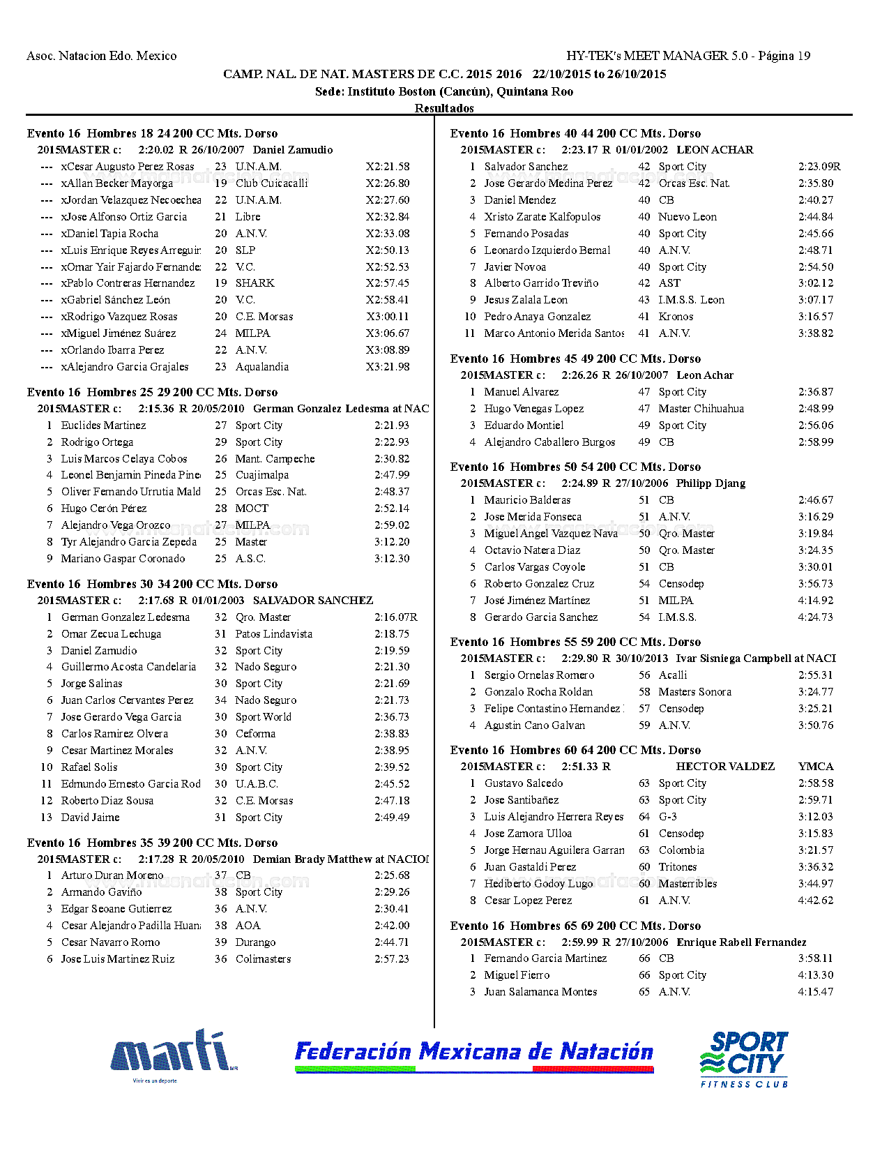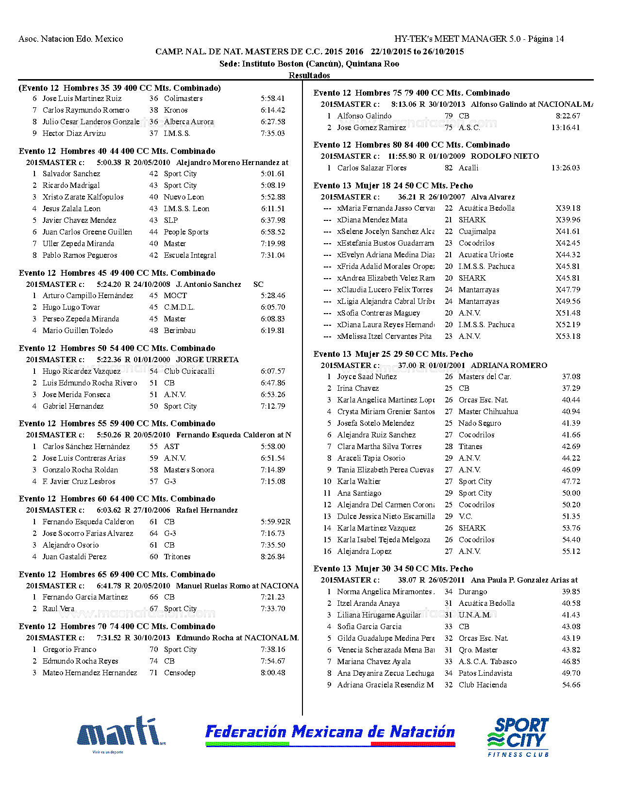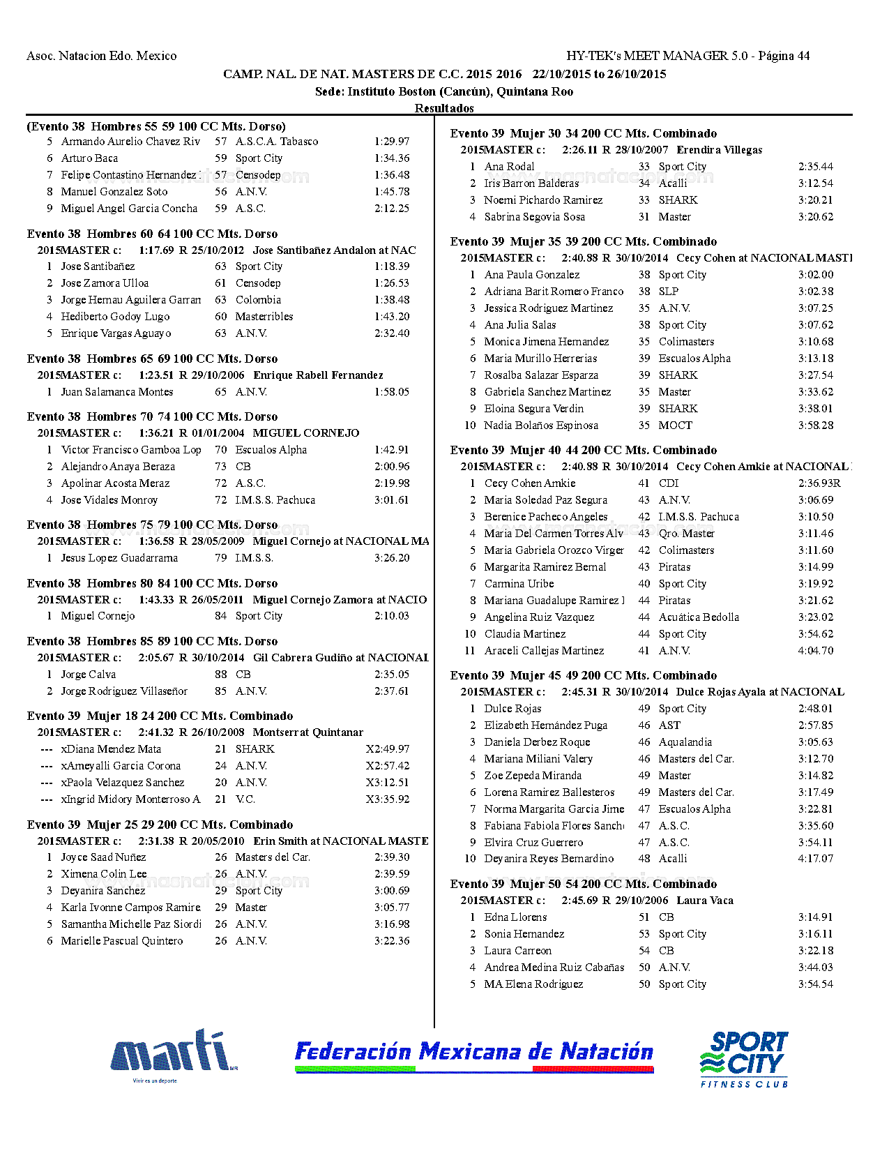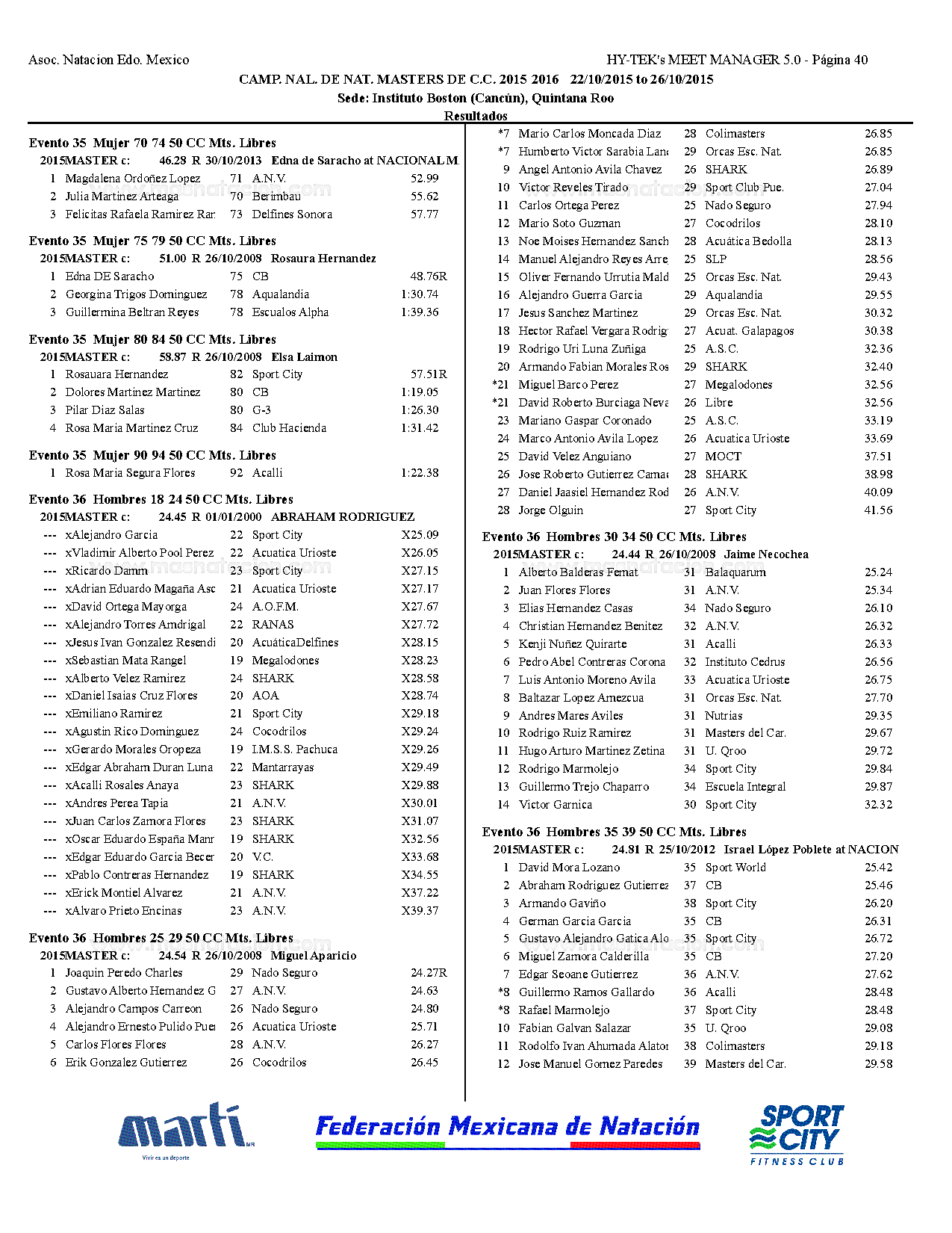 Campeonato Nacional Master Curso Corto 2015