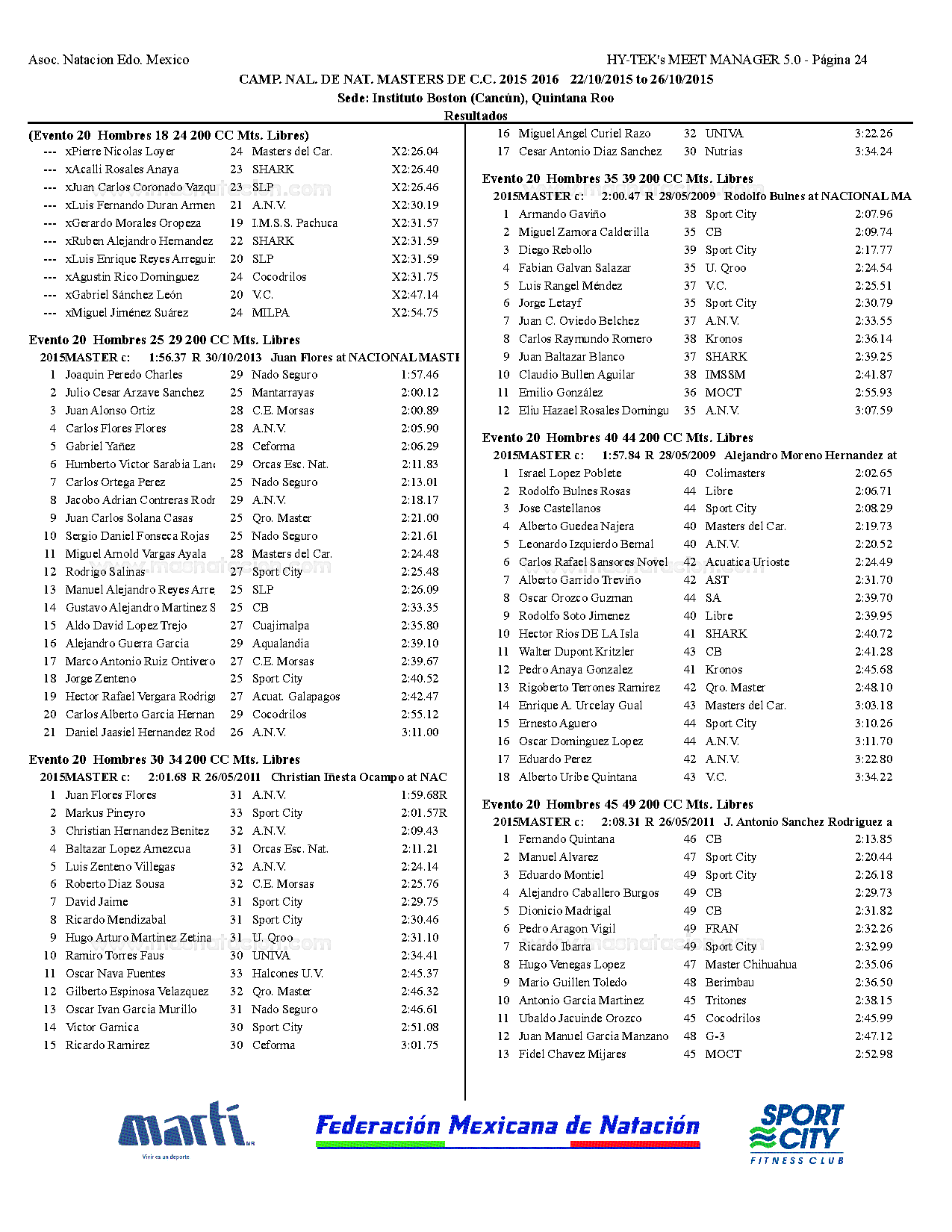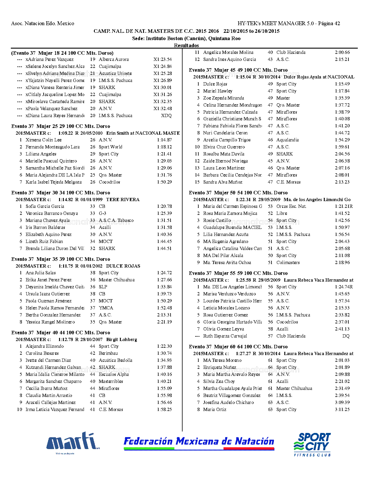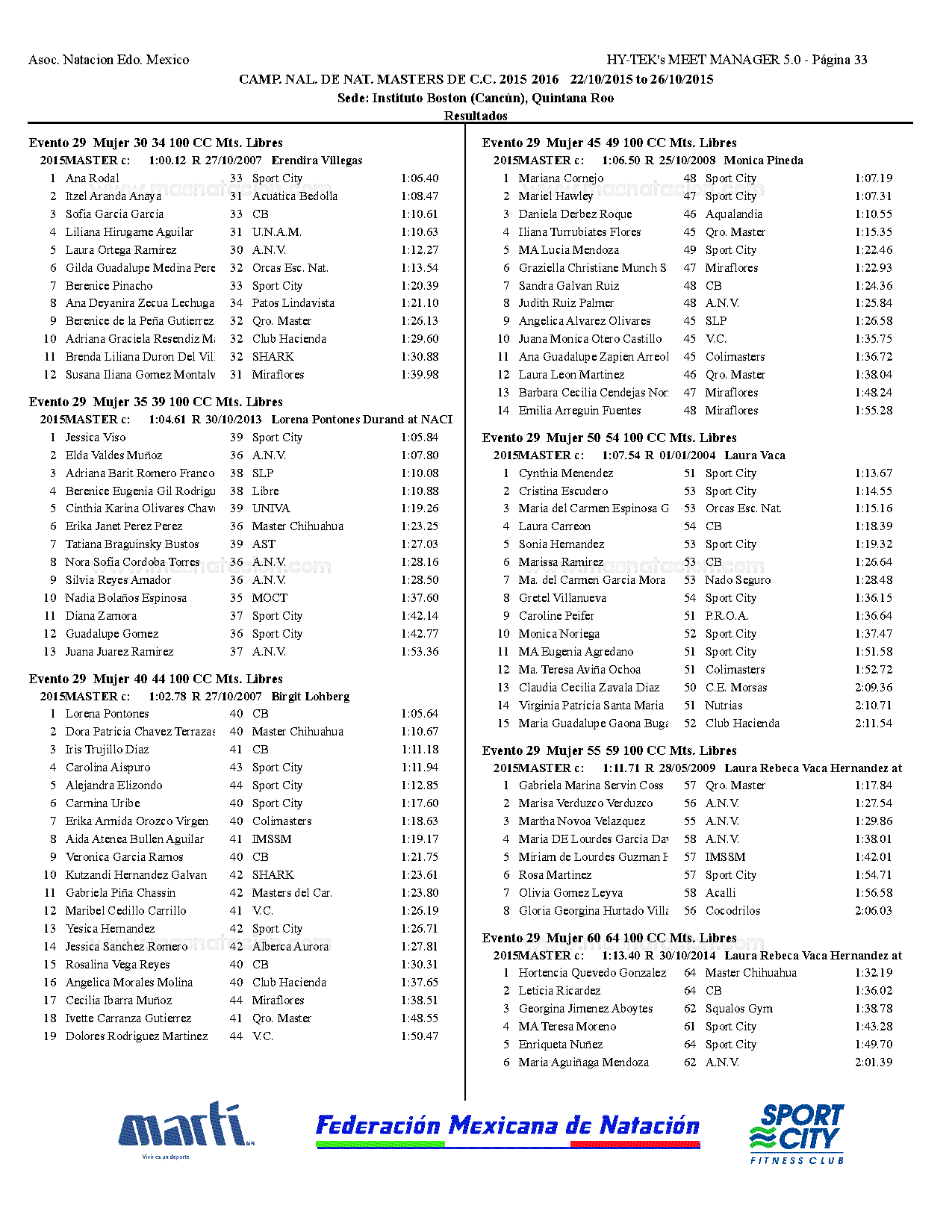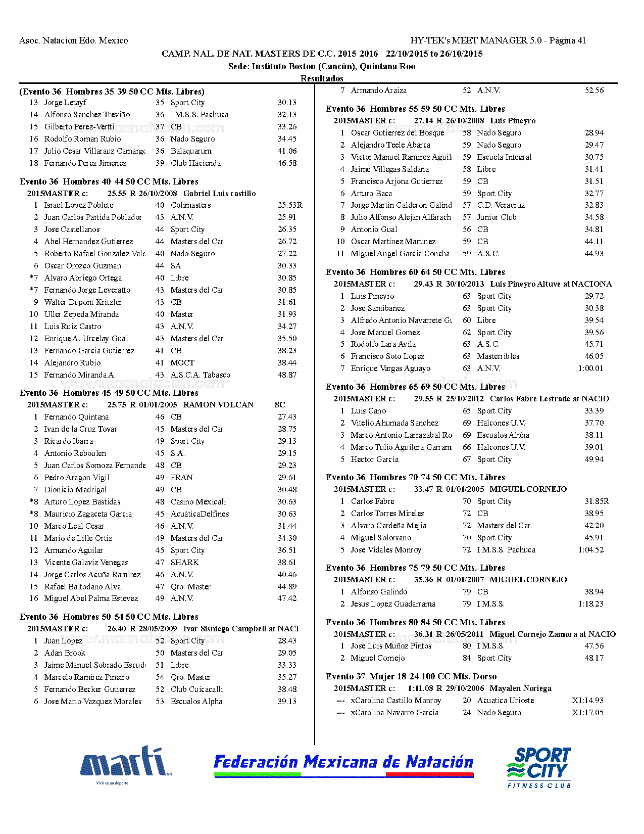 Campeonato Nacional Master Curso Corto 2015