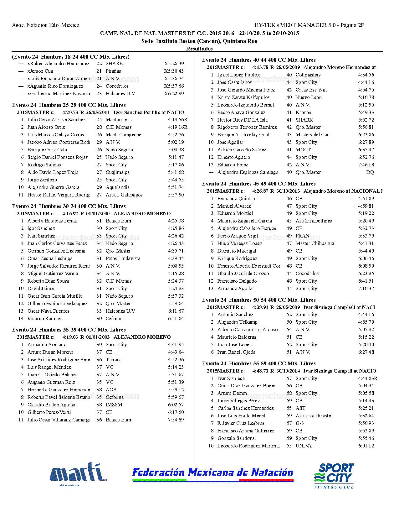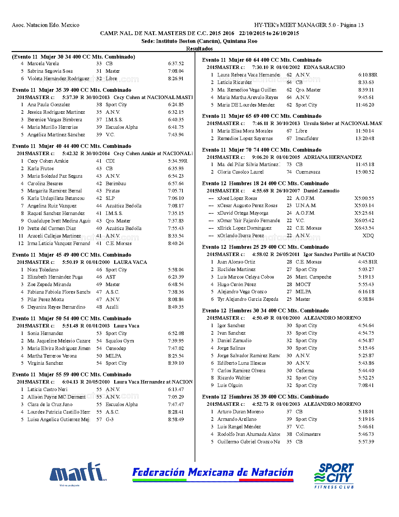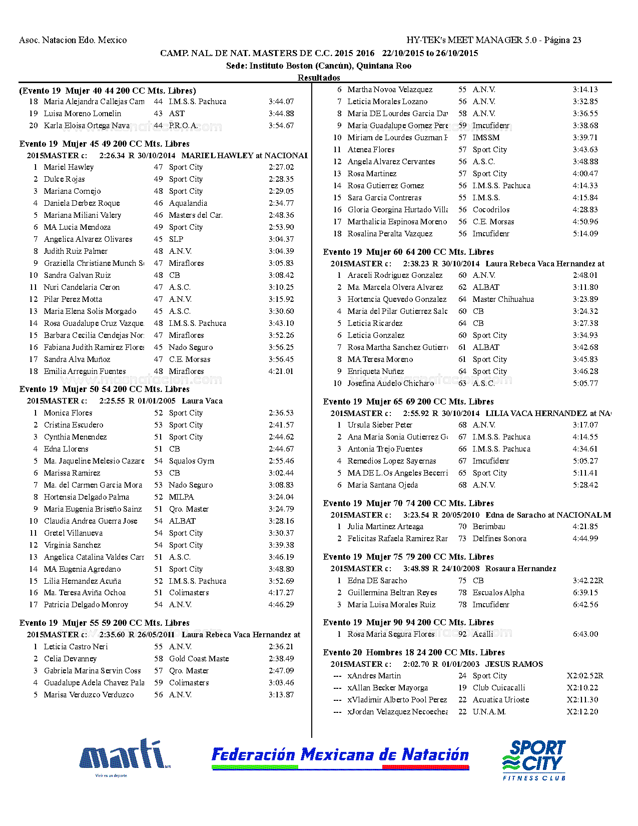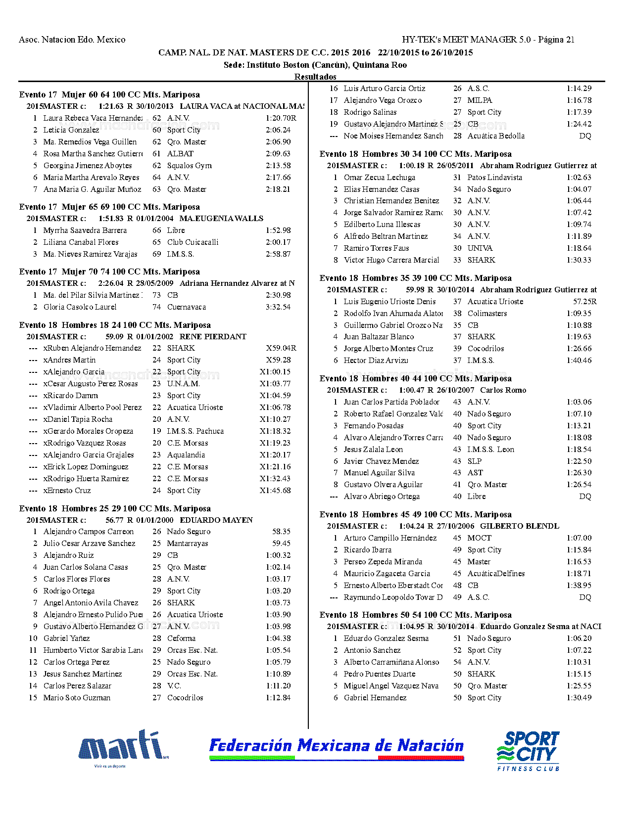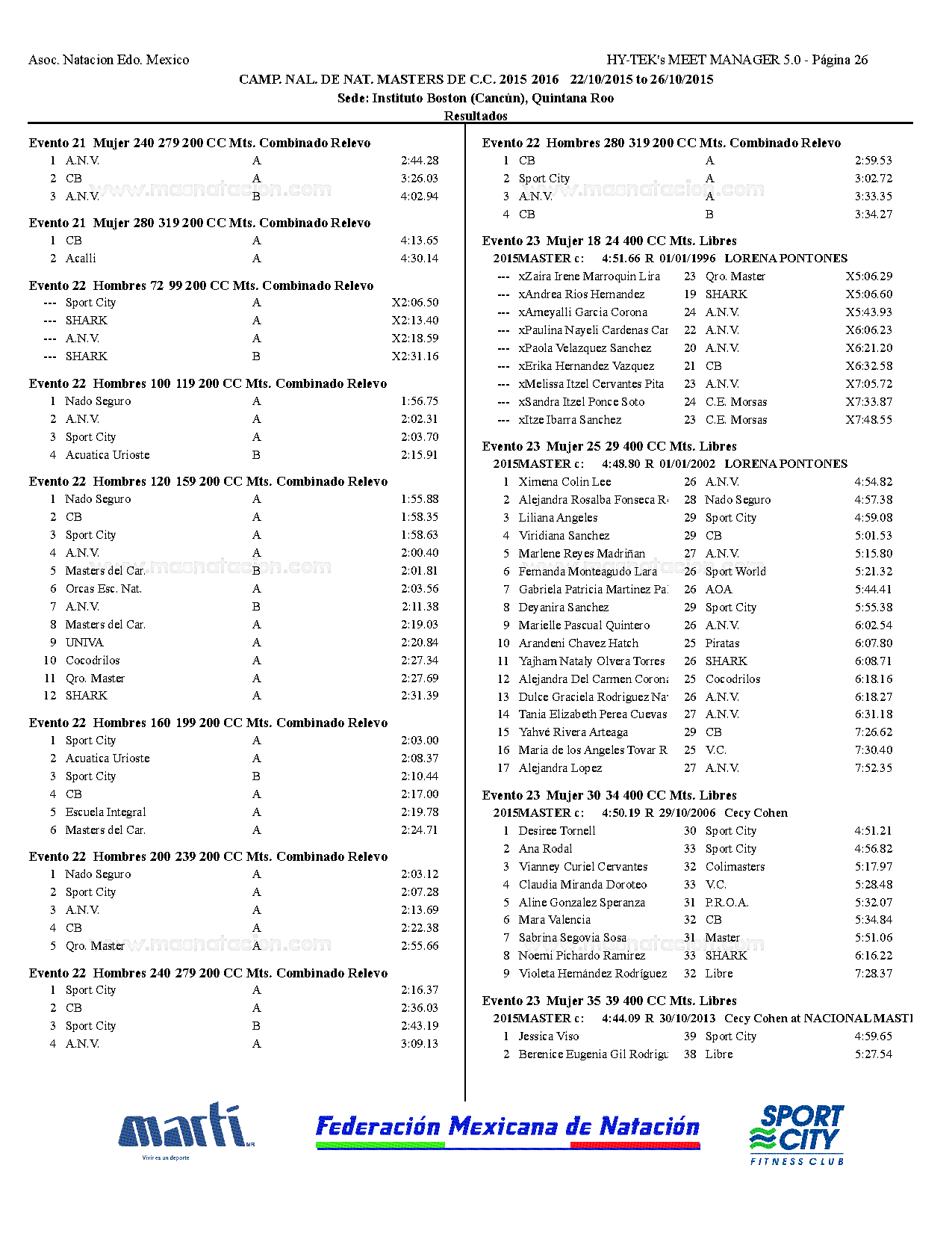 Campeonato Nacional Master Curso Corto 2015