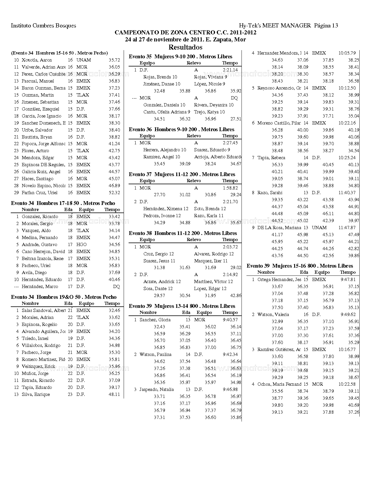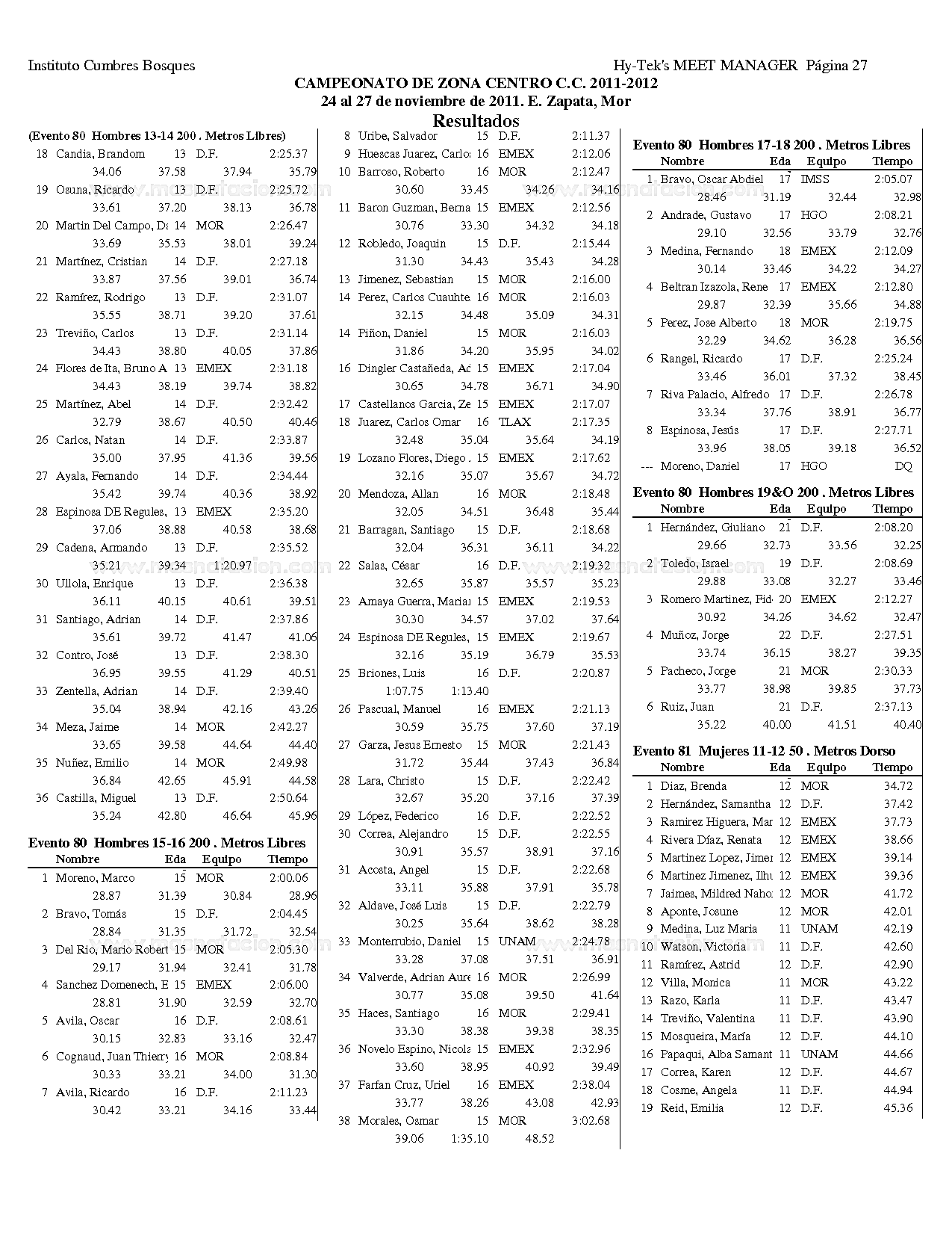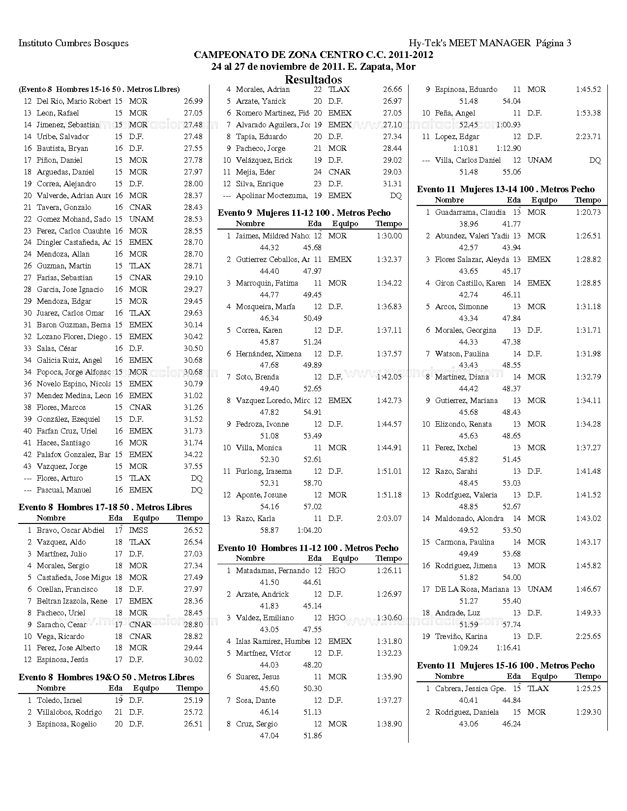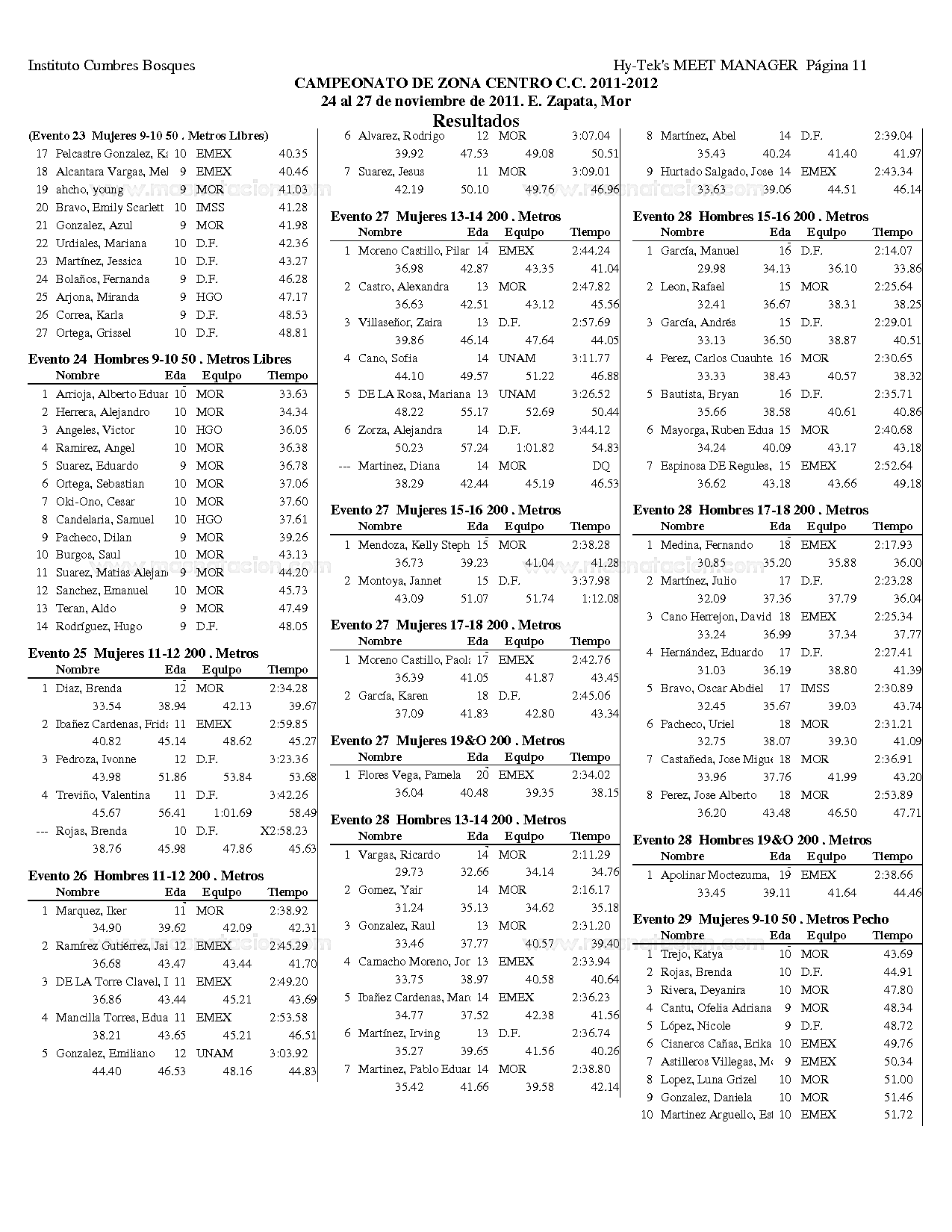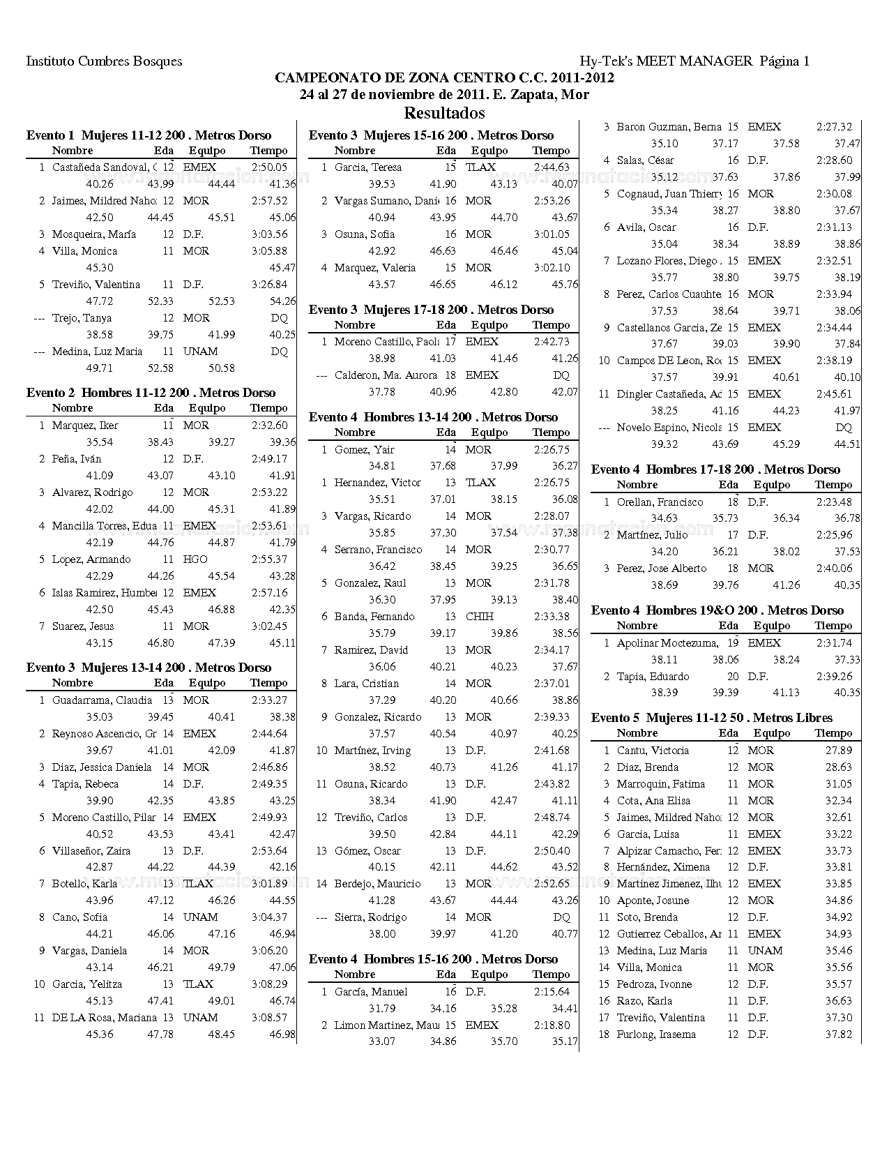 Campeonato Zona Centro Curso Corto 2011