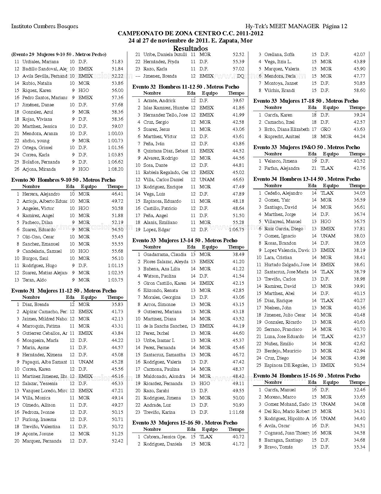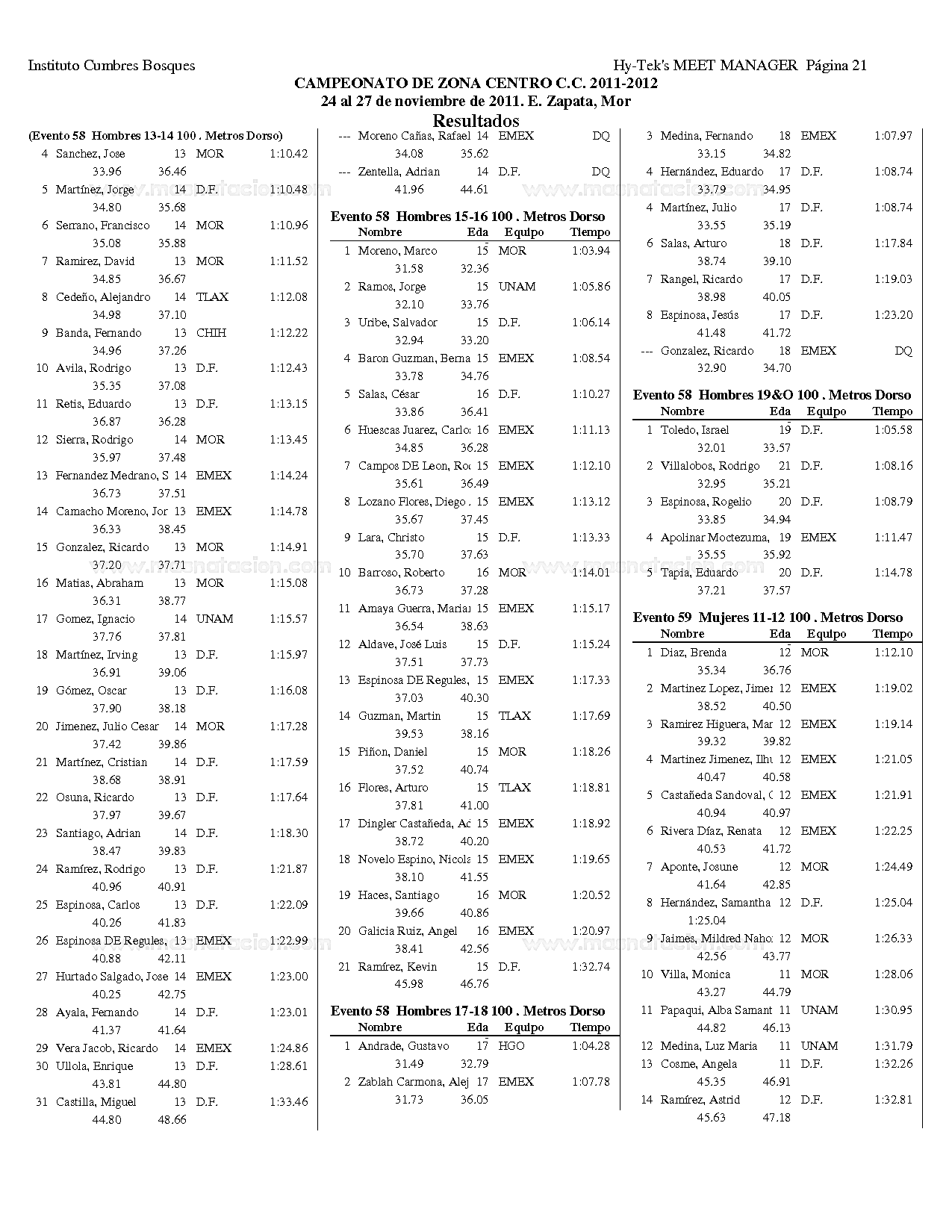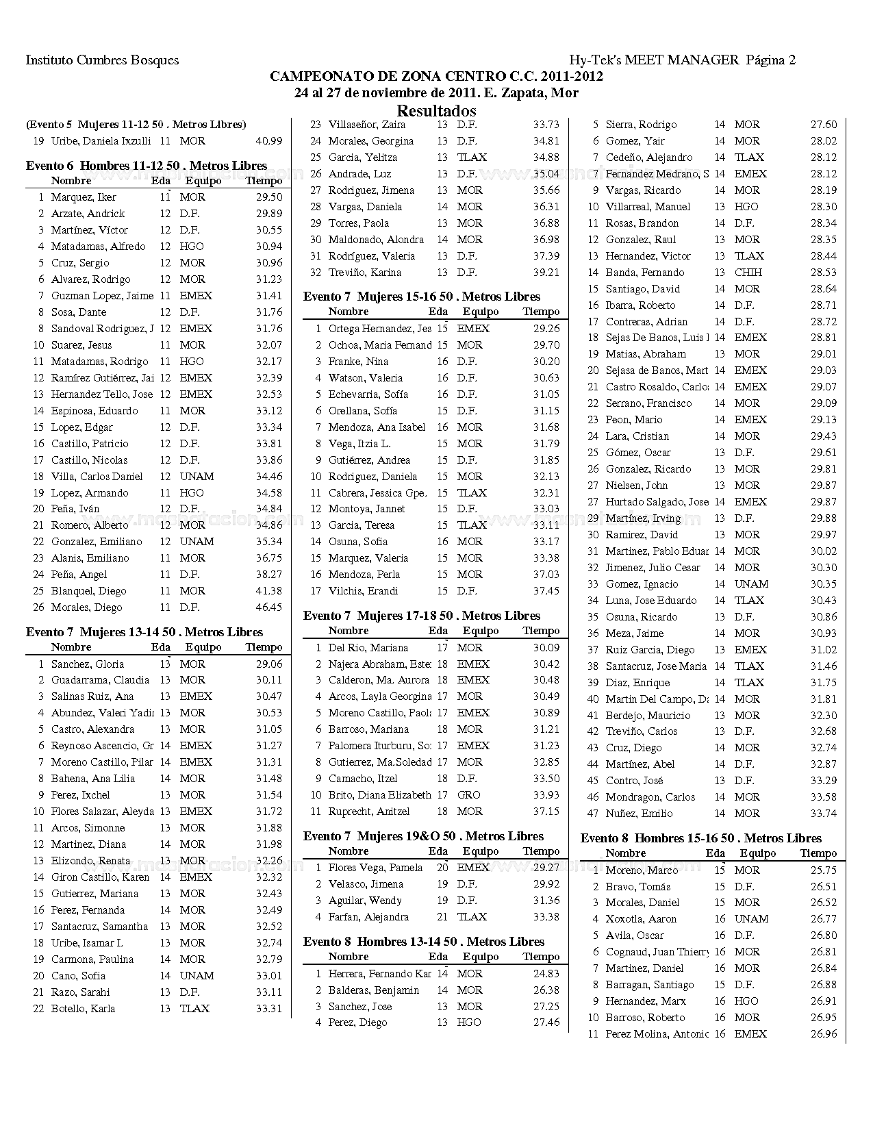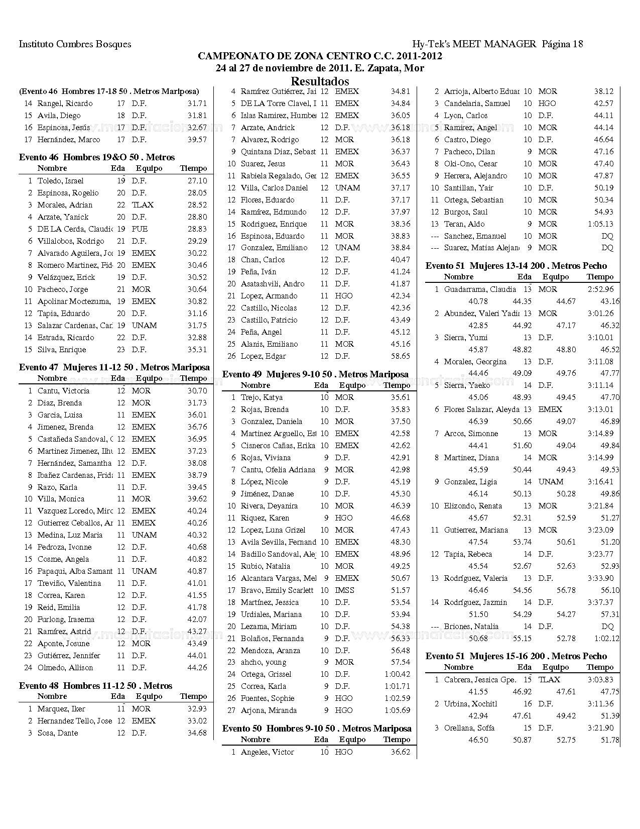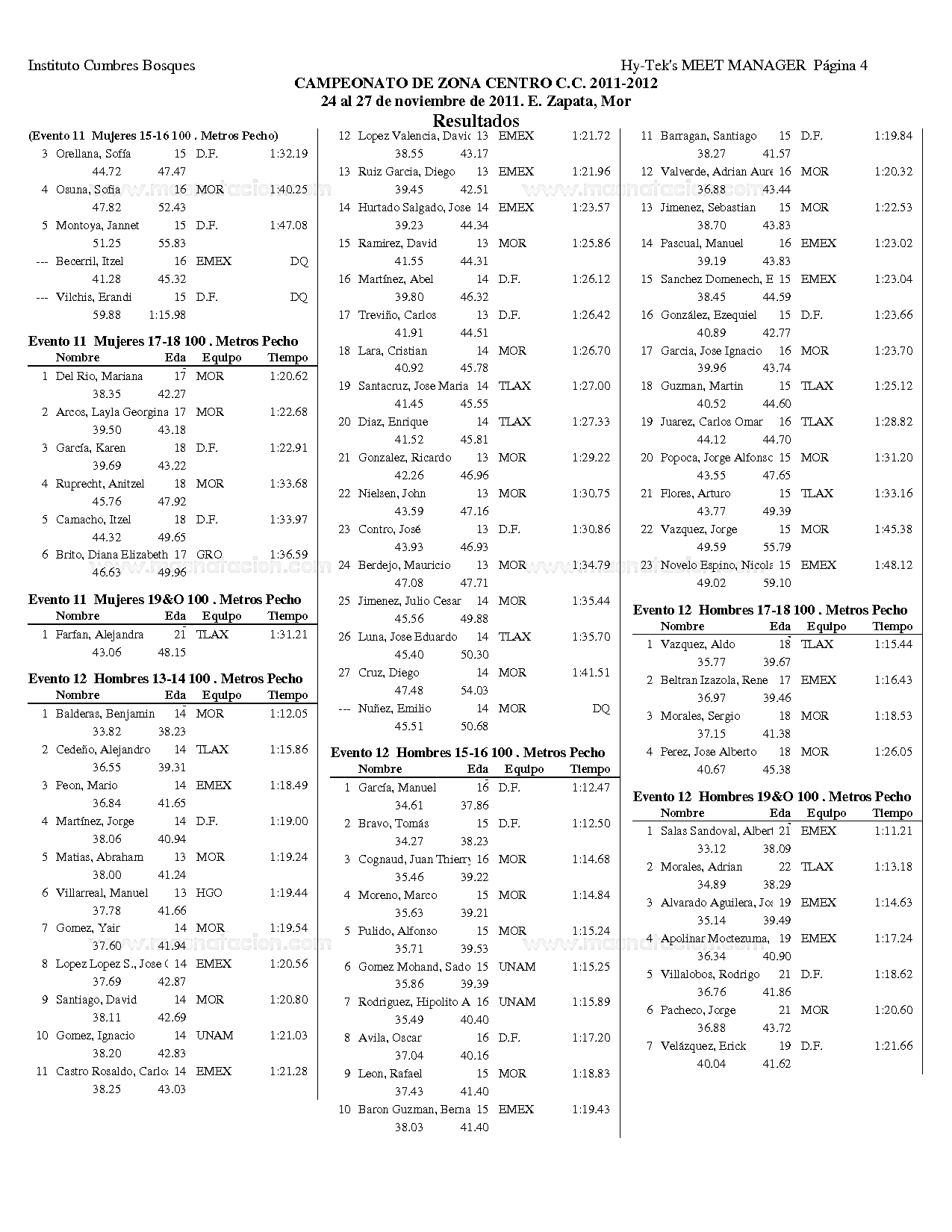 Campeonato Zona Centro Curso Corto 2011