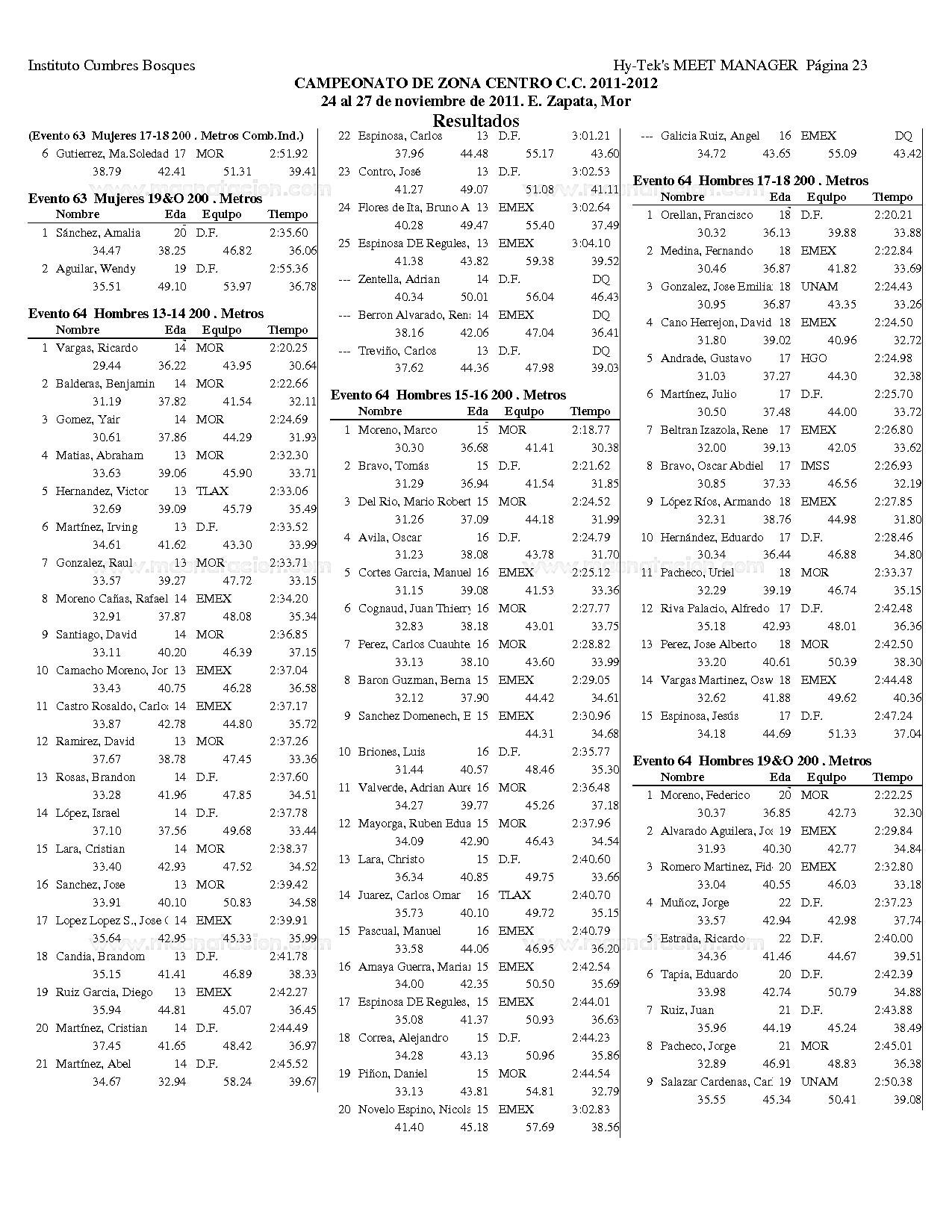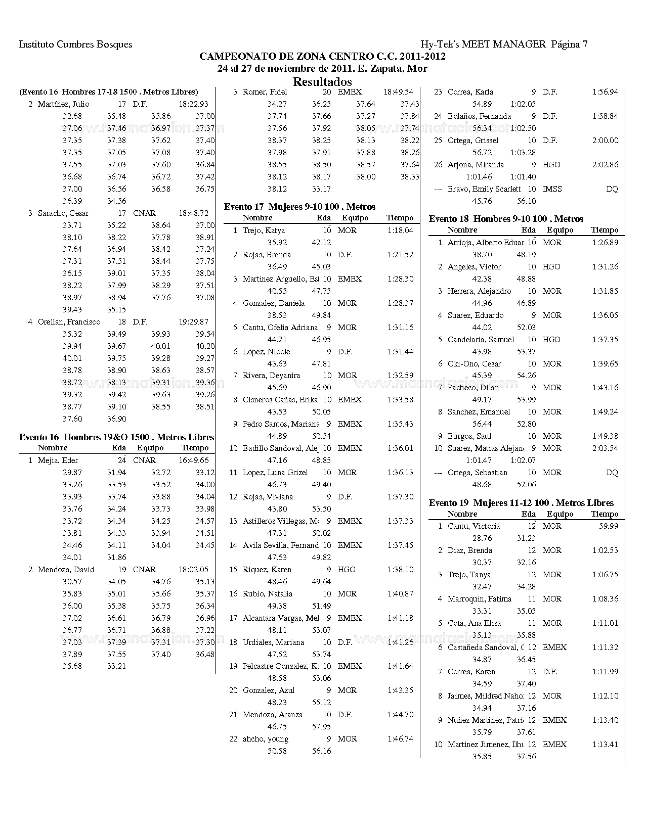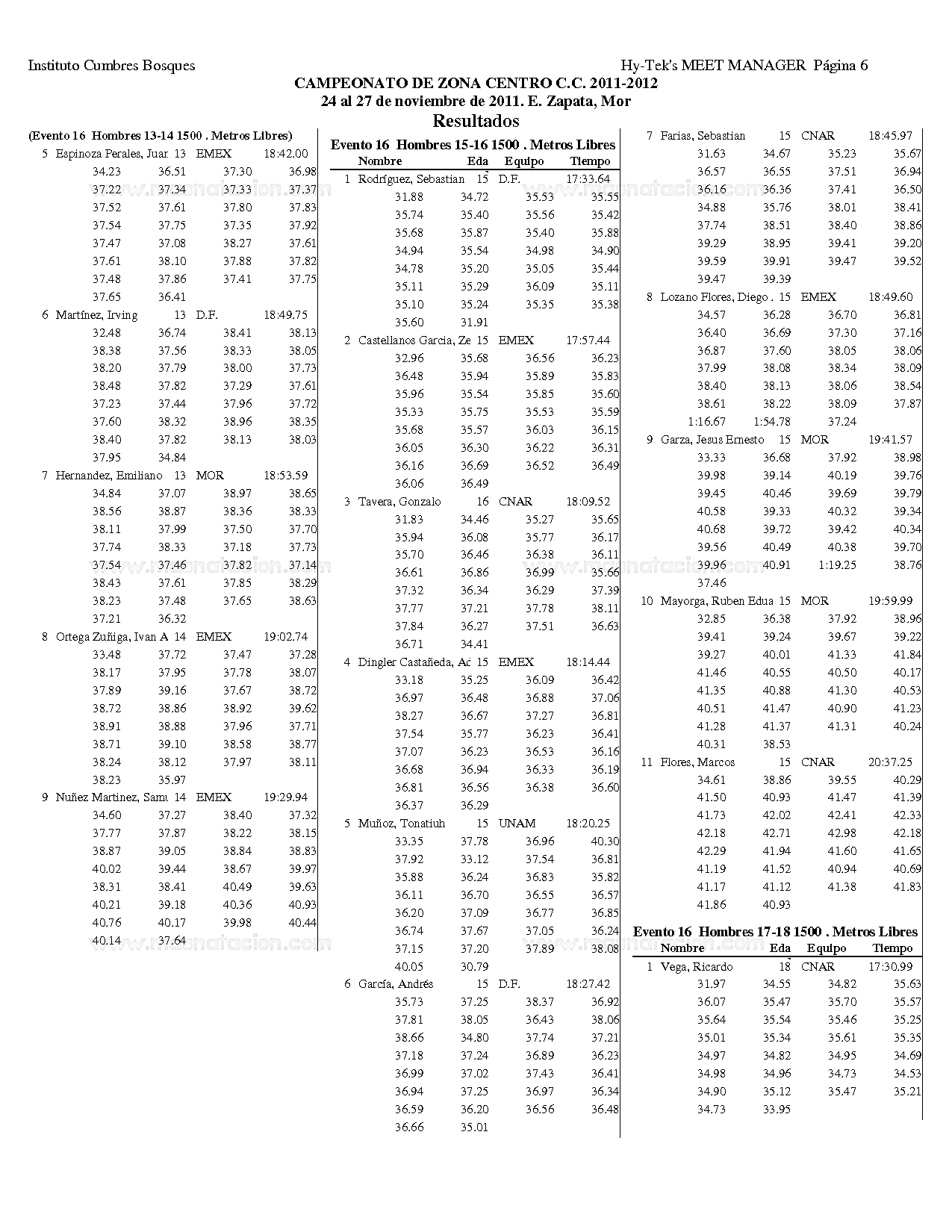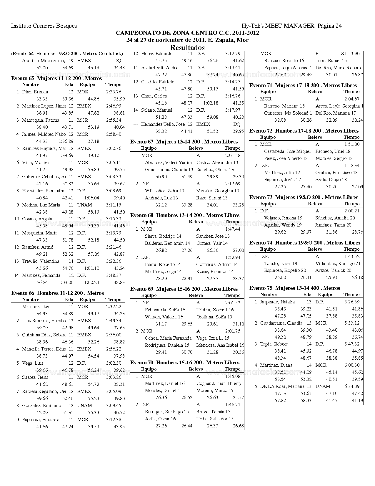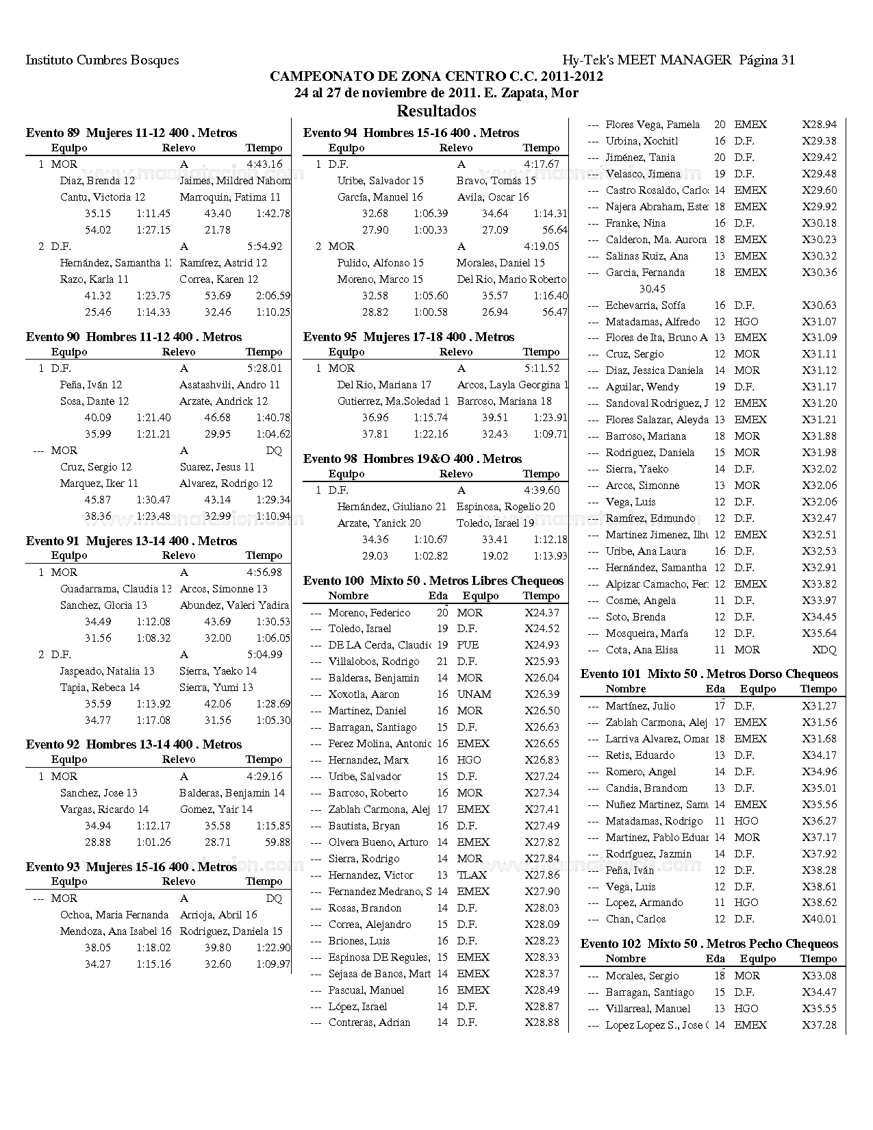 Campeonato Zona Centro Curso Corto 2011
