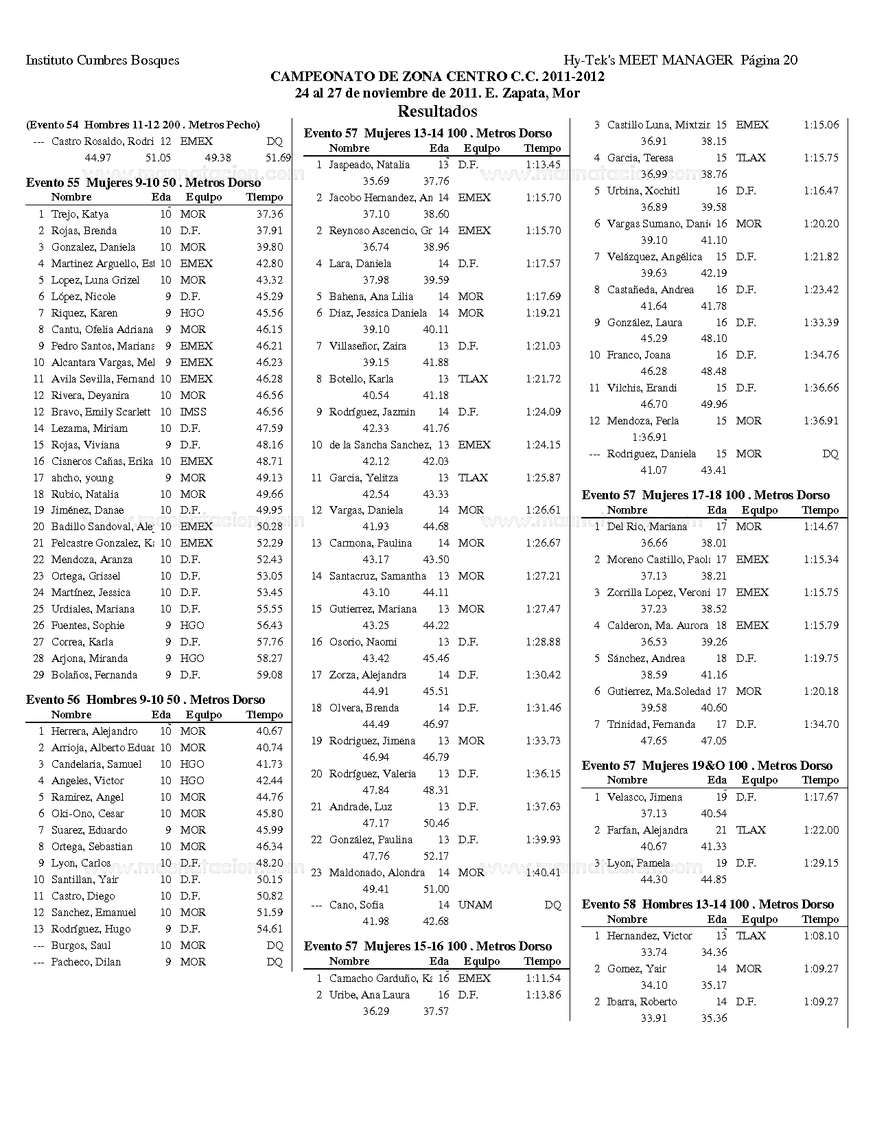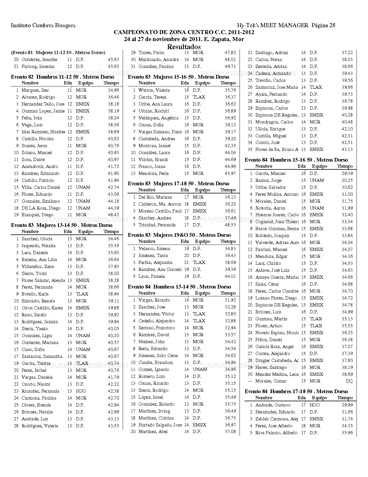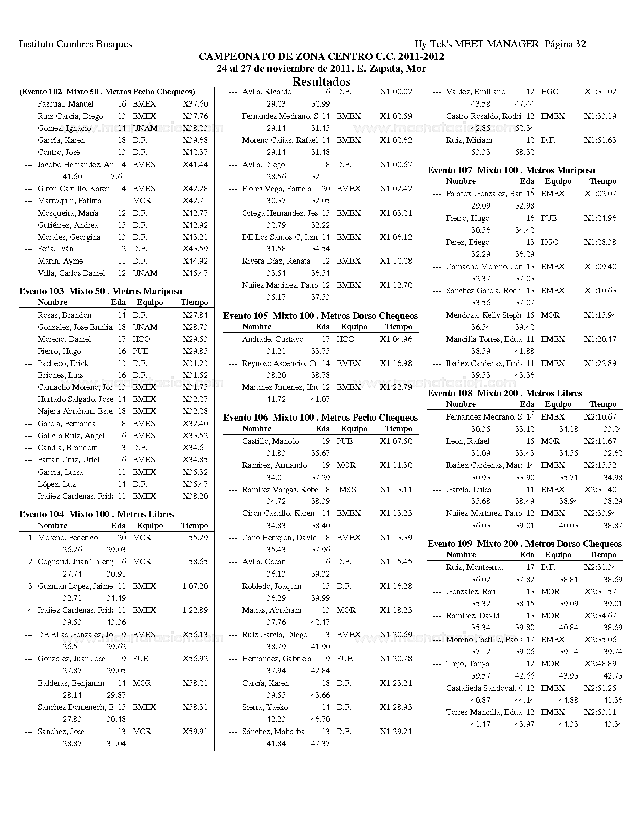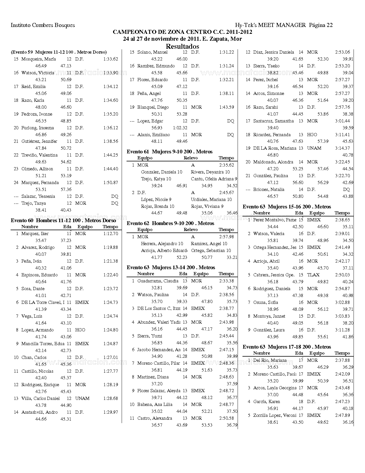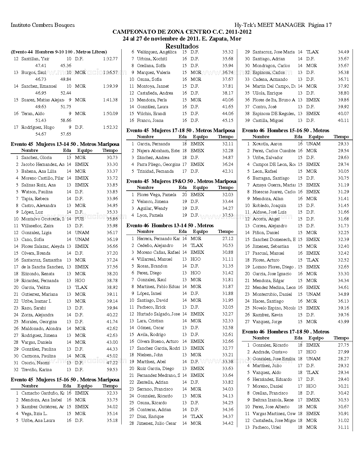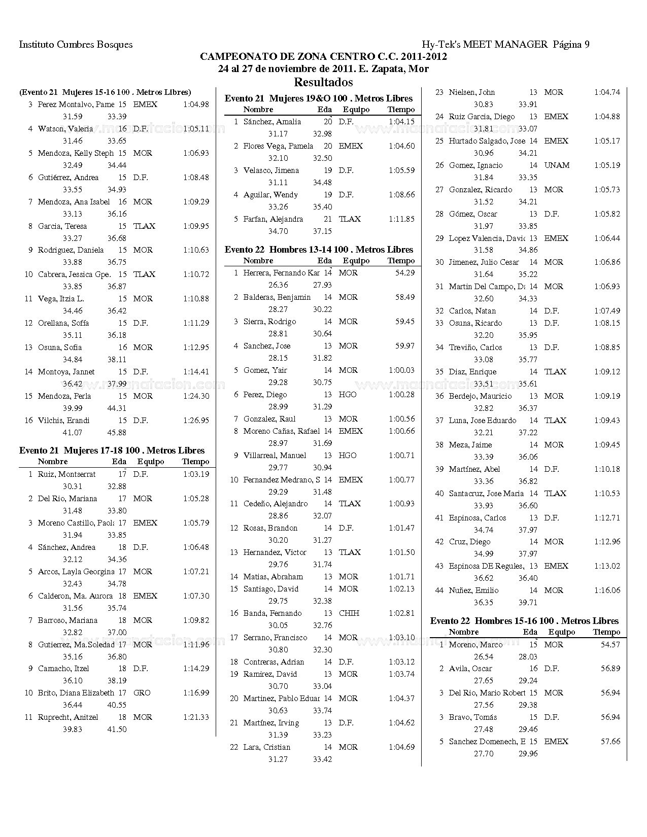 Campeonato Zona Centro Curso Corto 2011