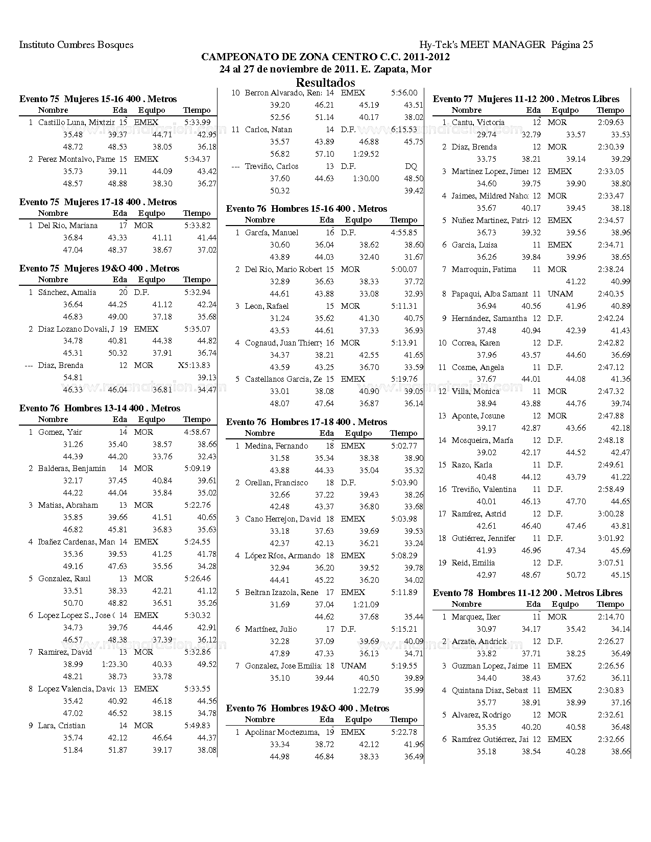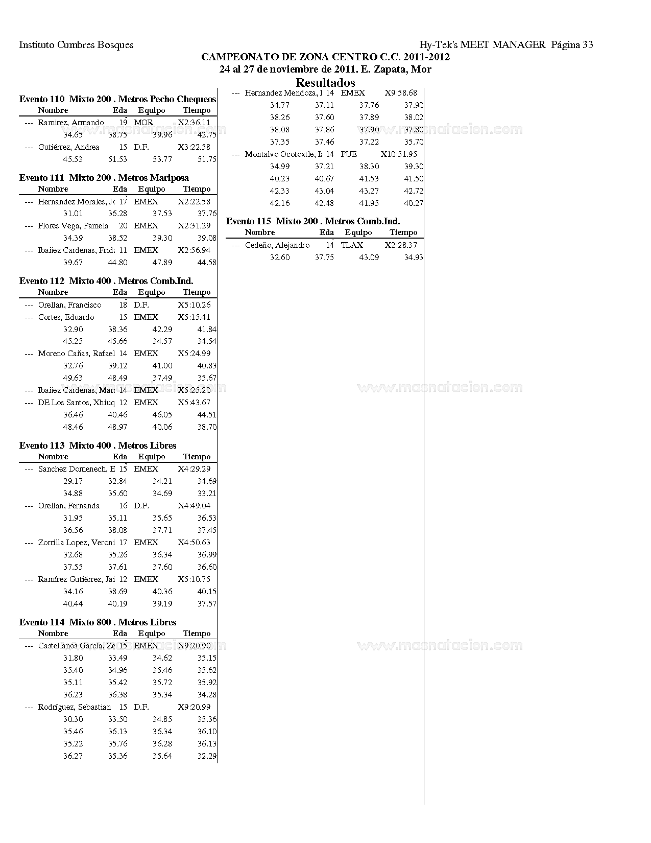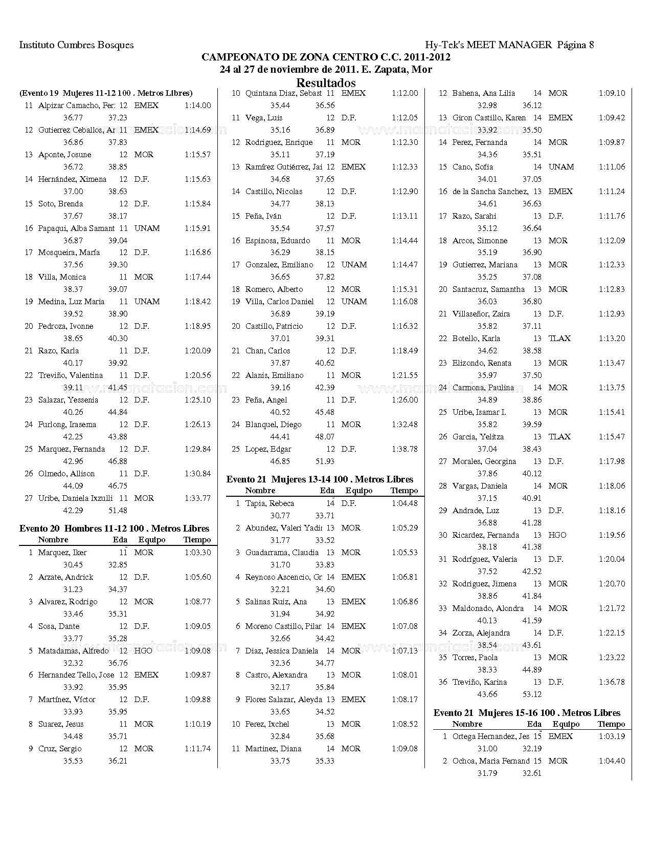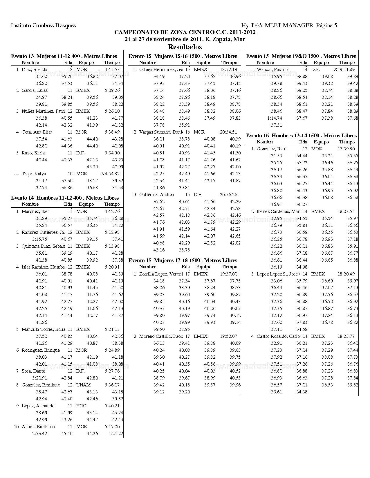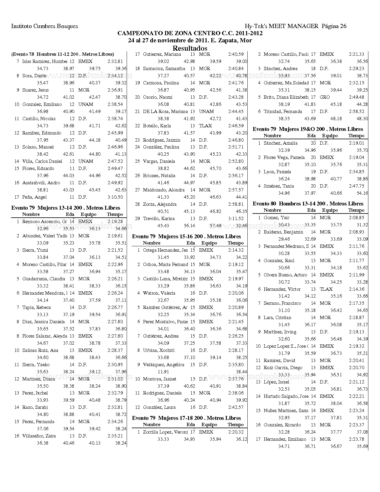 Campeonato Zona Centro Curso Corto 2011
