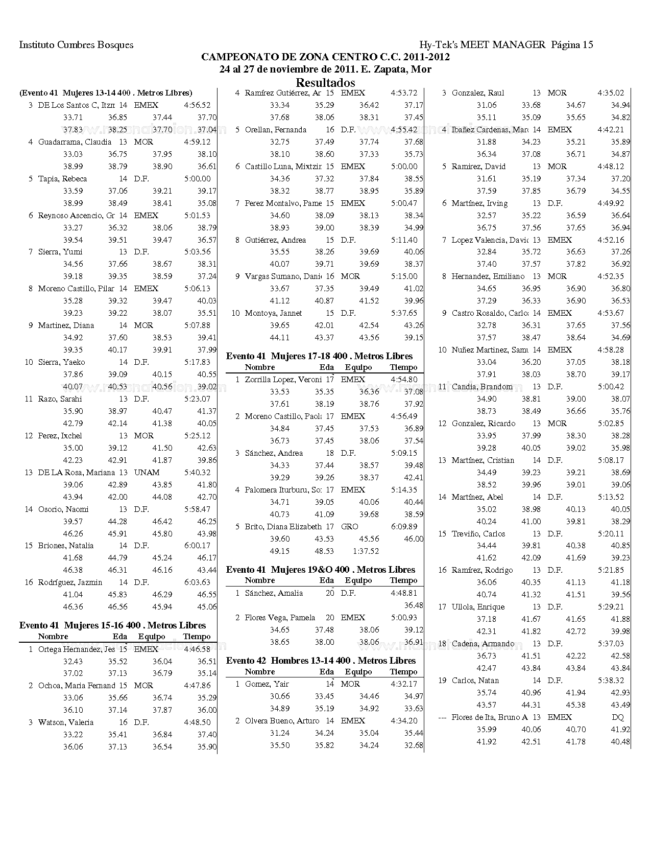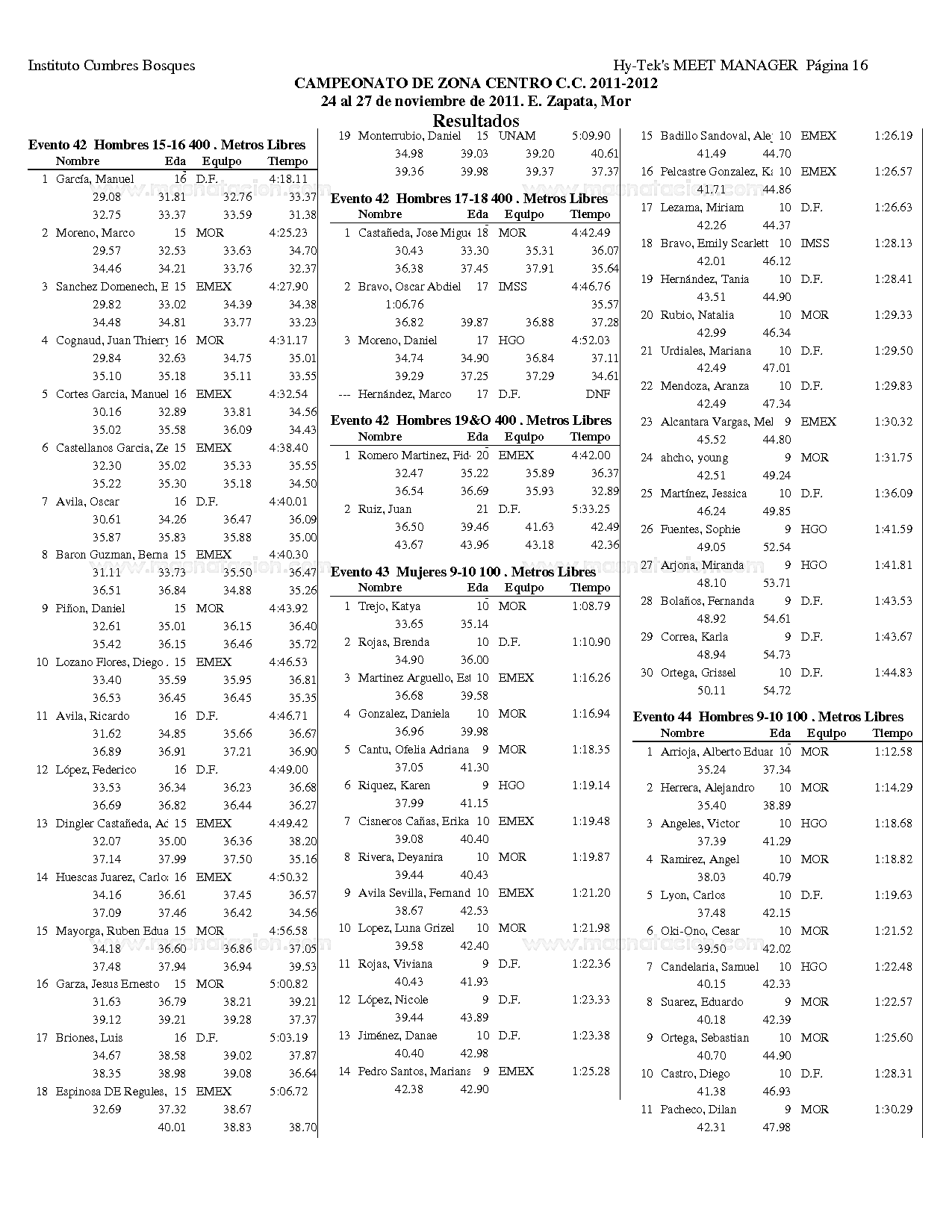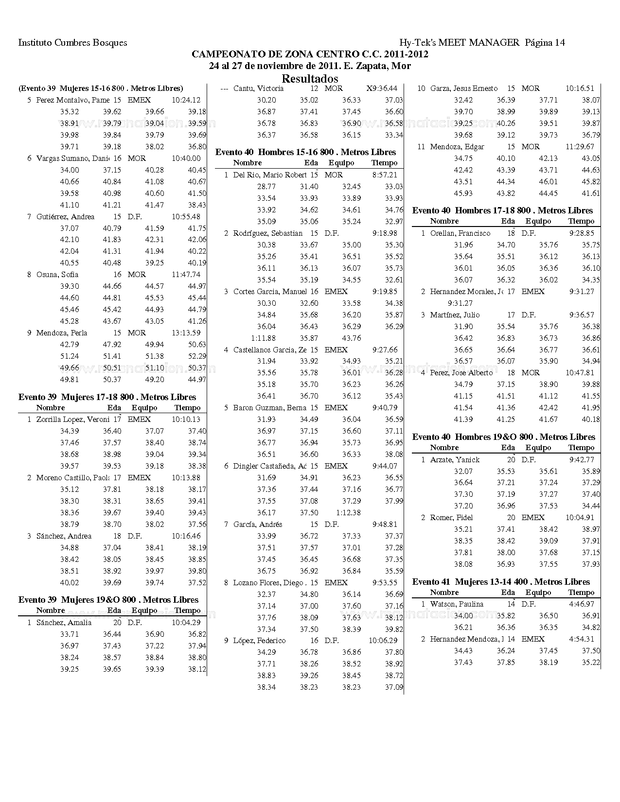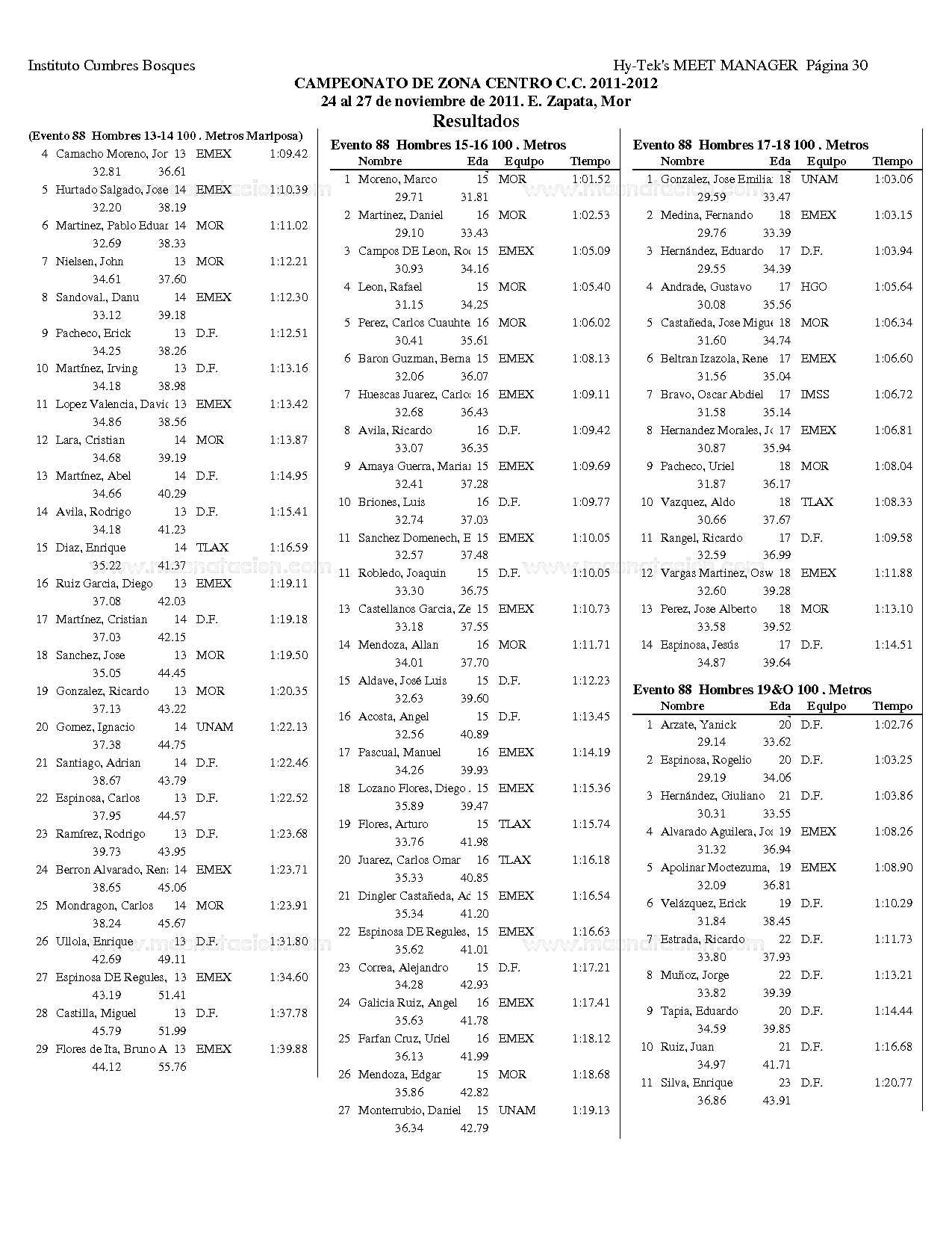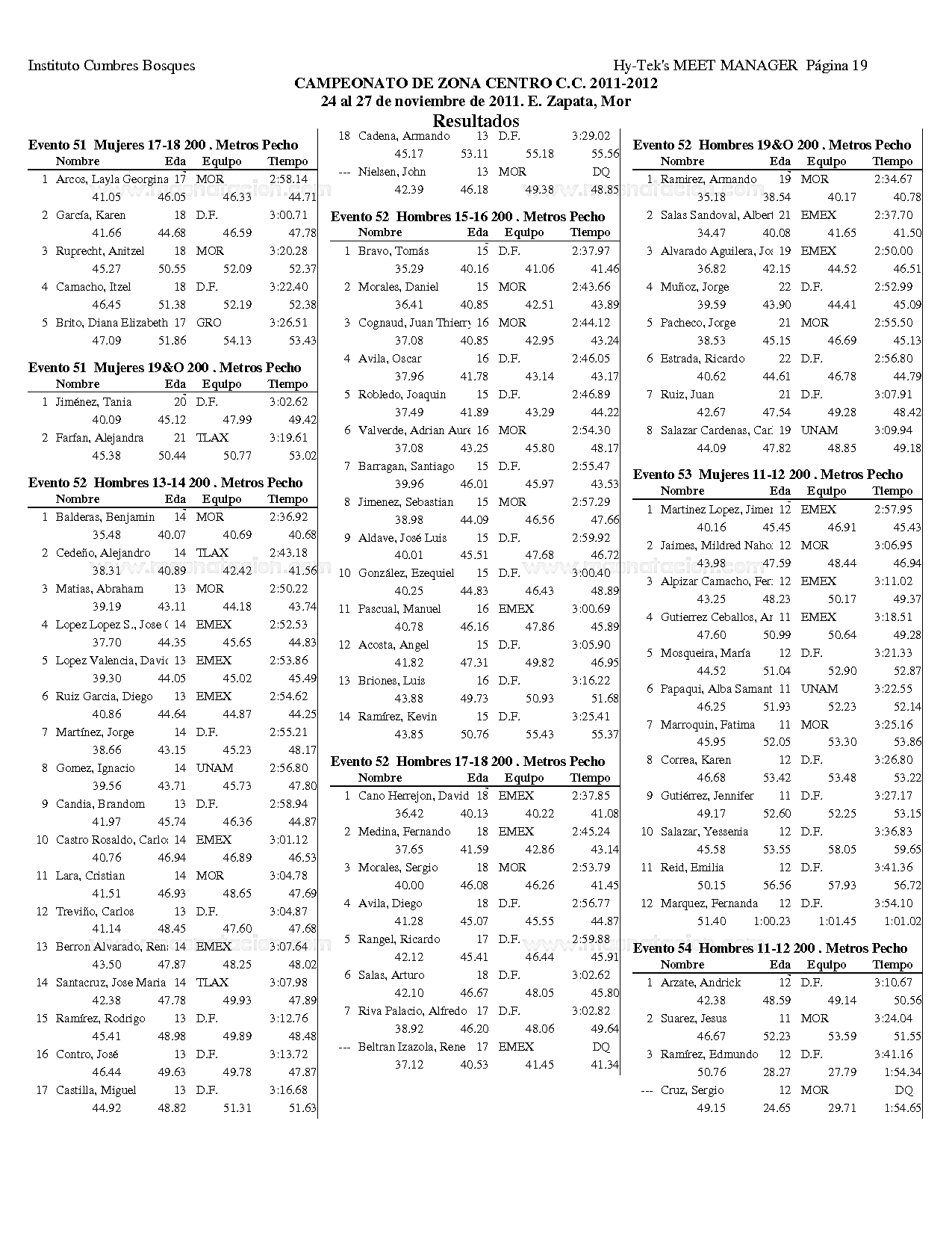 Campeonato Zona Centro Curso Corto 2011