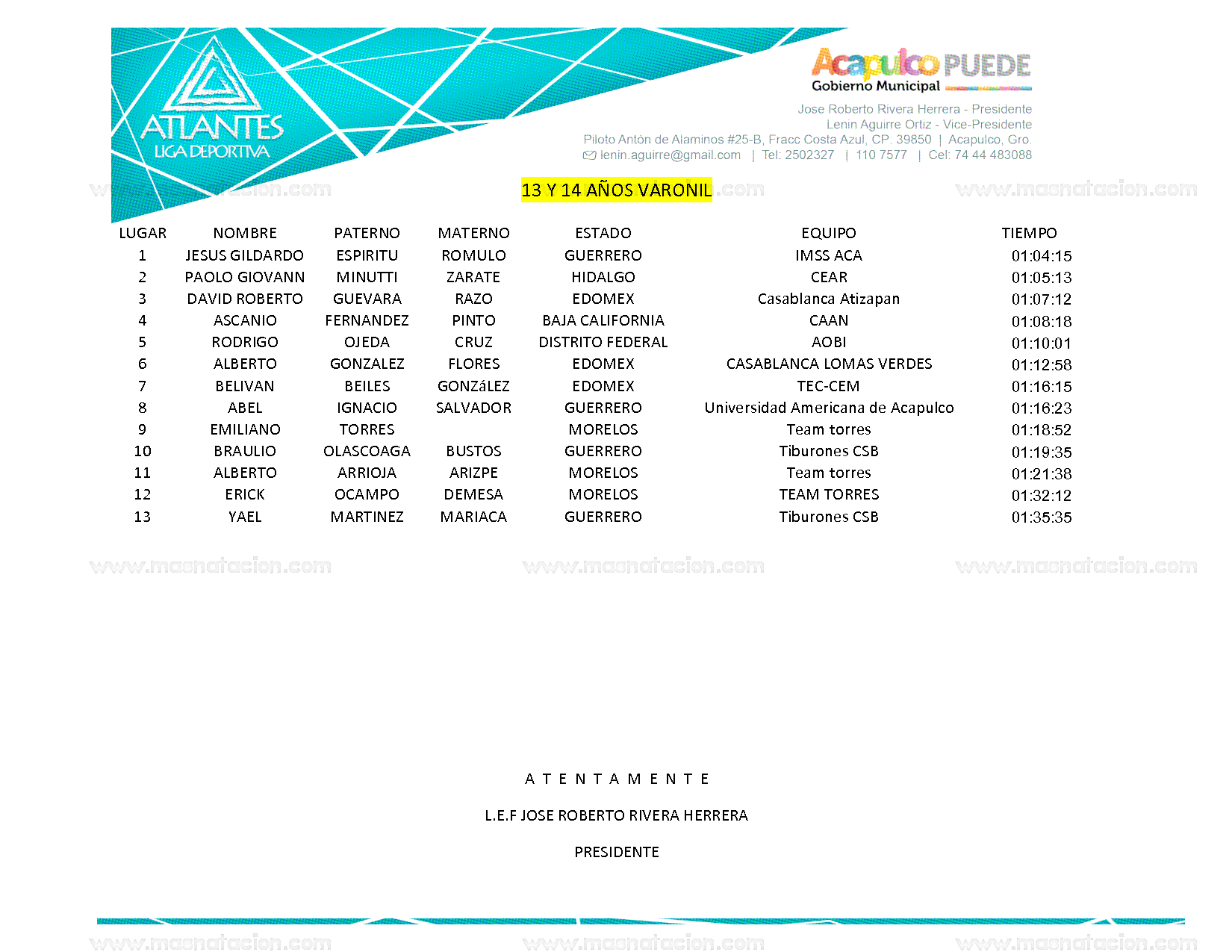 Encuentro de los Atlantes Selectivo a Olimpiada Nacional 2014