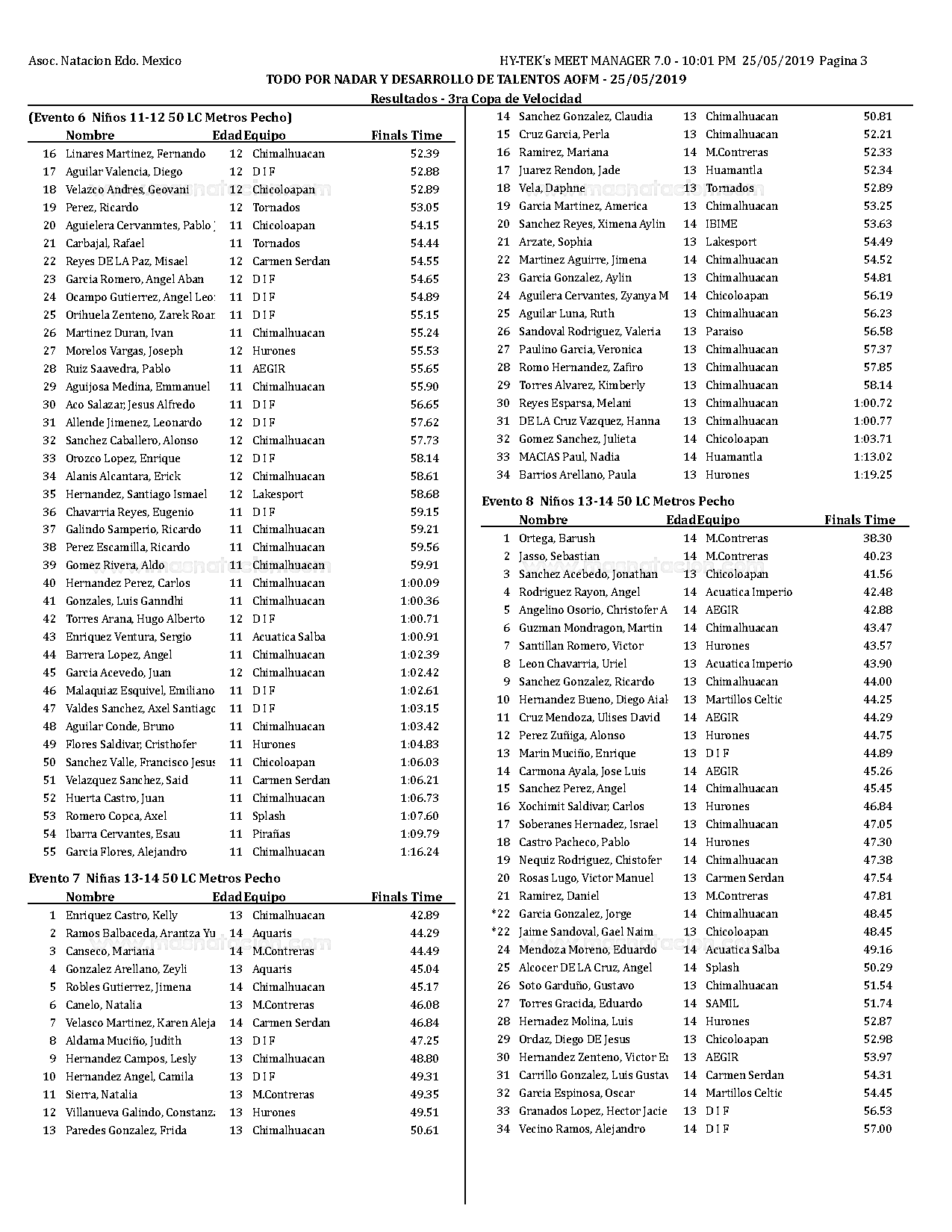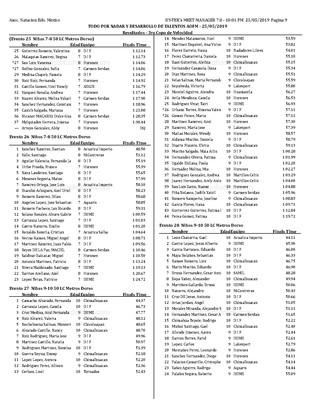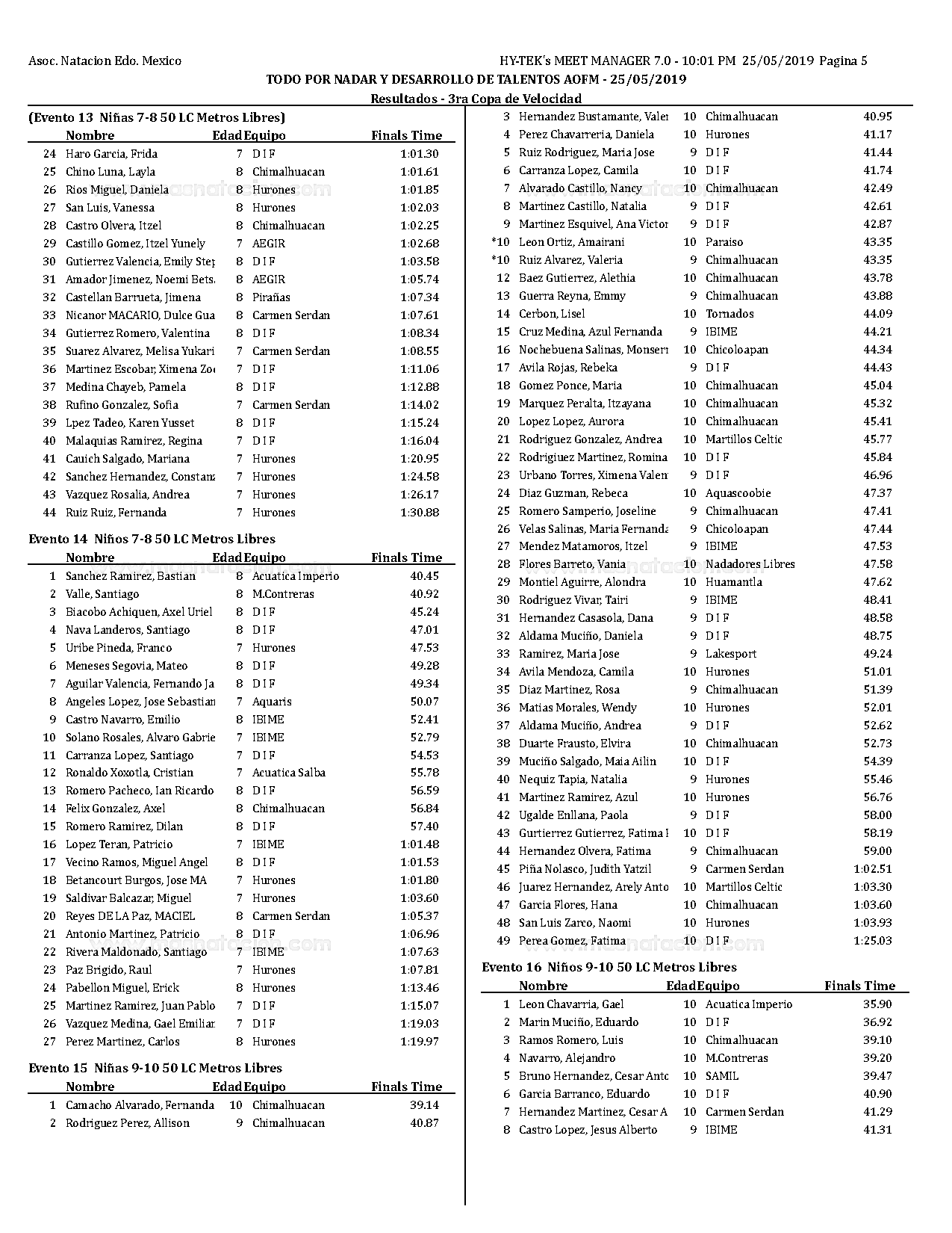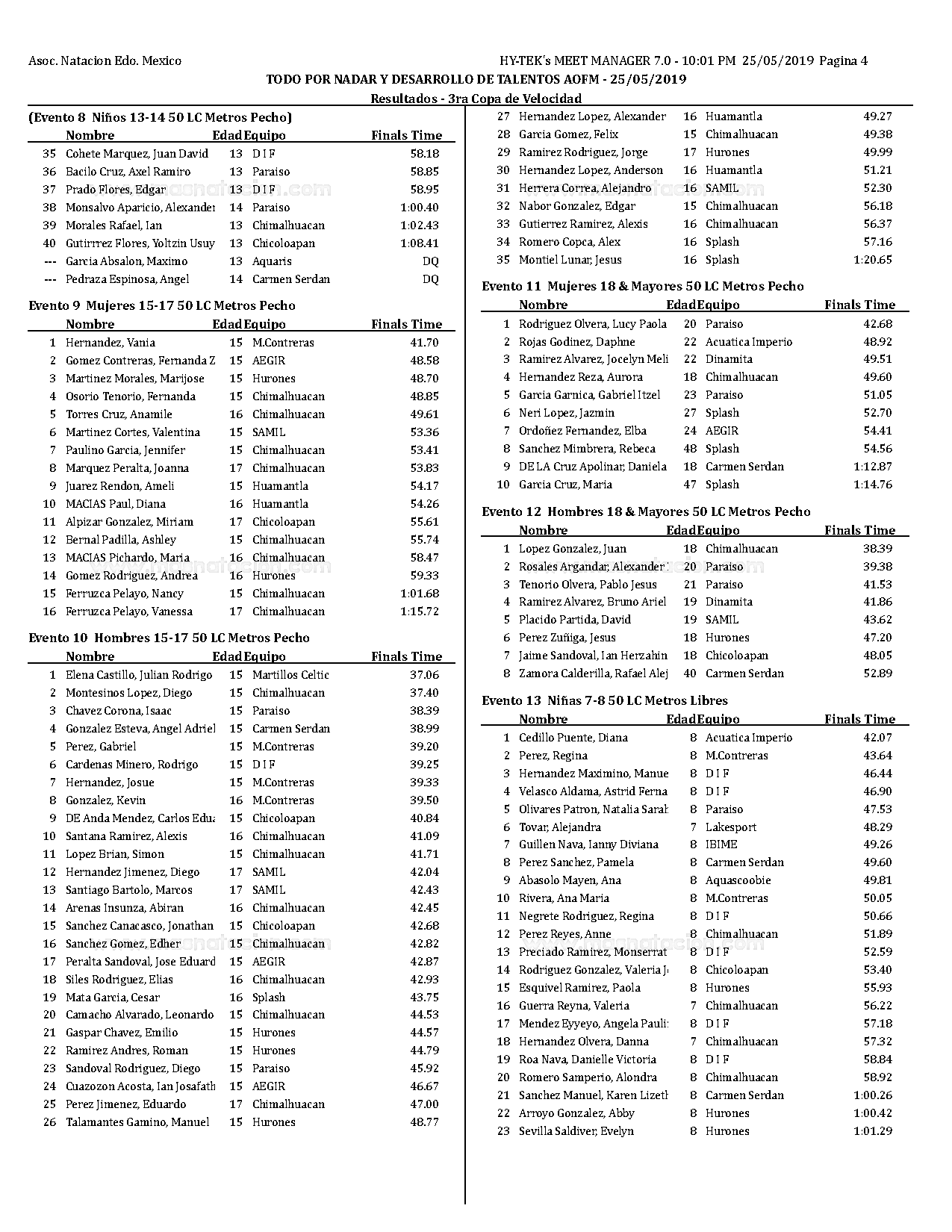 Todo Por Nadar y Desarrollo de Talentos Aofm Sábado 25 de Mayo 2019 Sede Alberca Olímpica Francisco Marquez